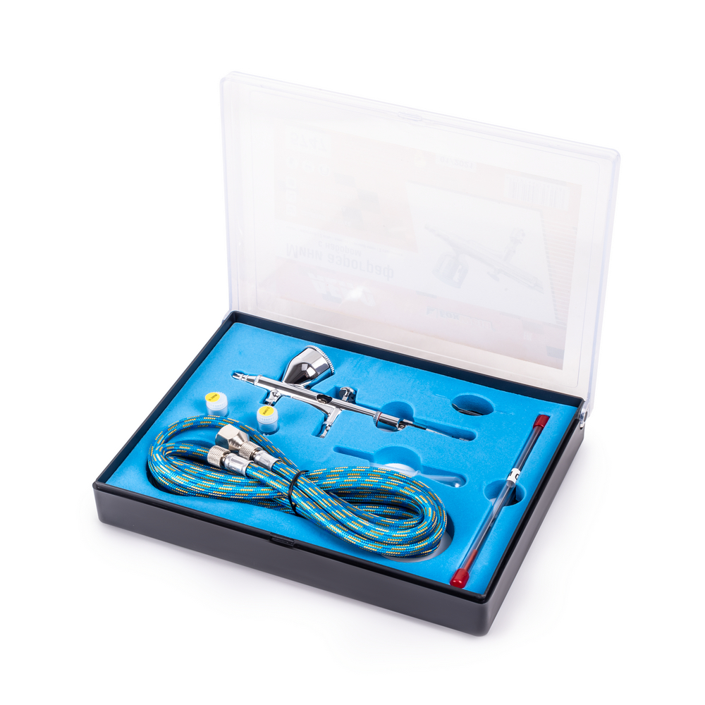 Предлагаемый нами аэрограф с набором отличается компактными габаритами и небольшой массой.