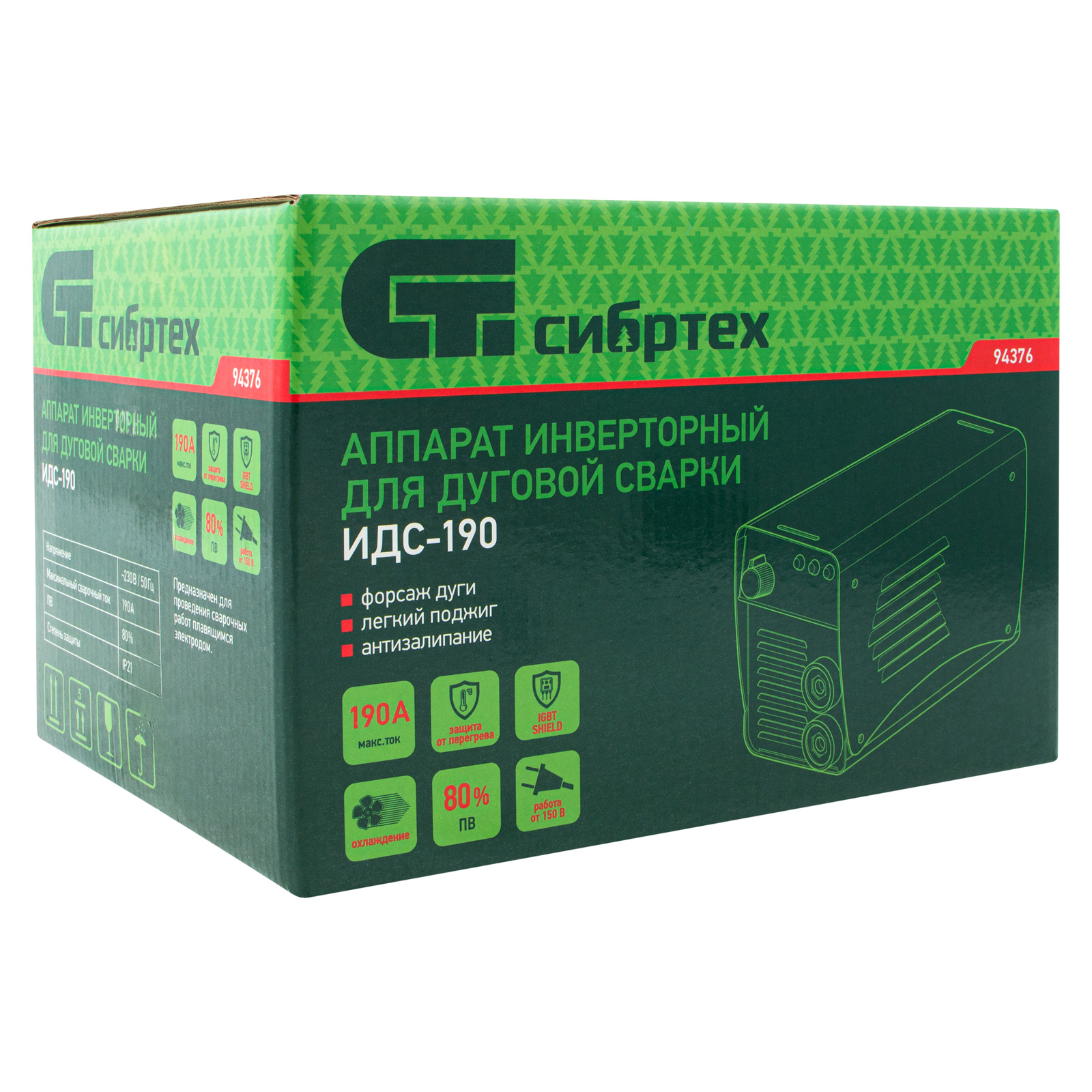 Аппарат инверторный дуговой сварки ИДС-190, 190 А, ПВ 80%, диаметр электрода 1.6-4 мм Сибртех в Челябинске