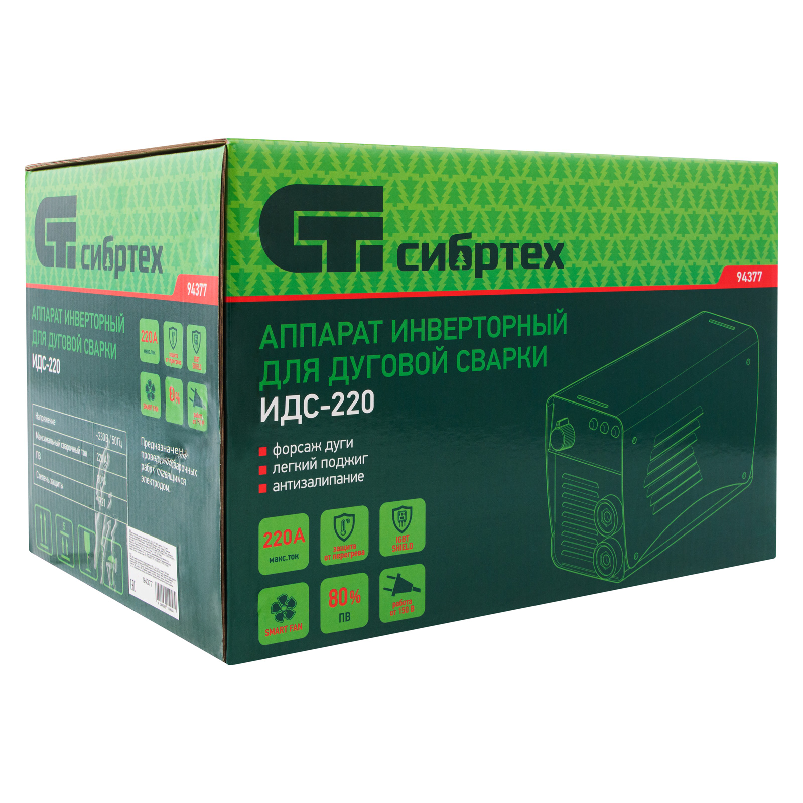 Аппарат инверторный дуговой сварки ИДС-220, 220 А, ПВ 80%, диаметр электрода 1.6-5 мм Сибртех в Челябинске
