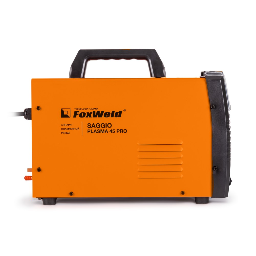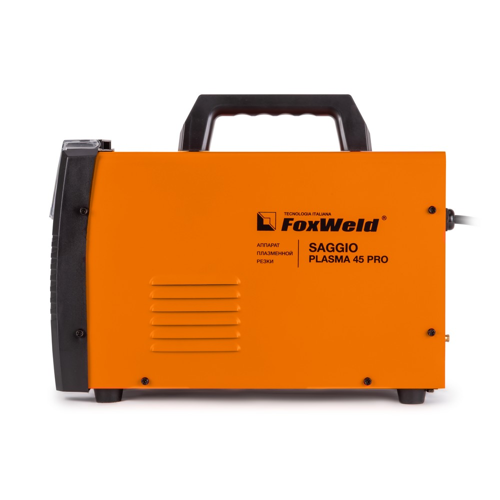 Аппарат плазменной резки FOXWELD SAGGIO PLASMA 45 PRO позволяет разрезать сталь толщиной до 15 мм. Дежурная дуга плазмотрона и отсутствие осциллятора обеспечивают различные режимы резки, в том числе резки сетки, решётки, перфорированных, окрашенных и загрязнённых поверхностей, а также нанесение графических изображений в режиме маркировки. Информативная панель управления аппарата с цифровым дисплеем и наглядной циклограммой рабочего процесса позволяют без труда настроить все этапы процесса резки. Небольшой вес и размеры идеально подойдут для частных мастерских, автосервисов и мелких производств.БЕЗОСЦИЛЛЯТОРНЫЙ ПОДЖИГ: Поджиг дуги без осциллятора, при котором зажигание происходит за счёт механического разъединения электрода с соплом, подходит для тех условий работы, где требуется исключить электромагнитное излучение. Такой вид поджига дуги обеспечивает устойчивость к влаге и лучше для работы с электронным блоком управления.ТОЛЩИНА РЕЗА ДО 15 ММ: Благодаря высоким динамическим характеристикам дуги, стабильному току резки, наличию дежурной дуги и безосцилляторному поджигу, аппарат способен разрезать металл толщиной до 15 мм.ДЕЖУРНАЯ ДУГА: Дежурная дуга плазмотрона (PILOT ARC) – это первичная дуга между электродом и соплом, которая направляется за счёт сжатого воздуха к поверхности. В момент контакта с разрезаемым материалом дежурная дуга гаснет и загорается режущая дуга, что обеспечивает «доступ» режущей дуги к основному материалу. Благодаря этому плазменная струя не гаснет даже на металлической сетке. Аппарат с дежурной дугой отлично подойдёт для резки сеток, загрязнённых, окрашенных и перфорированных поверхностей.РЕЖИМ РЕЗКИ СЕТКИ: Данный аппарат включает в себя режим для резки сетчатых конструкций. Дежурная дуга с безосцилляторным поджигом не даёт плазменной струе гаснуть на металлической сетке или решётке.РЕЖИМ МАРКИРОВКИ: Благодаря наличию дежурной дуги с безосцилляторным поджигом, режим маркировки позволяет наносить графические изображения на поверхности различных материалов.ПРЕИМУЩЕСТВА:Циклограмма рабочего процессаДежурная дуга плазмотронаОтсутствие осциллятораПостпродувка плазмотронаНебольшой вес и размеры аппаратаЗащитная крышка панели управленияЗащита от перегреваФУНКЦИОНАЛЬНЫЕ ОСОБЕННОСТИ:ЦИКЛОГРАММА ПАРАМЕТРОВ РЕЗКИ: На информативной передней панели управления аппарата расположена циклограмма выбора параметров резки: Пред-продувка - установка времени подачи сжатого воздуха до зажигания плазменной дуги. Значение параметра задается в секундах (Сек). Рекомендованное значение - 3 сек. Ток дежурной дуги - установка значения тока дежурной дуги. Рекомендованное значение - 18А.ВНИМАНИЕ! Высокое значение тока дежурной дуги увеличит износ расходных материалов (сопло, катод). Время дежурной дуги - установка времени горения дежурной дуги. Рекомендованное значение-3 сек.ВНИМАНИЕ! Высокое значение времени дежурной дуги увеличит износ расходных материалов (сопло, катод). Ток резки - установка значение основного тока резки. Пост-продувка - установка времени подачи сжатого воздуха после затухания плазменной дуги. Значение параметра задается в секундах (Сек). Рекомендованное значение - 60 сек.ИНФОРМАТИВНАЯ ПАНЕЛЬ УПРАВЛЕНИЯ: Цифровой дисплей на панели управления отображает значение тока и дополнительных пара