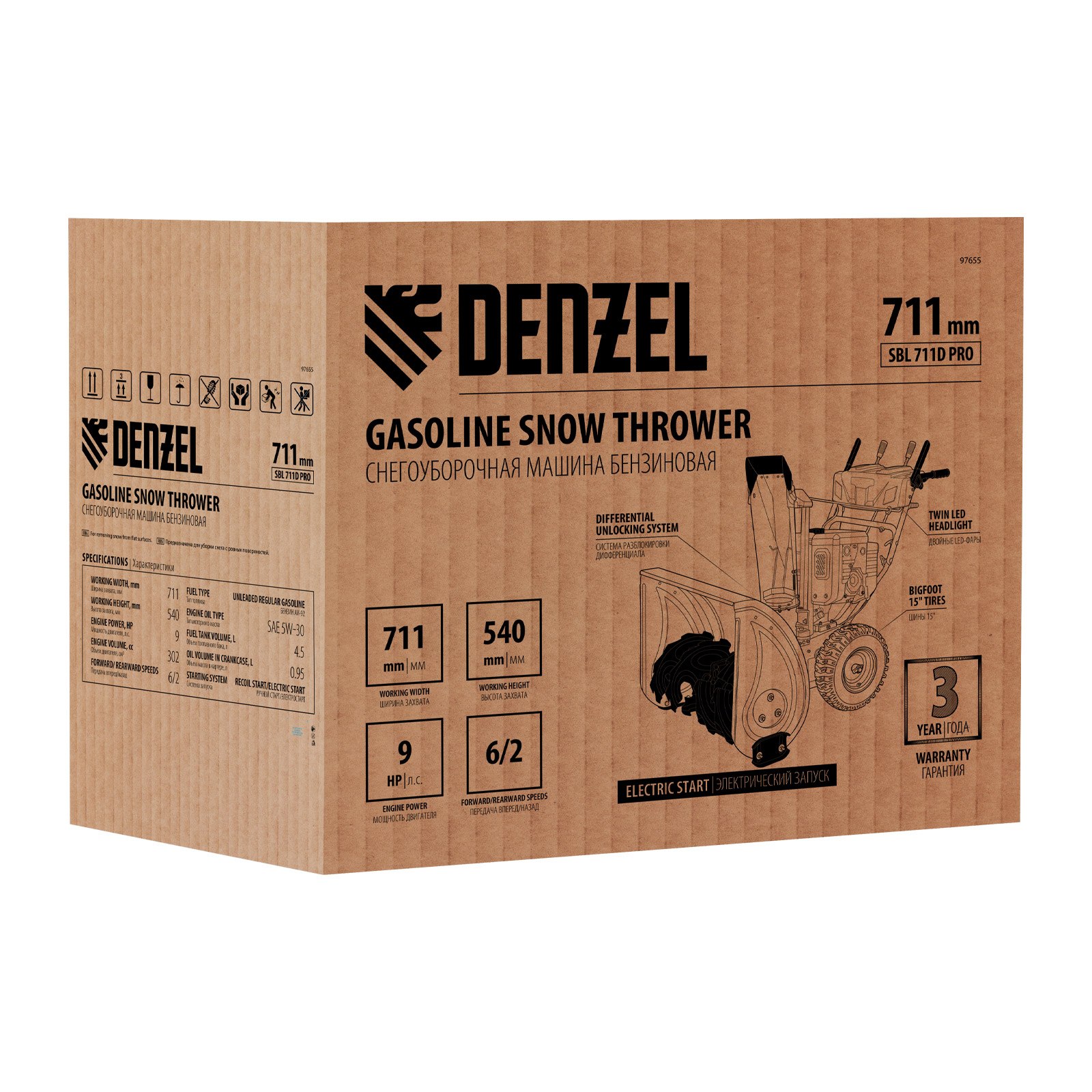 Бензиновая снегоуборочная машина SBL 711D PRO, 302cc, эл.старт, фара, обогрев, блок. дифф. Denzel в Челябинске