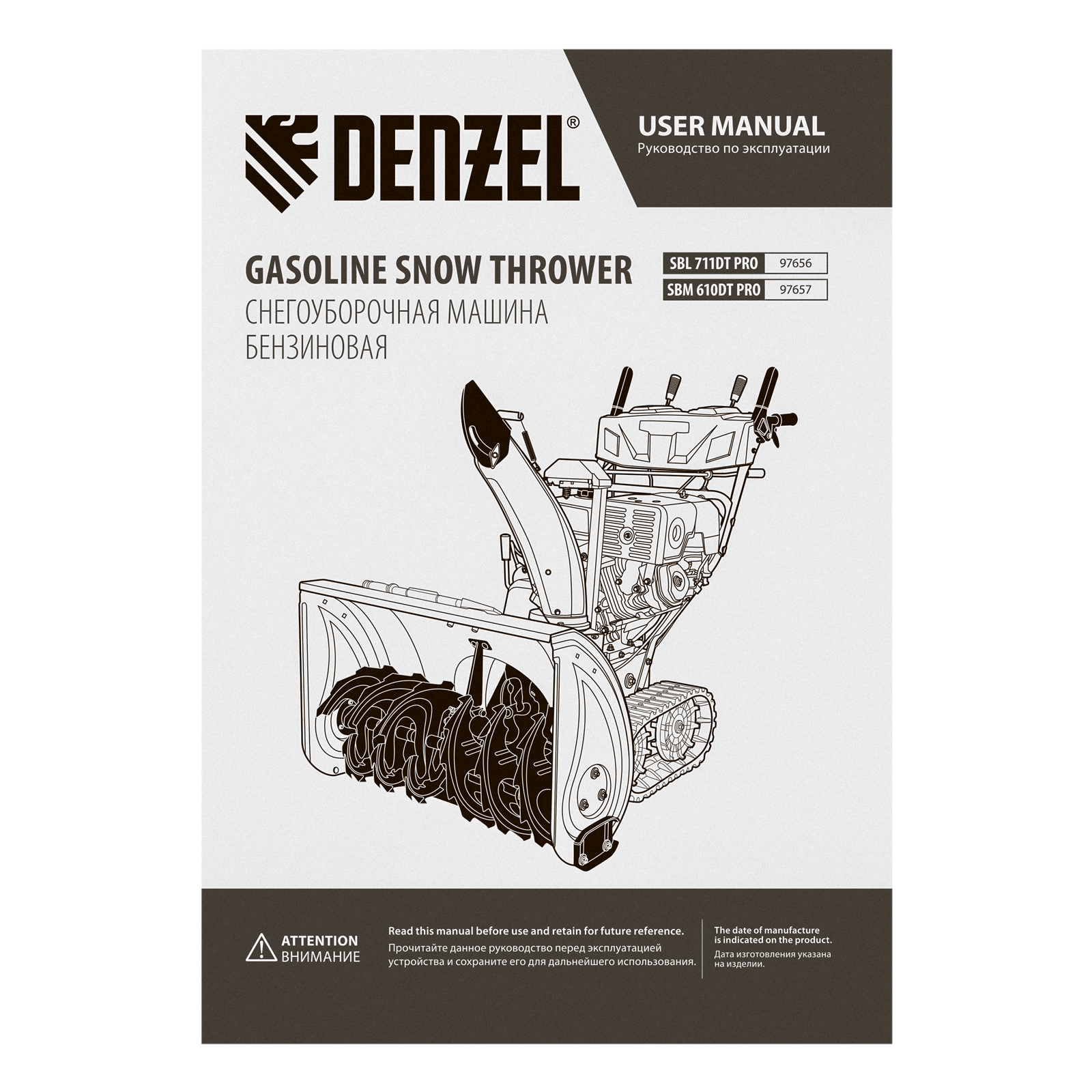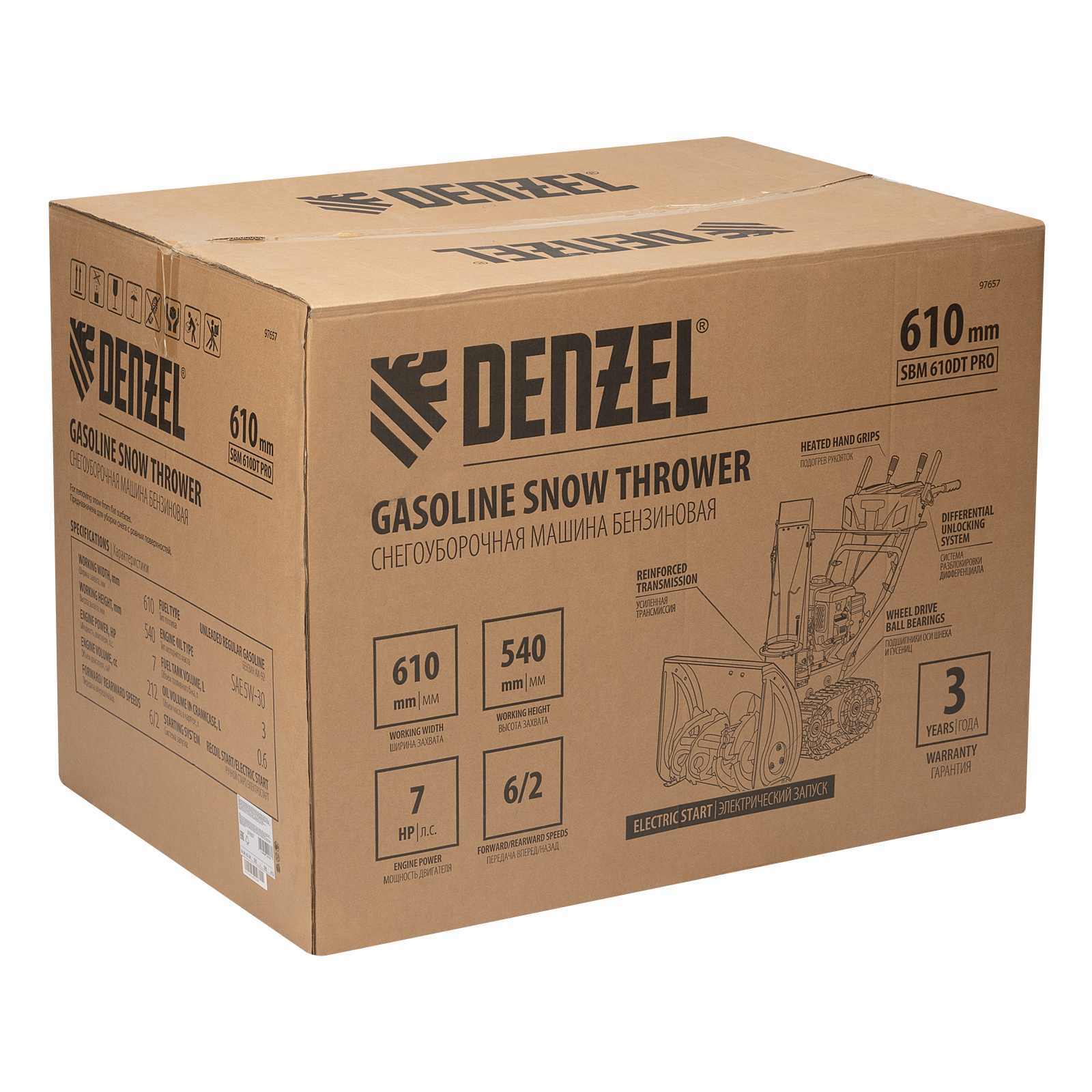 Бензиновая снегоуборочная машина SBM 610DT PRO, 212cc, гусеницы, эл.старт, блок. дифф. Denzel в Челябинске