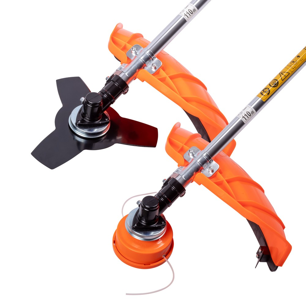металлический нож позволяет скашивать жесткую траву и мелкий кустарник