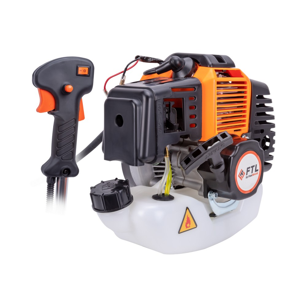 Двухтактный бензиновый двигатель объёмом 52 куб.см работает на смеси 92 безина и масла для 2Т двигателей (!)