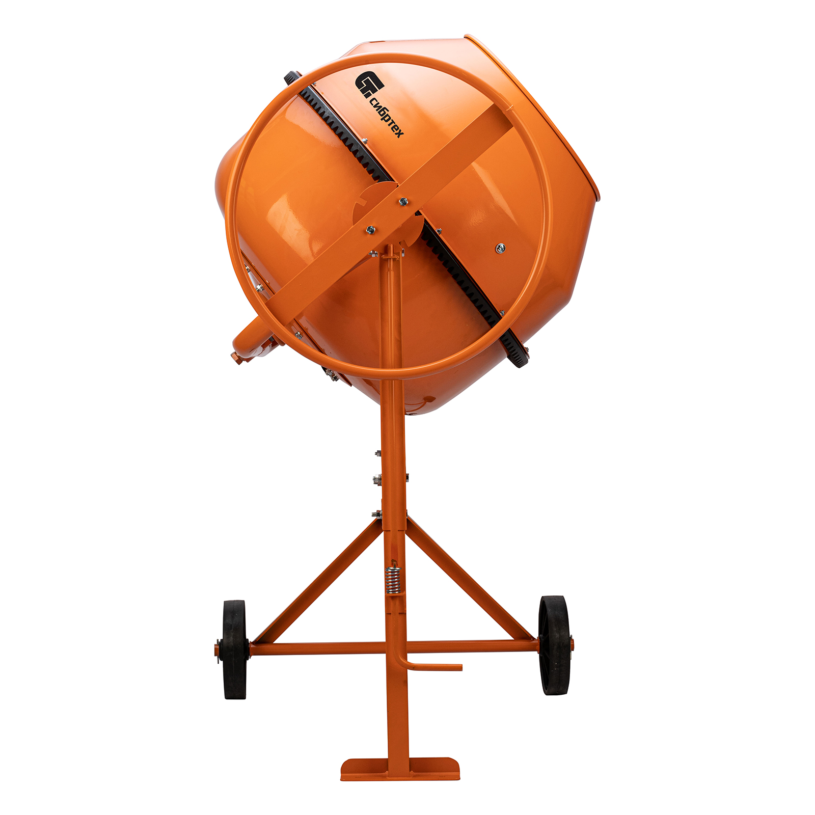 - Удобная загрузка и выгрузка смеси — барабан легко фиксируется в наклонном положении при помощи педали.