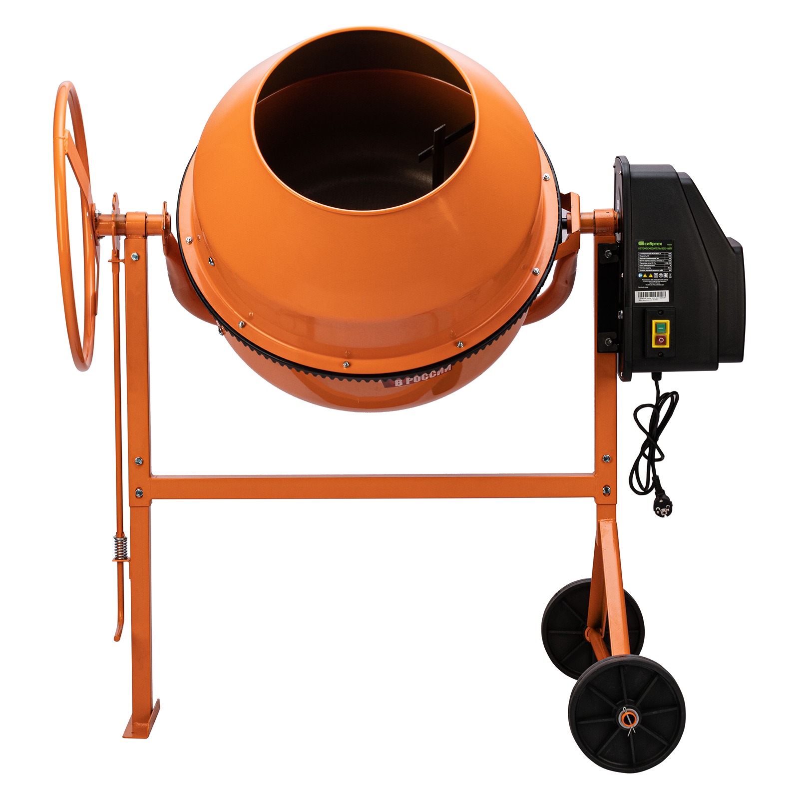 - Коррозионная стойкость — высококачественное порошковое покрытие защищает бетономешалку от воздействия влаги.