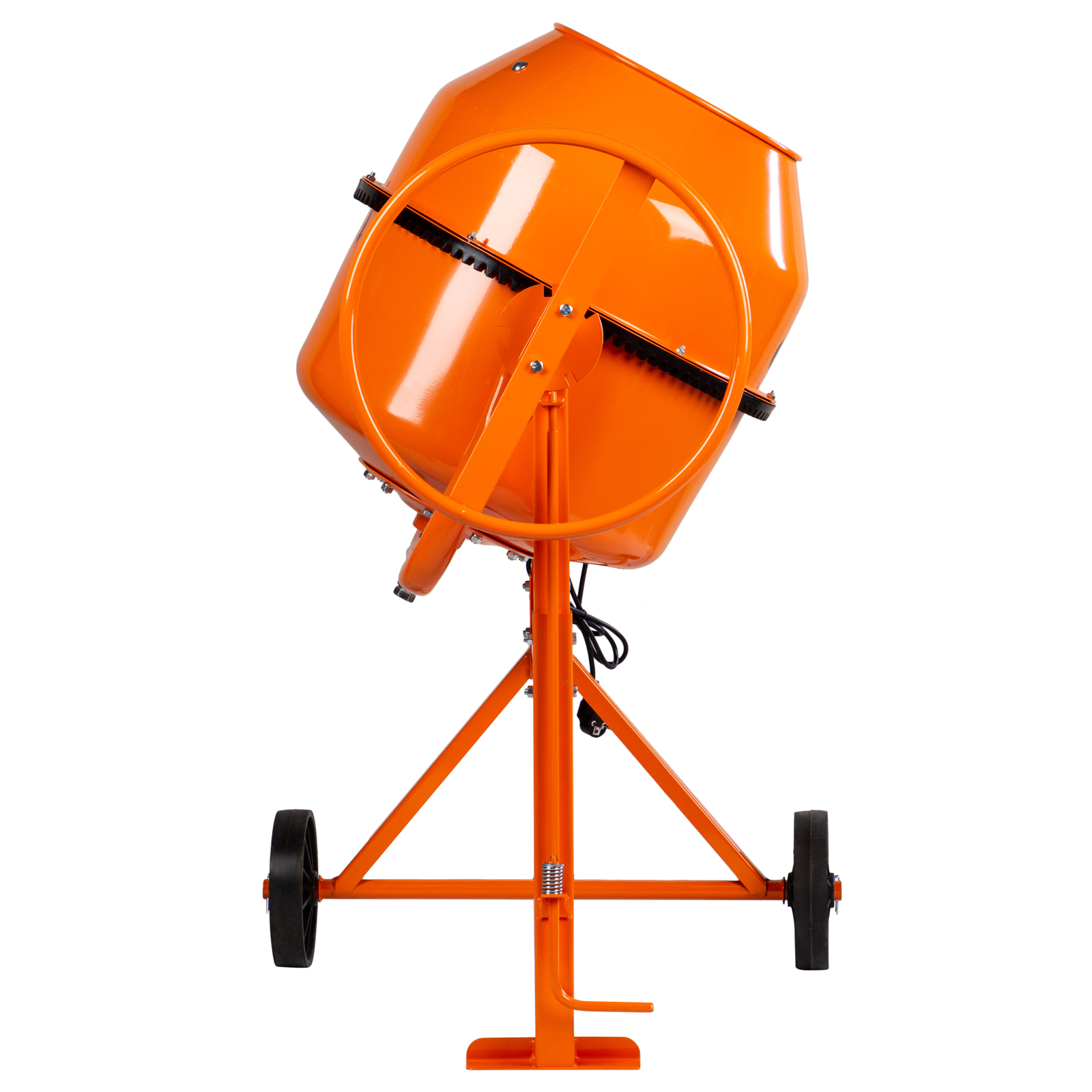 - Удобная транспортировка — колеса диаметром 20,5 см повышают маневренность бетоносмесителя и помогают без лишних усилий доставить его в нужное место.
