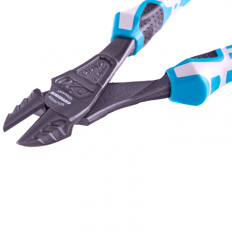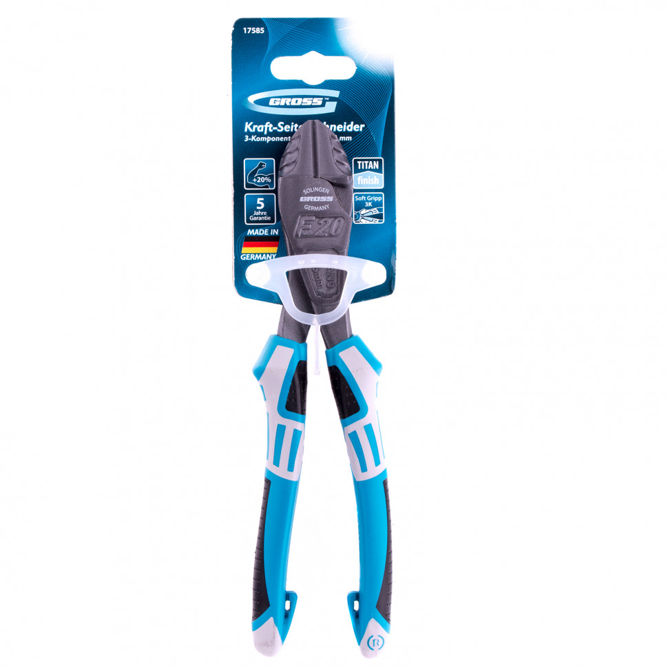 Усиленные бокорезы Gross 17585 длиной 200 мм, с трехкомпонентными рукоятками, предназначены для разрезания кабелей, проводов, проволоки, рояльных струн и т.д. Способны перекусывать не только алюминий, медь, пластмассу, но и более жесткие детали из стали диаметром до 4 мм. Встроенный рычажный механизм и смещенный непосредственно к режущим кромкам шарнир увеличивают усилие реза на 20%.