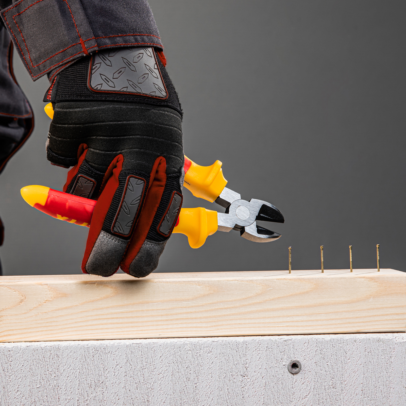 Бокорезы Matrix Insulated 17508 длиной 180 мм, с двухкомпонентными рукоятками, обладающими диэлектрическими свойствами и рассчитанными на напряжение до 1000 Вт, предназначены для откусывания проволоки, кабеля и проводов. Пригодятся также для резки материалов из металла и пластика. Важно — перед началом работ необходимо отключить напряжение в сети!