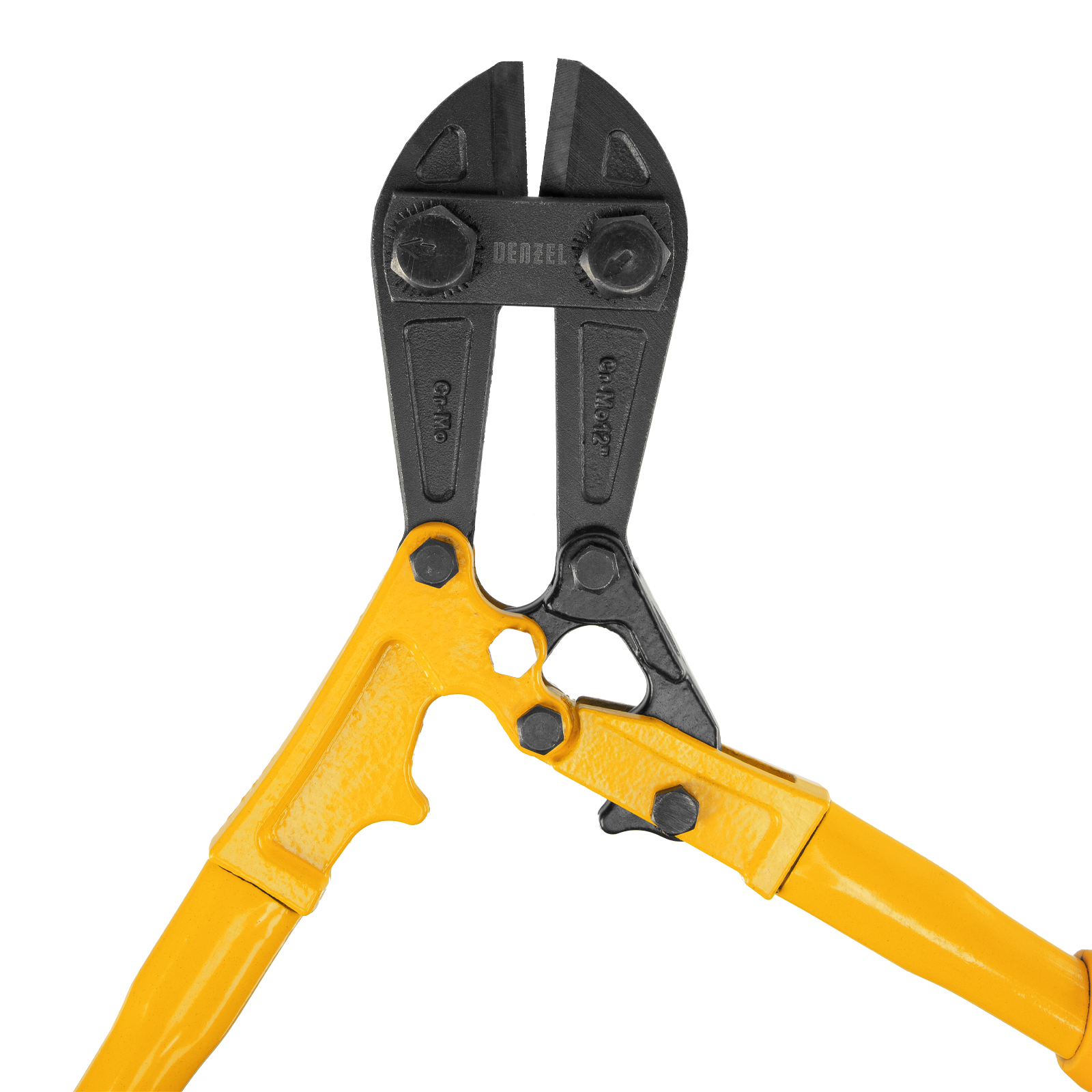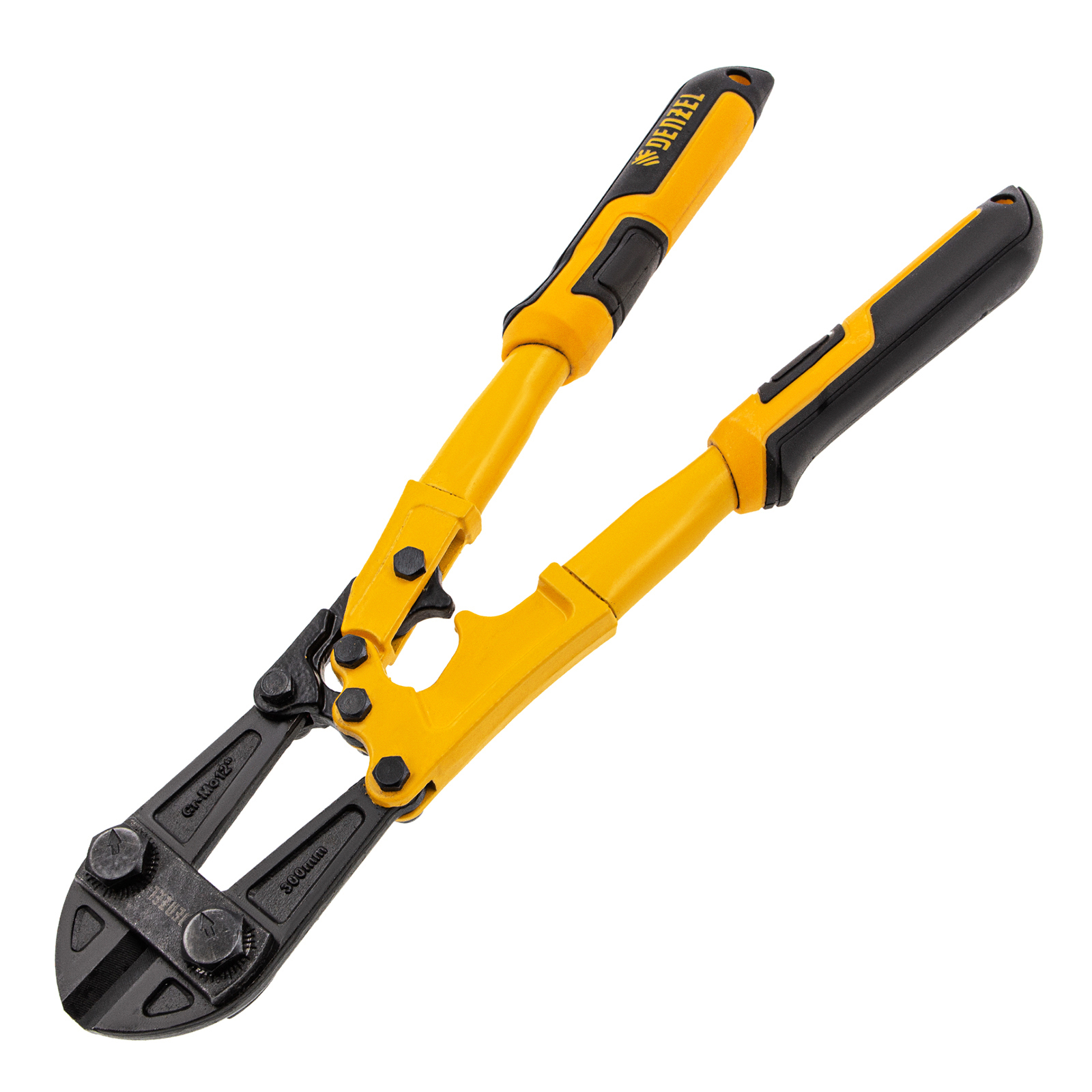 Болторез Denzel 78531 длиной 300 мм (12 дюймов), из стали Cr-Mo, предназначен для перекусывания стальных прутков диаметром 4,8 мм, болтов и шурупов, тросов, разнородной проволоки.