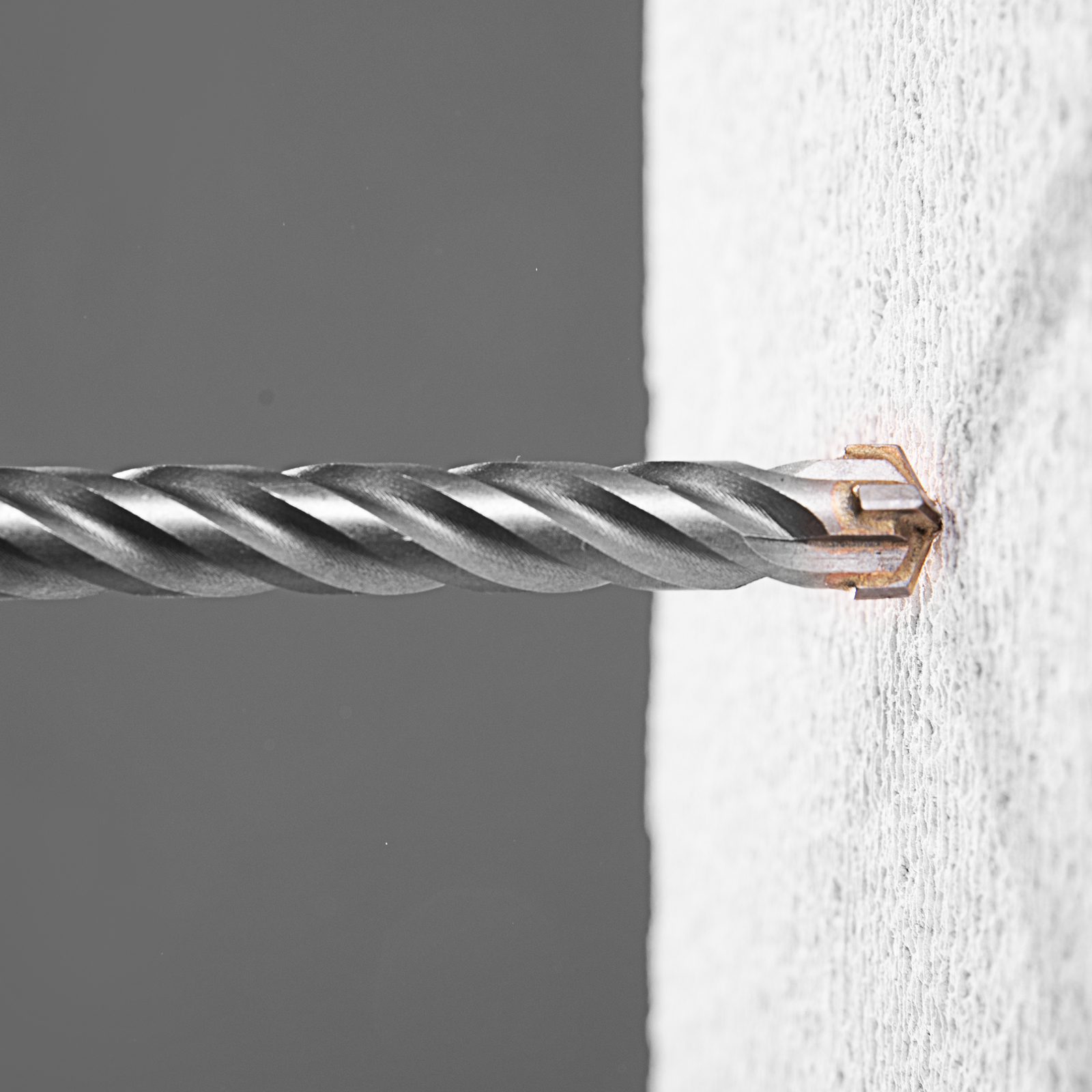 - Высокий ресурс — крестовая режущая пластина из сверхтвердого сплава карбида вольфрама 80–90 HRC долговечна, эффективно сверлит камень и не ломается при попадании в арматуру.