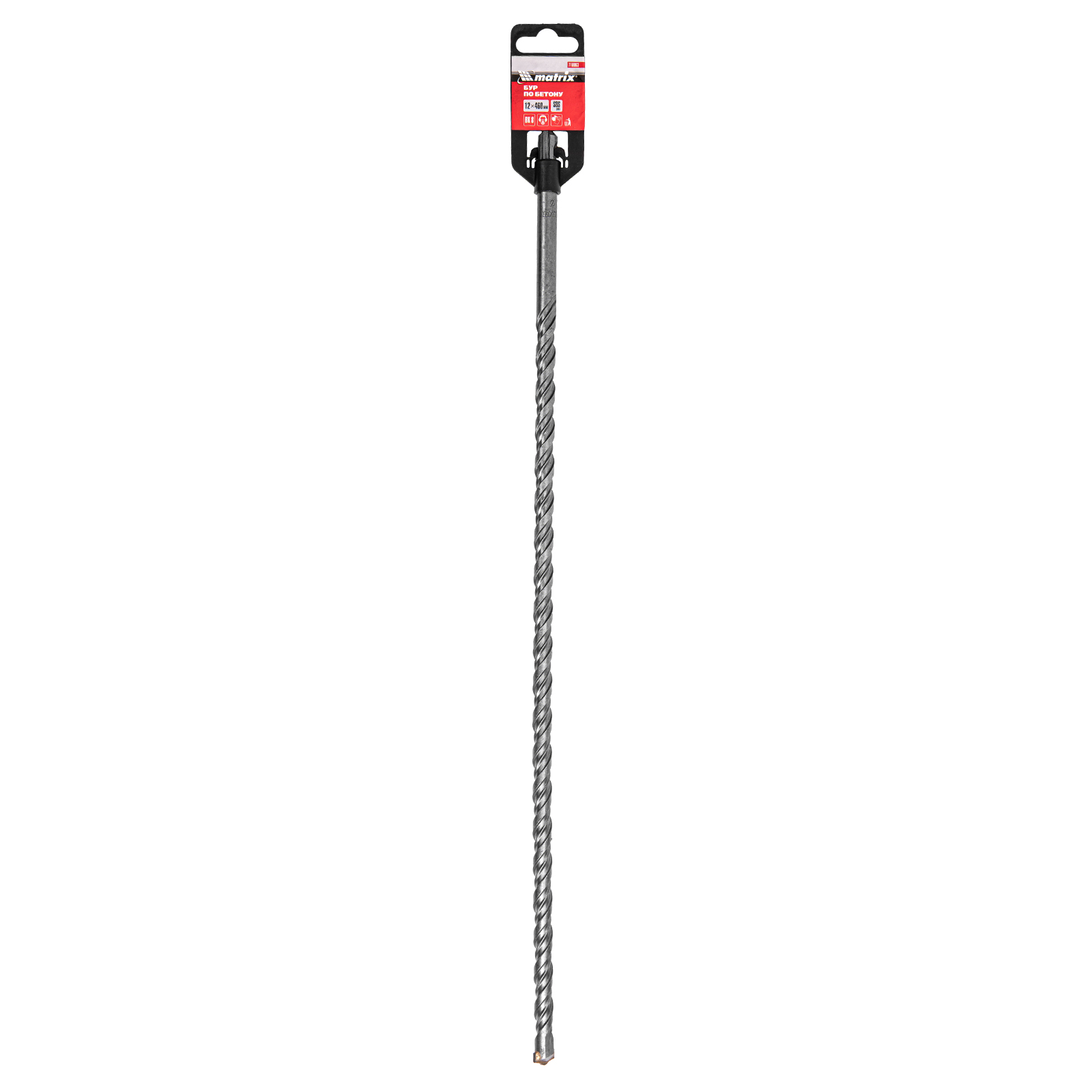 Бур по бетону Matrix 710063 длиной 460 мм, с хвостовиком SDS-plus, предназначен для установки на перфоратор и получения отверстий диаметром 12 мм в бетоне, камне и кирпиче. Позволяет эффективно решать поставленные задачи благодаря режущей пластине из высокотвердого сплава карбида вольфрама ВК8 твердостью 80-90 HRC.