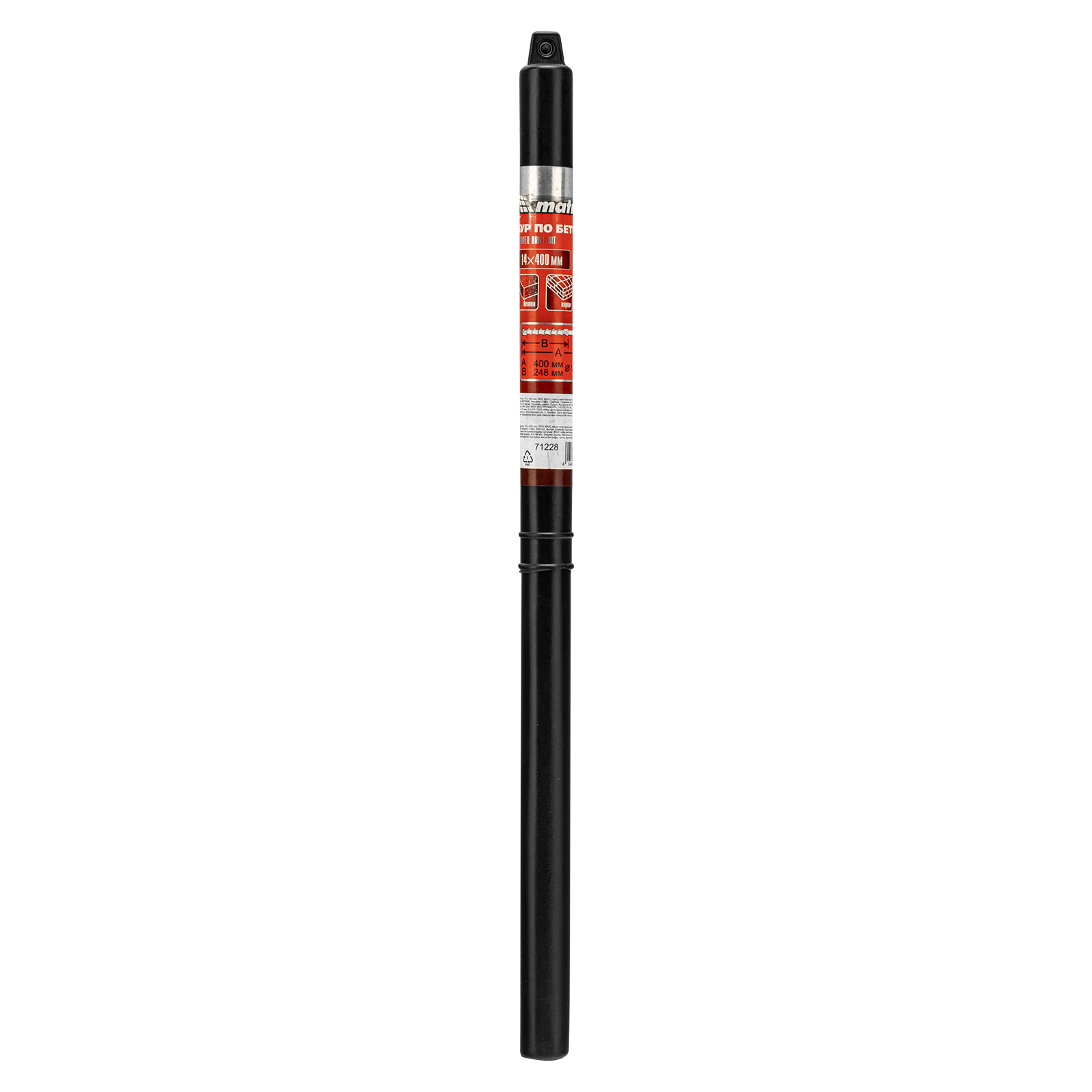 Бур по бетону Matrix 71228 размером 14 х 400 мм используется в качестве оснастки на тяжелых перфораторах с хвостовиком SDS MAX. Подходит для сверления глубоких отверстий в кирпиче и особо прочных материалах: армированном бетоне, природном и искусственном камне.
