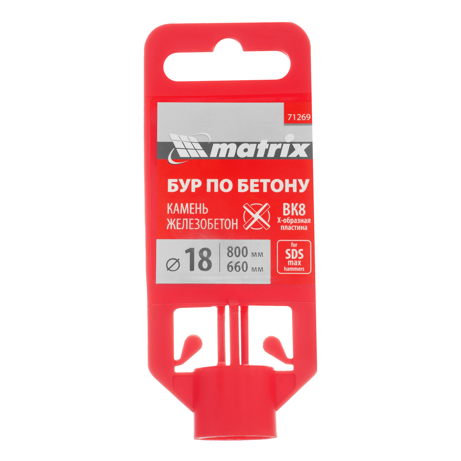 Бур по бетону Matrix 71269 размером 18 х 800 мм используется в качестве оснастки на тяжелых перфораторах с хвостовиком SDS MAX. Подходит для сверления глубоких отверстий в кирпиче и особо прочных материалах: армированном бетоне, природном и искусственном камне.