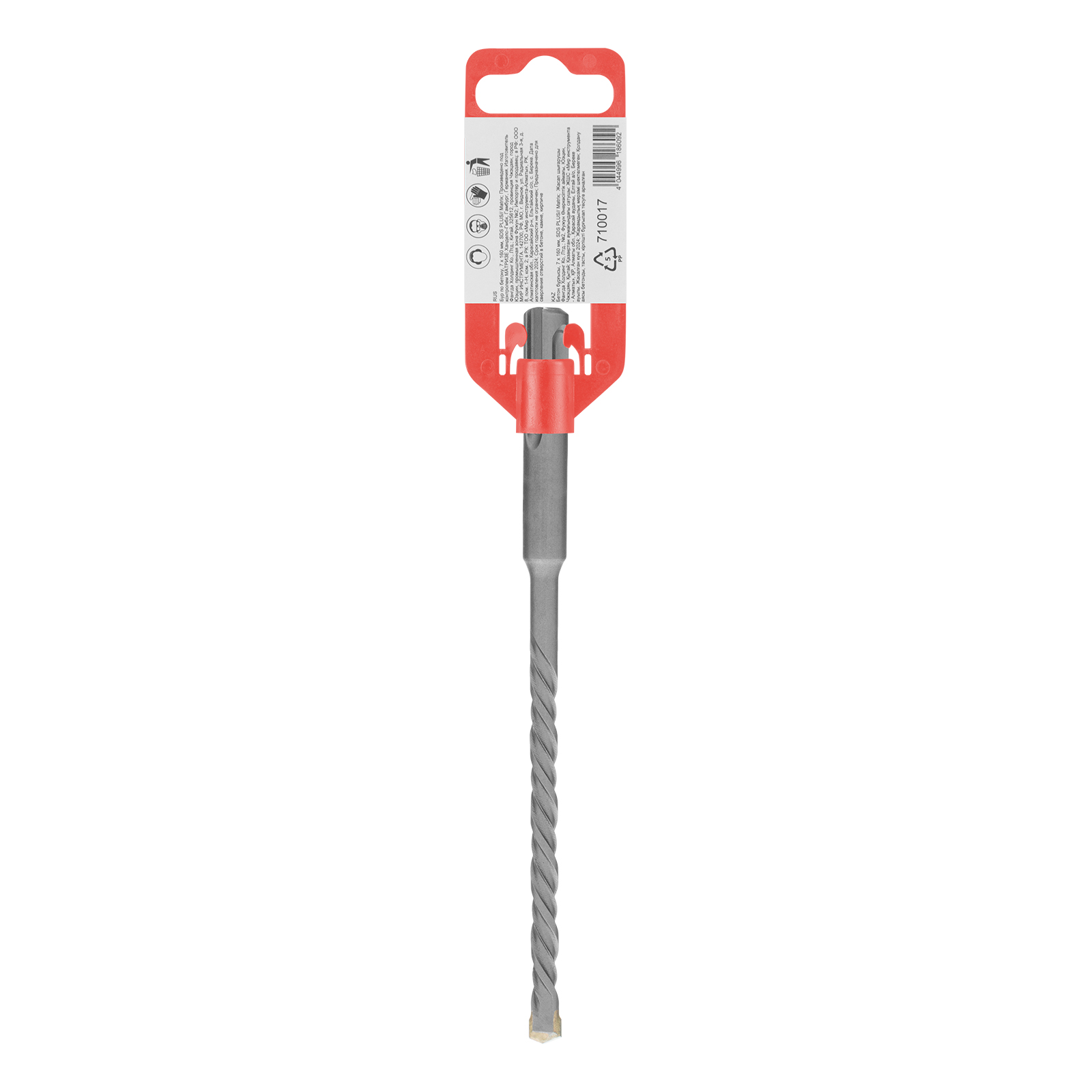 Бур по бетону Matrix 710017 длиной 160 мм, с хвостовиком SDS-plus, предназначен для установки на перфоратор и получения отверстий диаметром 7 мм в бетоне, камне и кирпиче. Позволяет эффективно решать поставленные задачи благодаря режущей пластине из высокотвердого сплава карбида вольфрама ВК8 твердостью 80-90 HRC.