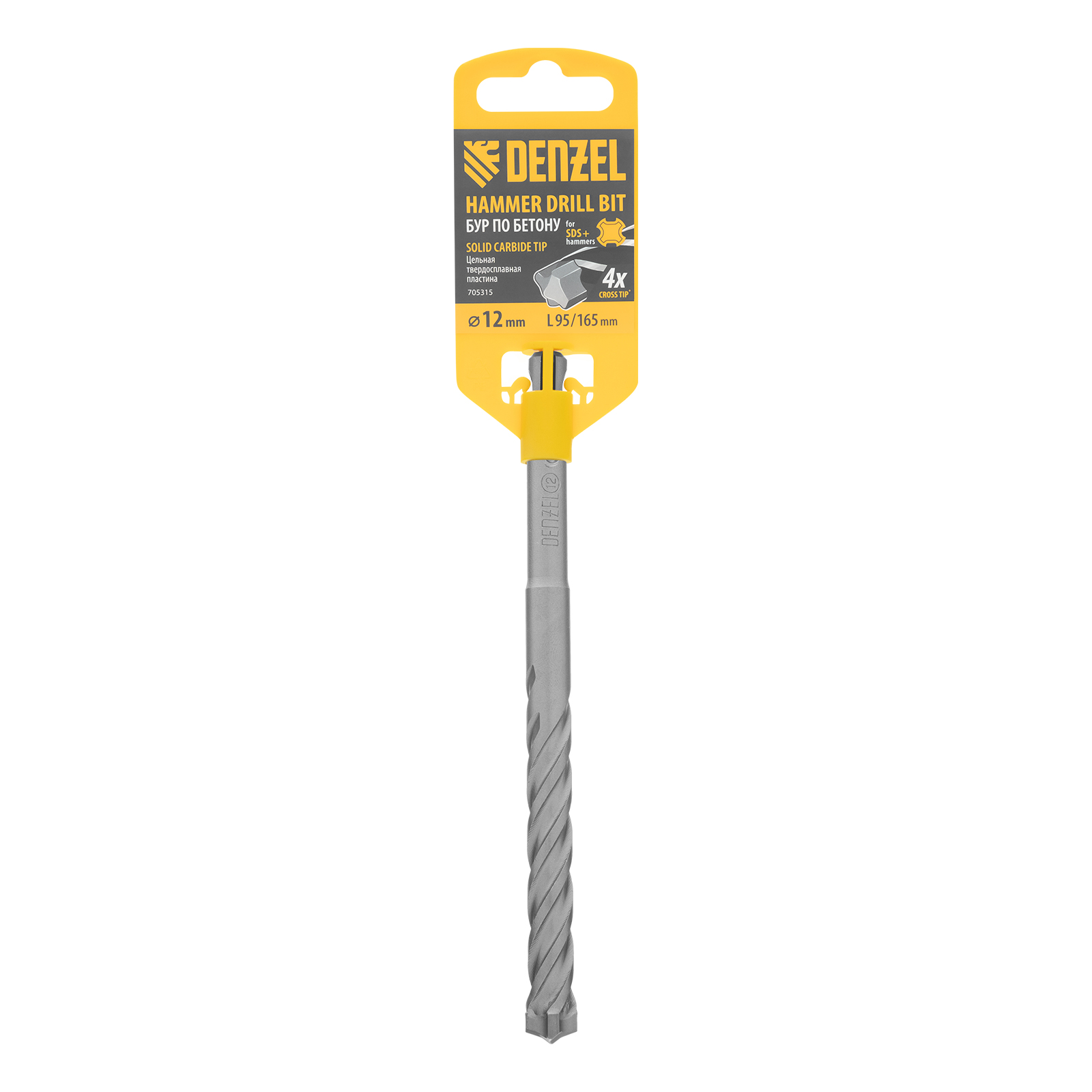 Бур по бетону, цельная крестовая пластина, 12x165 мм, SDS PLUS Denzel в Челябинске