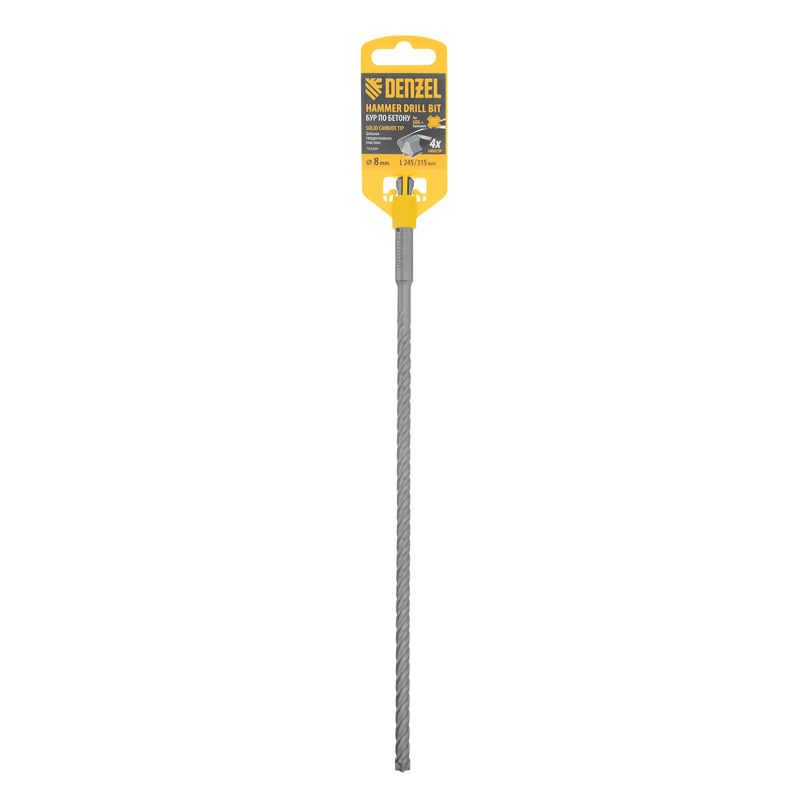 Бур по бетону, цельная крестовая пластина, 8x315 мм, SDS PLUS Denzel в Челябинске