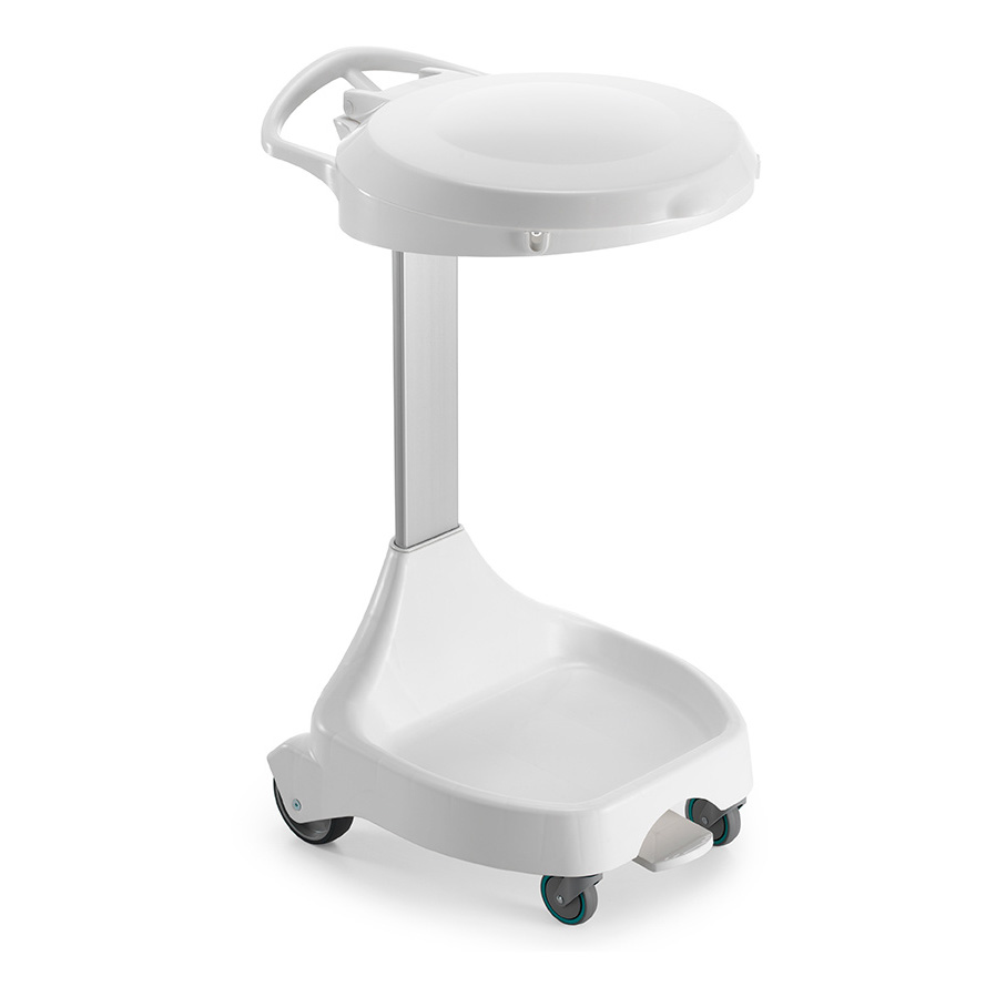 Пластиковый держатель мусорных мешков DELTAС с широким кольцом, округлыми краями и гладкой поверхностью покрытия укомплектована двумя колесами ø 125 мм и двумя колесами ø 80 мм, педалью и крышкой. Широко применяется в бытовой и производственной сферах: гостиничном бизнесе, медицинских учреждениях, ресторанном деле и других отраслях.