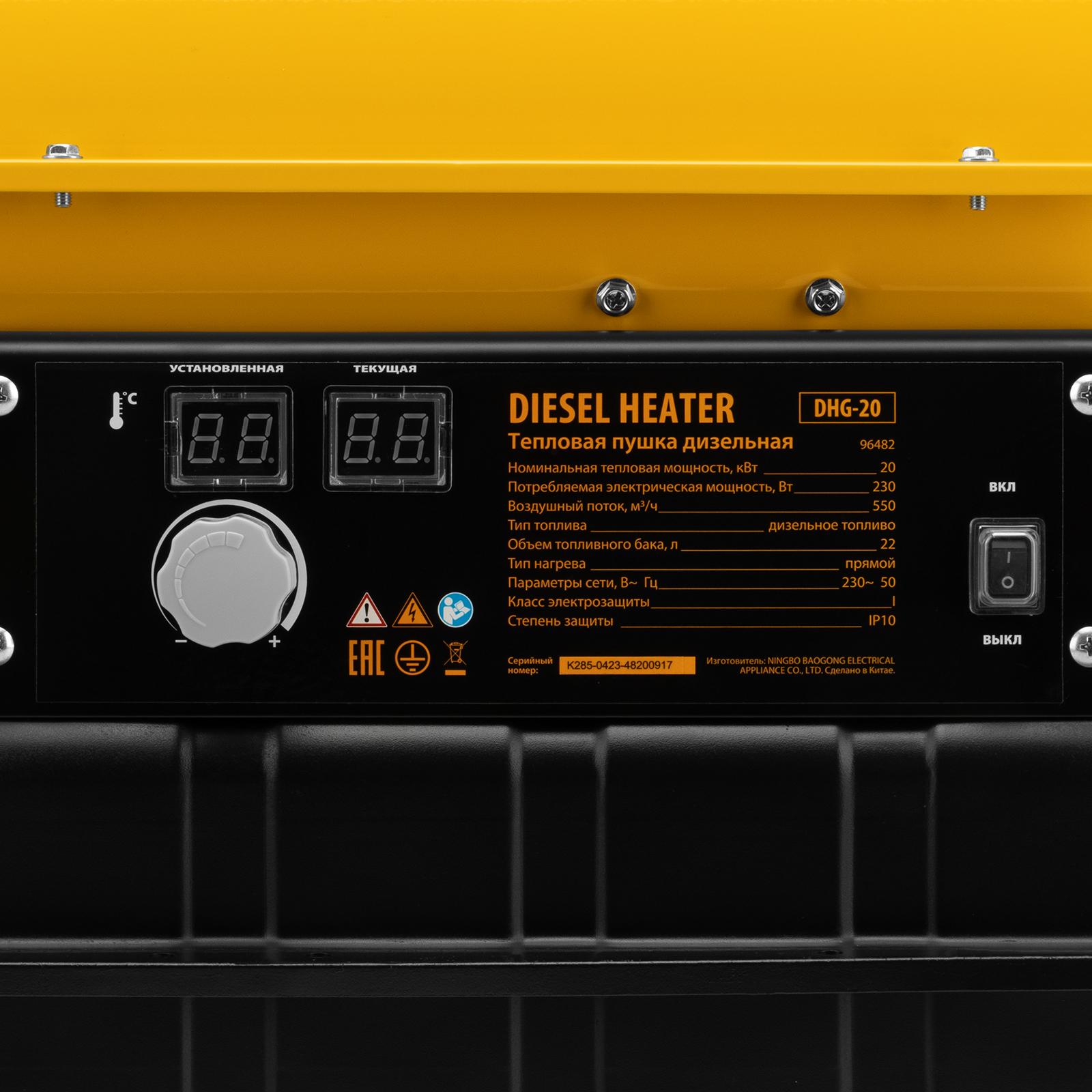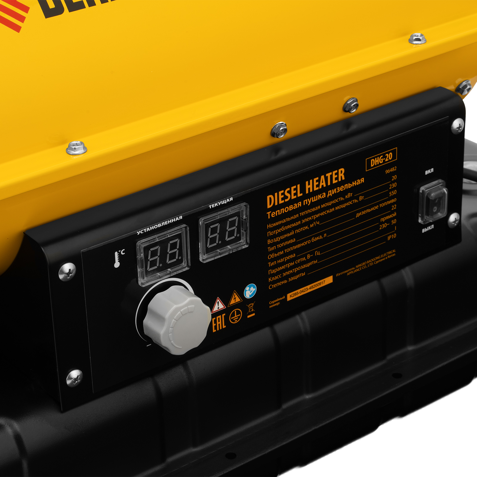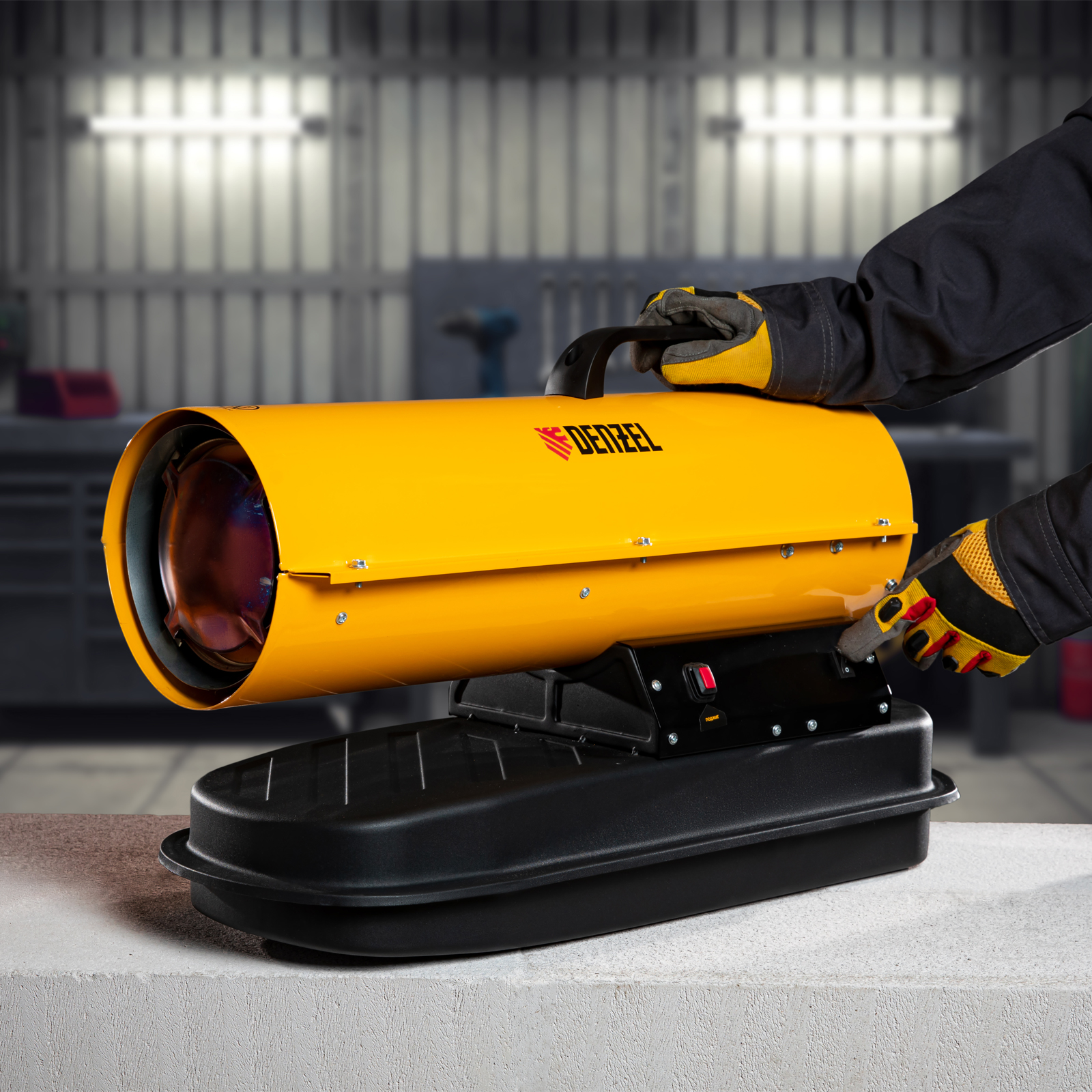 Дизельная тепловая пушка Denzel DHG-20 96482 мощностью 20 кВт и производительностью 500 куб. м/ч предназначена для прямого нагрева воздуха в цехах, ангарах, хранилищах и других нежилых помещениях с хорошей вентиляцией. Максимальная площадь обогрева составляет 200 кв. м. Пушка служит эффективным источником тепла в полярных экспедициях. Пригодится также на строительной площадке для прогрева бетона, просушки стен и разморозки траншей. Для заправки может использоваться любое дизельное топливо: летнее, зимнее и арктическое.