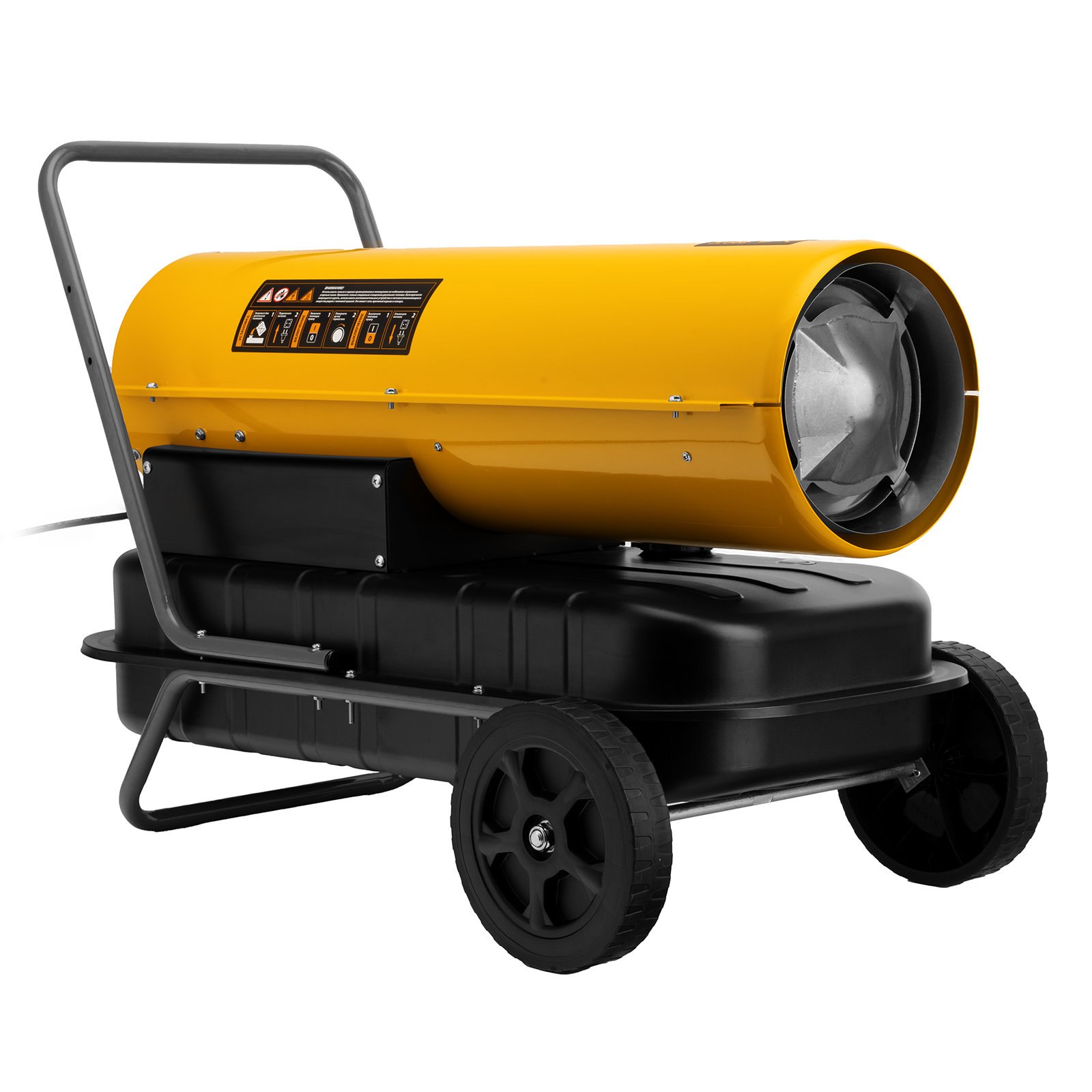 - Удобство транспортировки — тепловая пушка оснащена ручкой и 2 колесами.