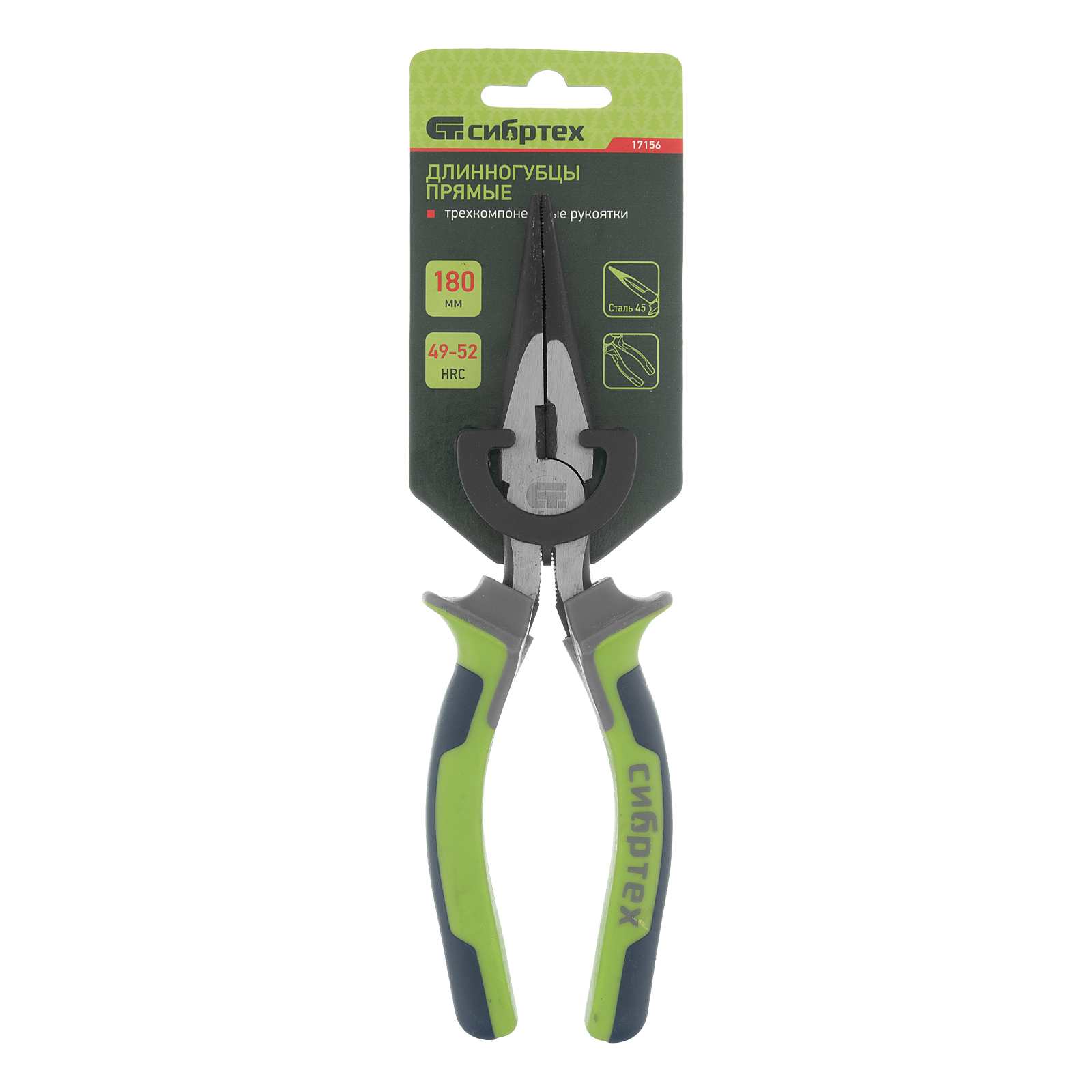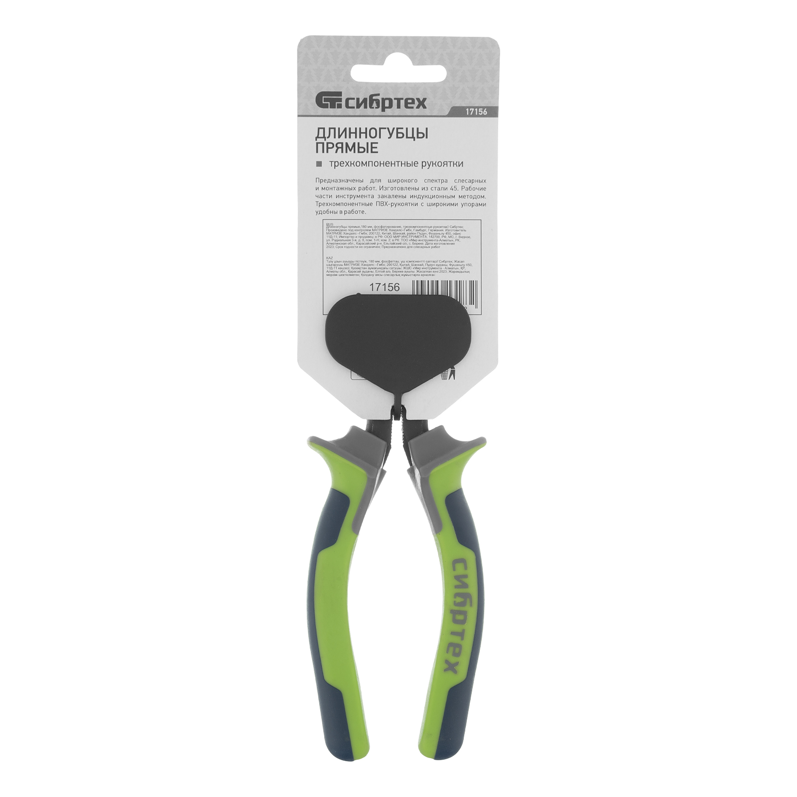 Длинногубцы прямые 180 мм, фосфатирование, трехкомпонентные рукоятки Сибртех в Челябинске