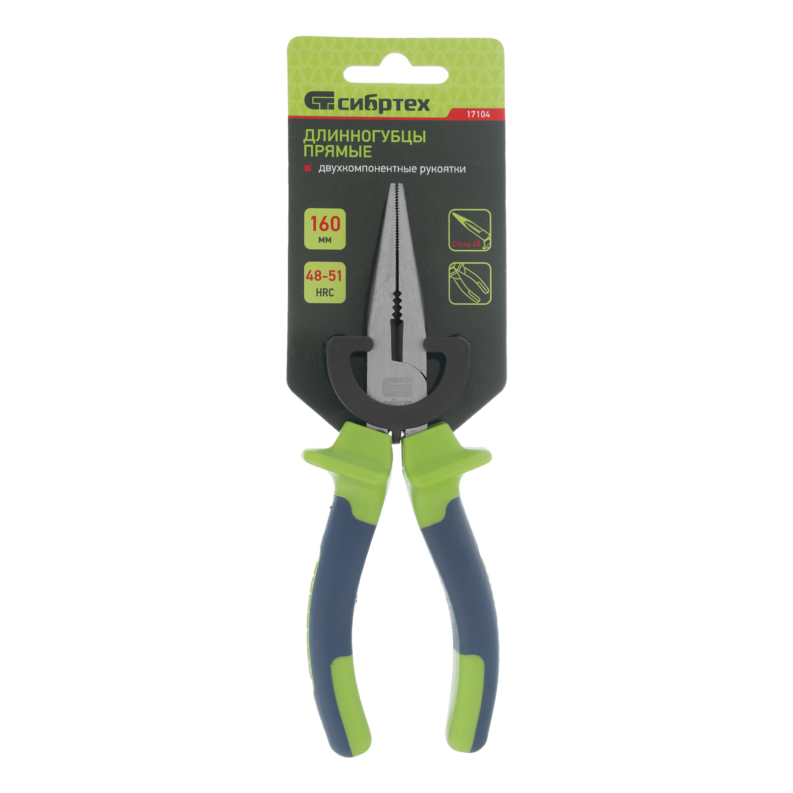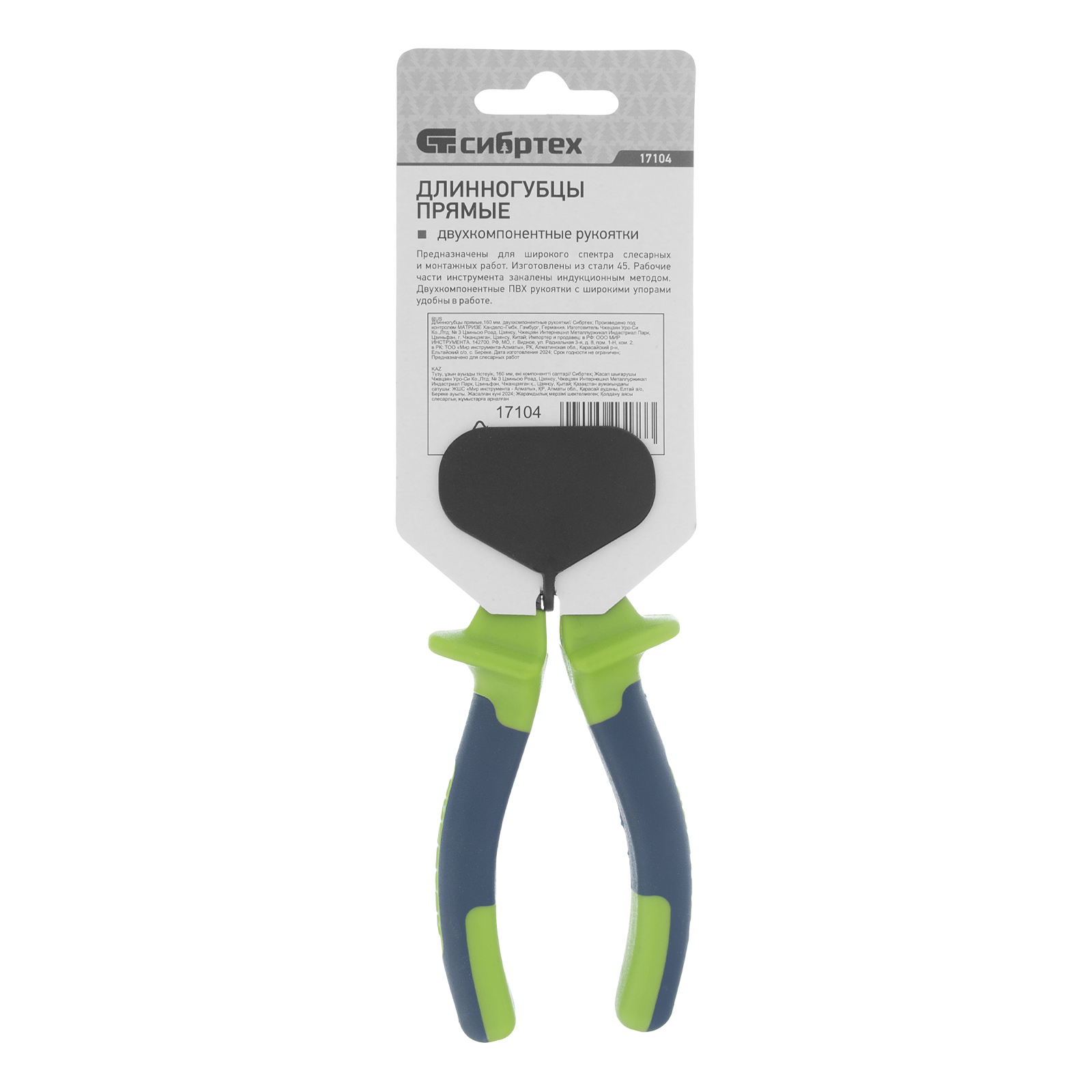 Длинногубцы прямые, 160 мм, двухкомпонентные рукоятки Сибртех в Челябинске
