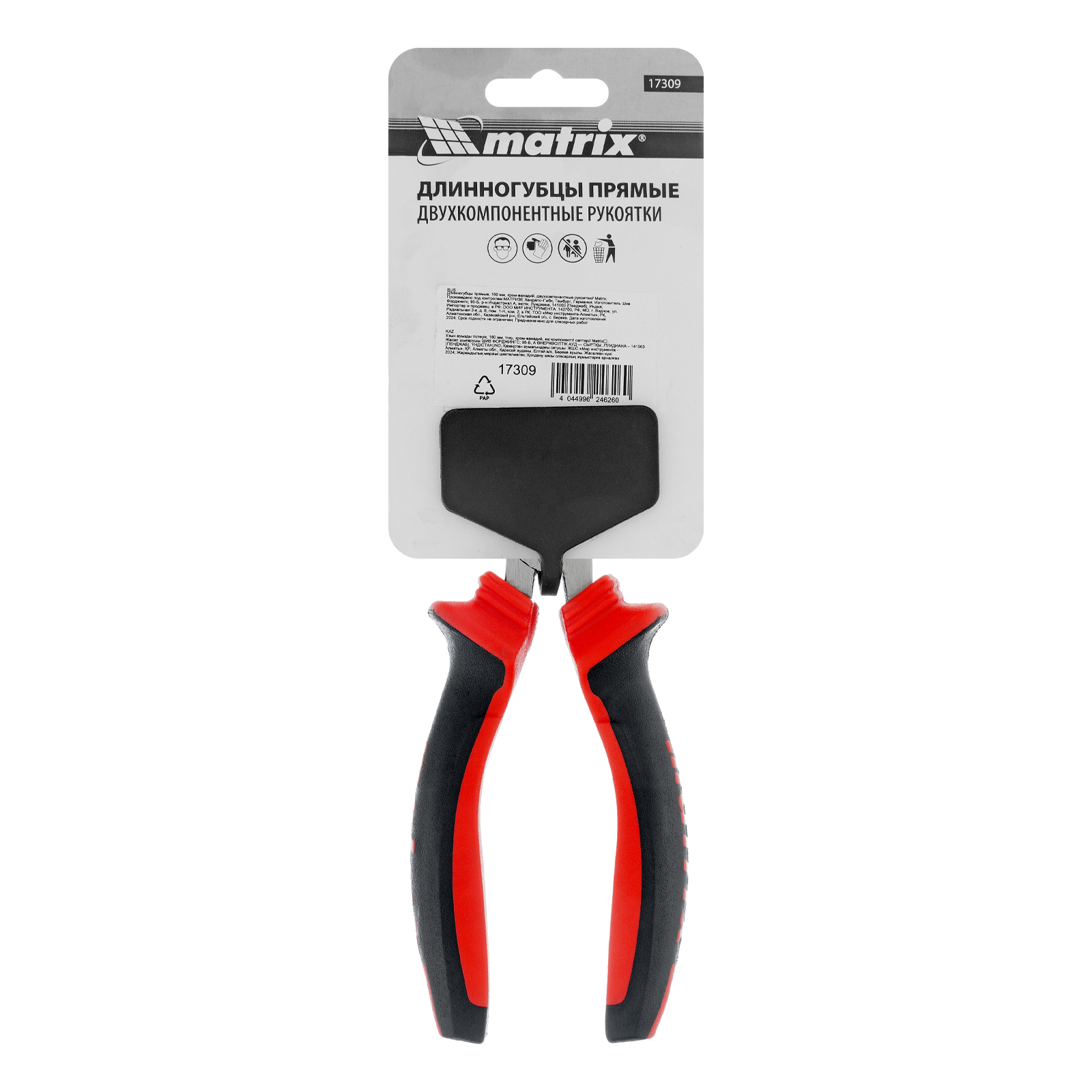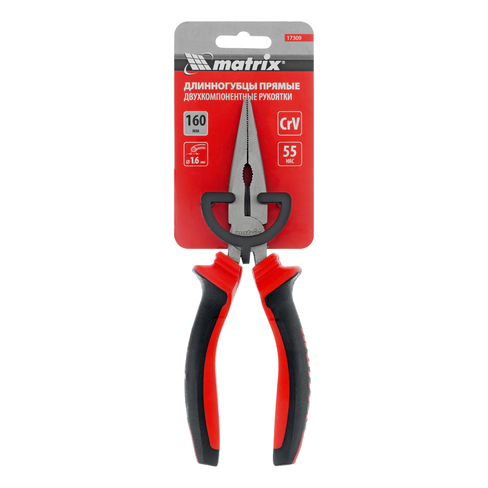 Длинногубцы прямые, 160 мм, хром-ванадий, двухкомпонентные рукоятки Matrix в Челябинске