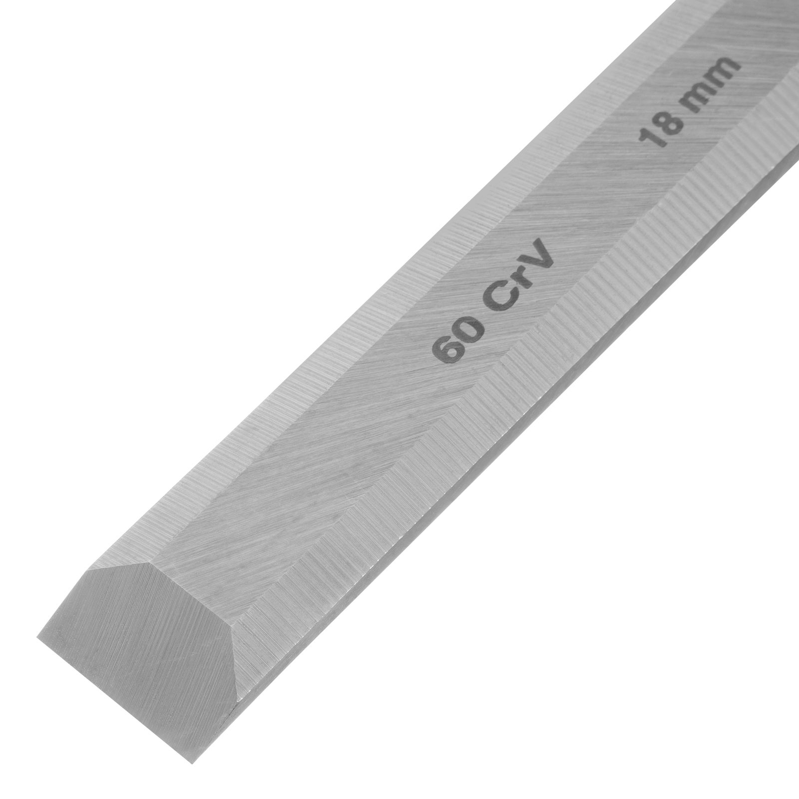 - Длительное сохранение режущих свойств — долото-стамеска обладает твердостью 65 HRC (0,7 длины рабочей части полотна), острое, как бритва, лезвие обработано на заводе под углом 20-35°, повторная заточка потребуется минимум через 6 месяцев.