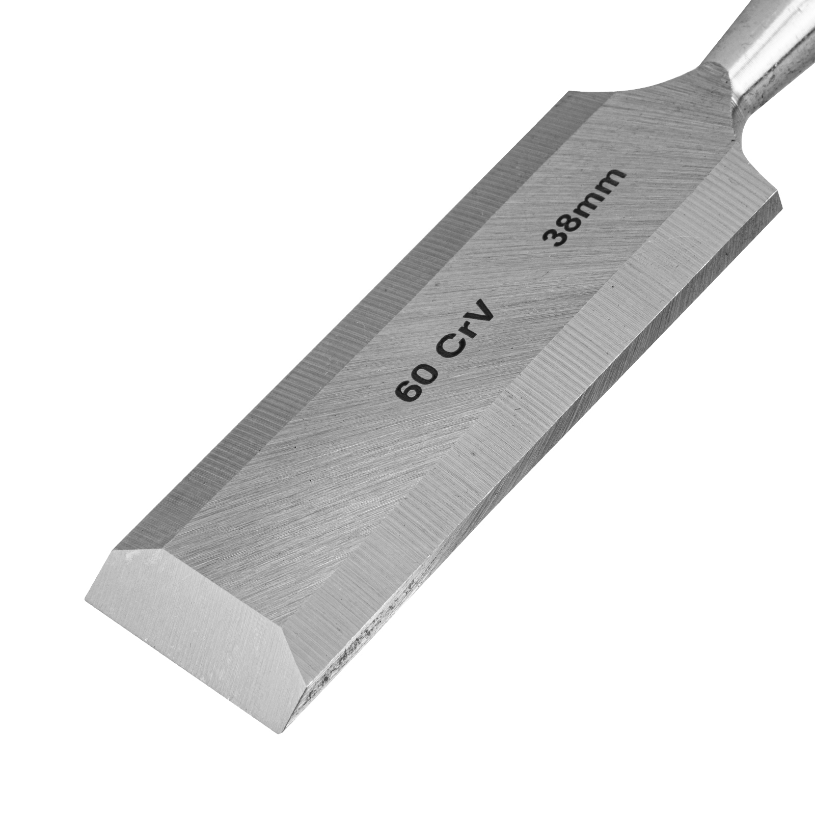 - Длительное сохранение режущих свойств — долото-стамеска обладает твердостью 65 HRC (0,7 длины рабочей части полотна), острое, как бритва, лезвие обработано на заводе под углом 20-35°, повторная заточка потребуется минимум через 6 месяцев.