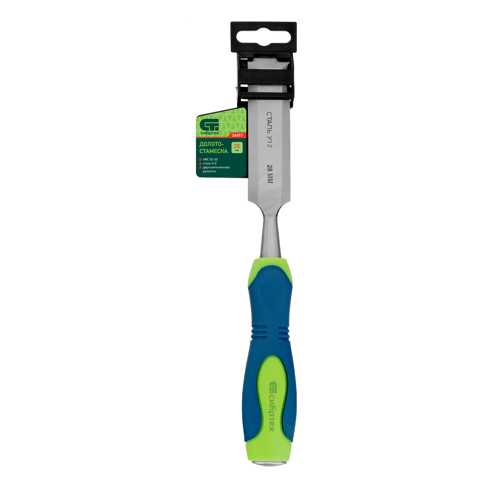 Долото-стамеска Сибртех 24493 с двухкомпонентной рукояткой — ручной инструмент с шириной режущей части 28 мм для столярных и плотницких работ с массивом натурального дерева. Под ударом киянки или небольшого молотка долото-стамеска легко врезается в древесину любых пород, что позволяет получать аккуратные прямоугольные пазы, снимать фаски, зачищать гнезда и т.д.