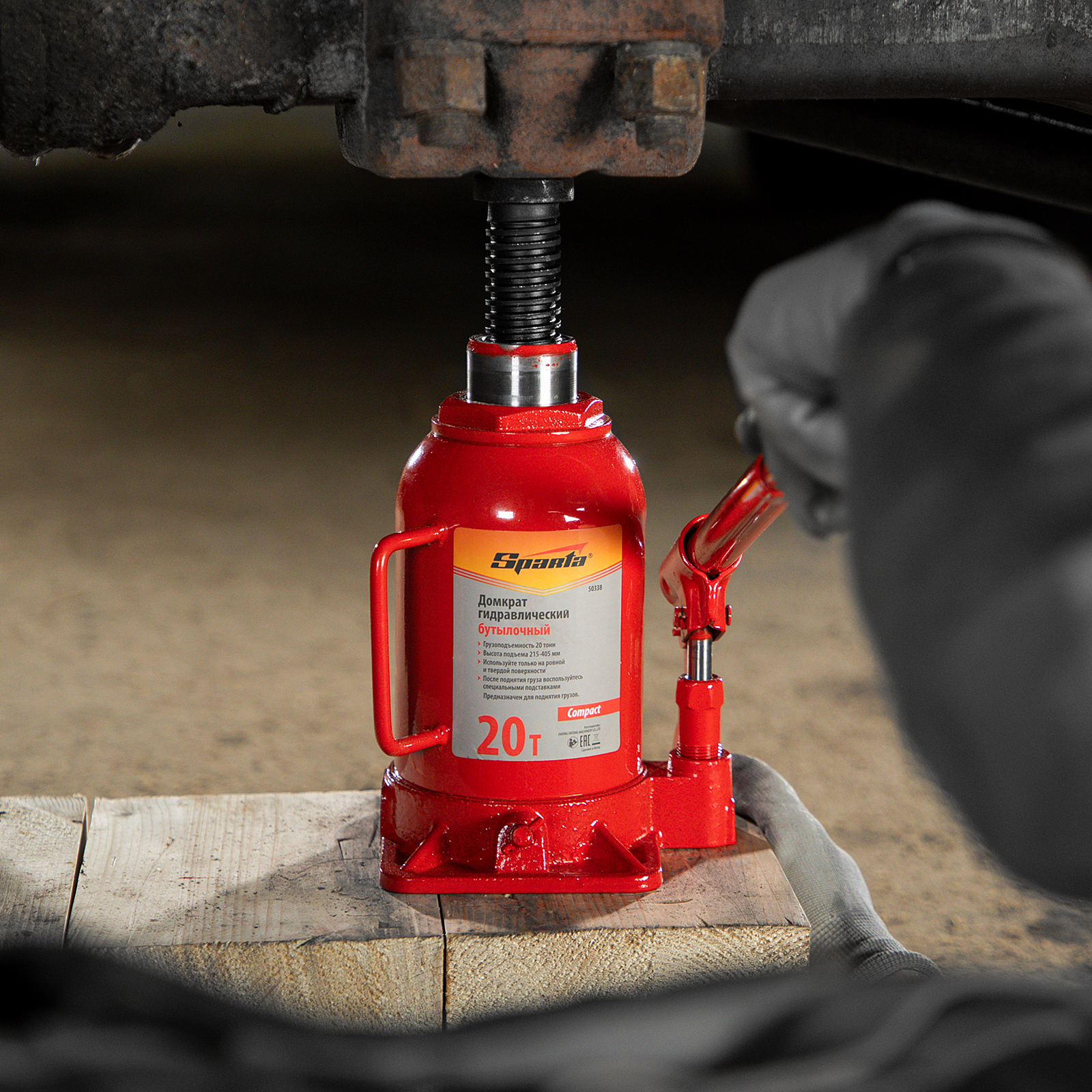 Домкрат гидравлический бутылочный 20 т, h подъема 215-405 мм Sparta Compact в Челябинске