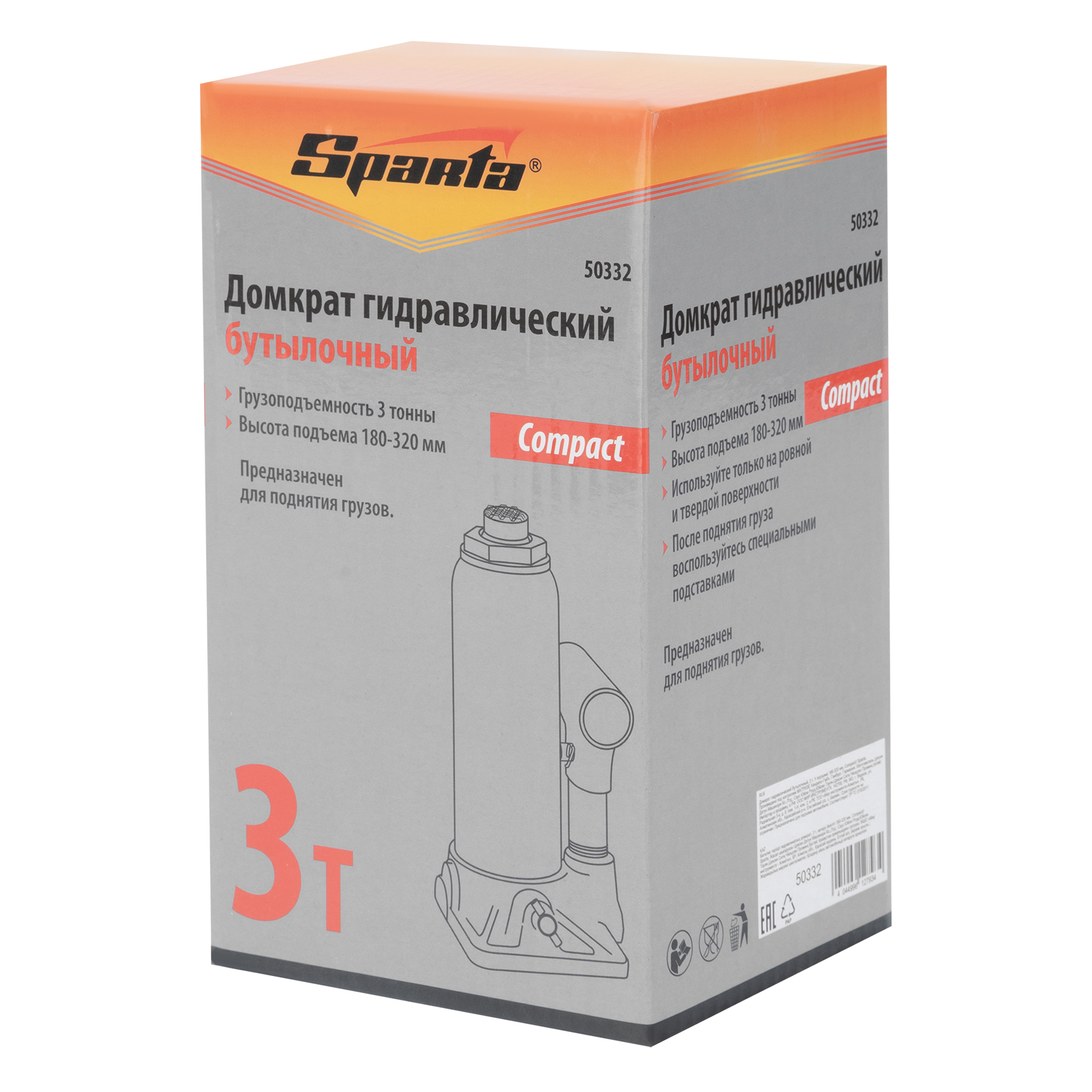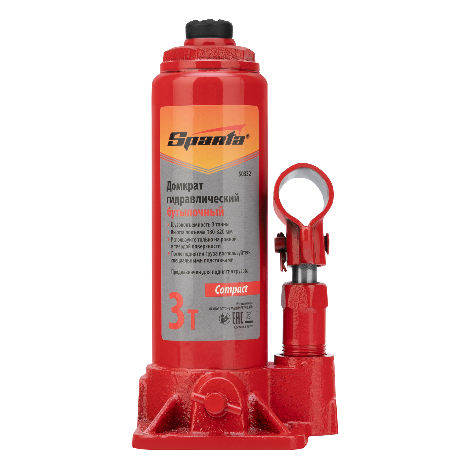Домкрат гидравлический бутылочный 3т, h подъема 180-320 мм Sparta Compact в Челябинске