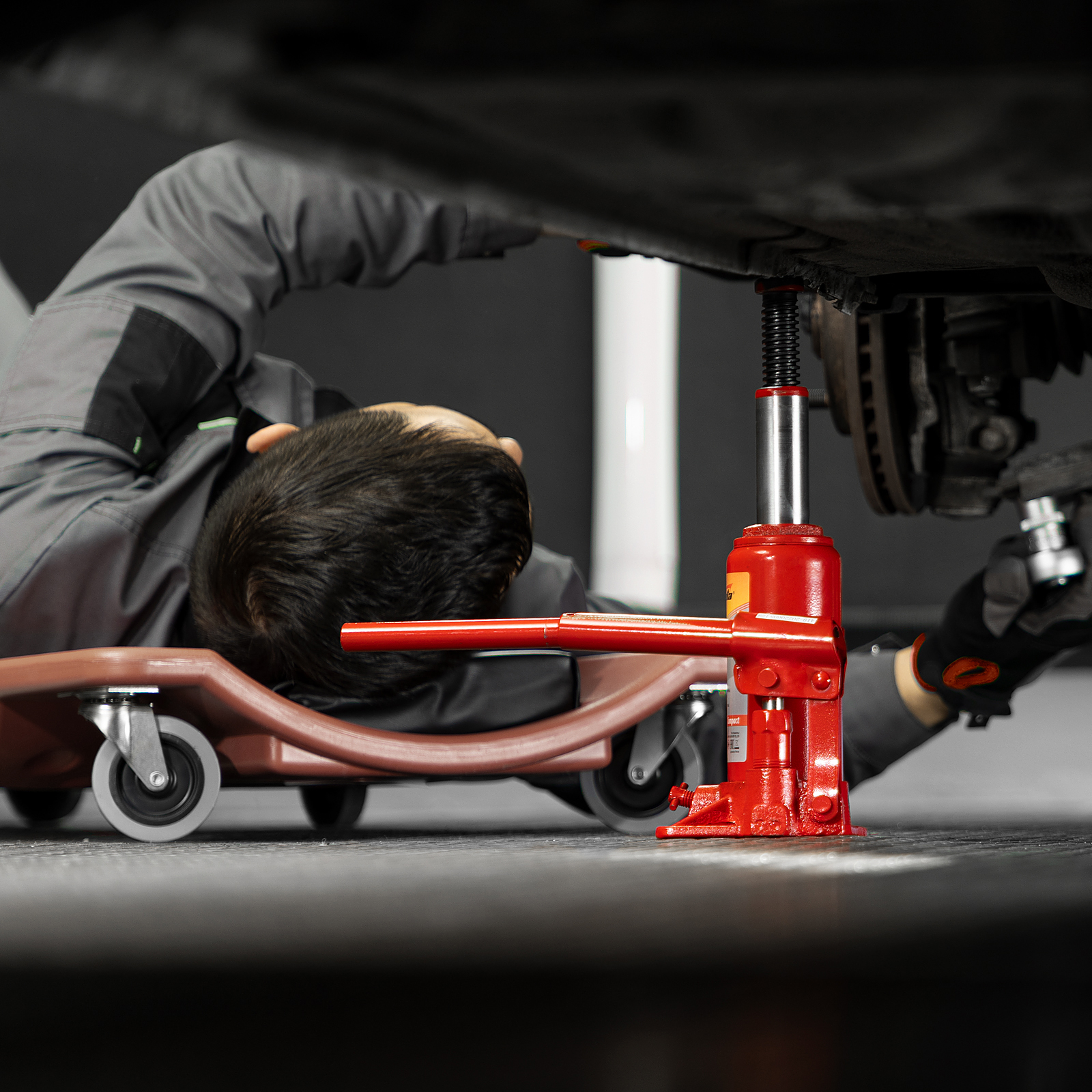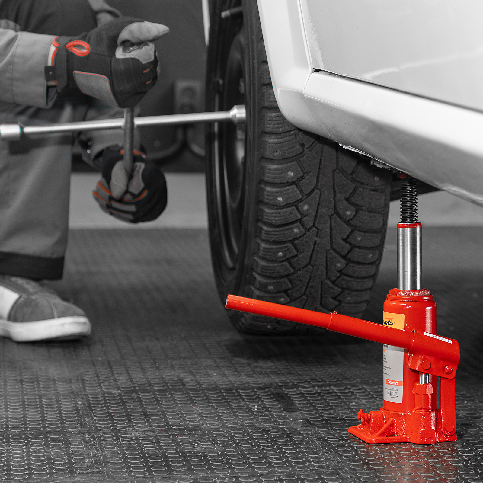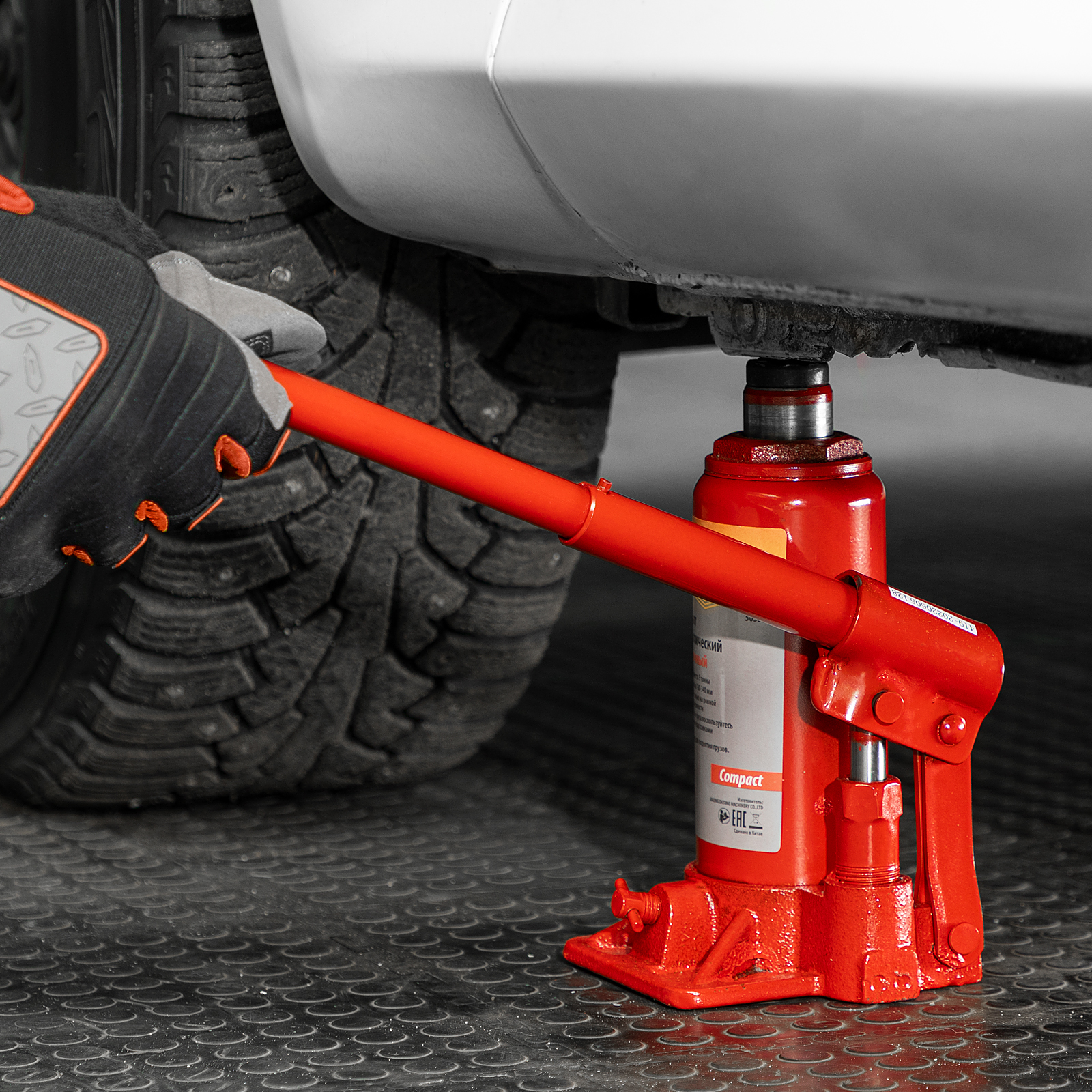 - Удобное хранение и транспортировка — домкрат весит 2,98 кг и не занимает много места благодаря съемному рычагу.
