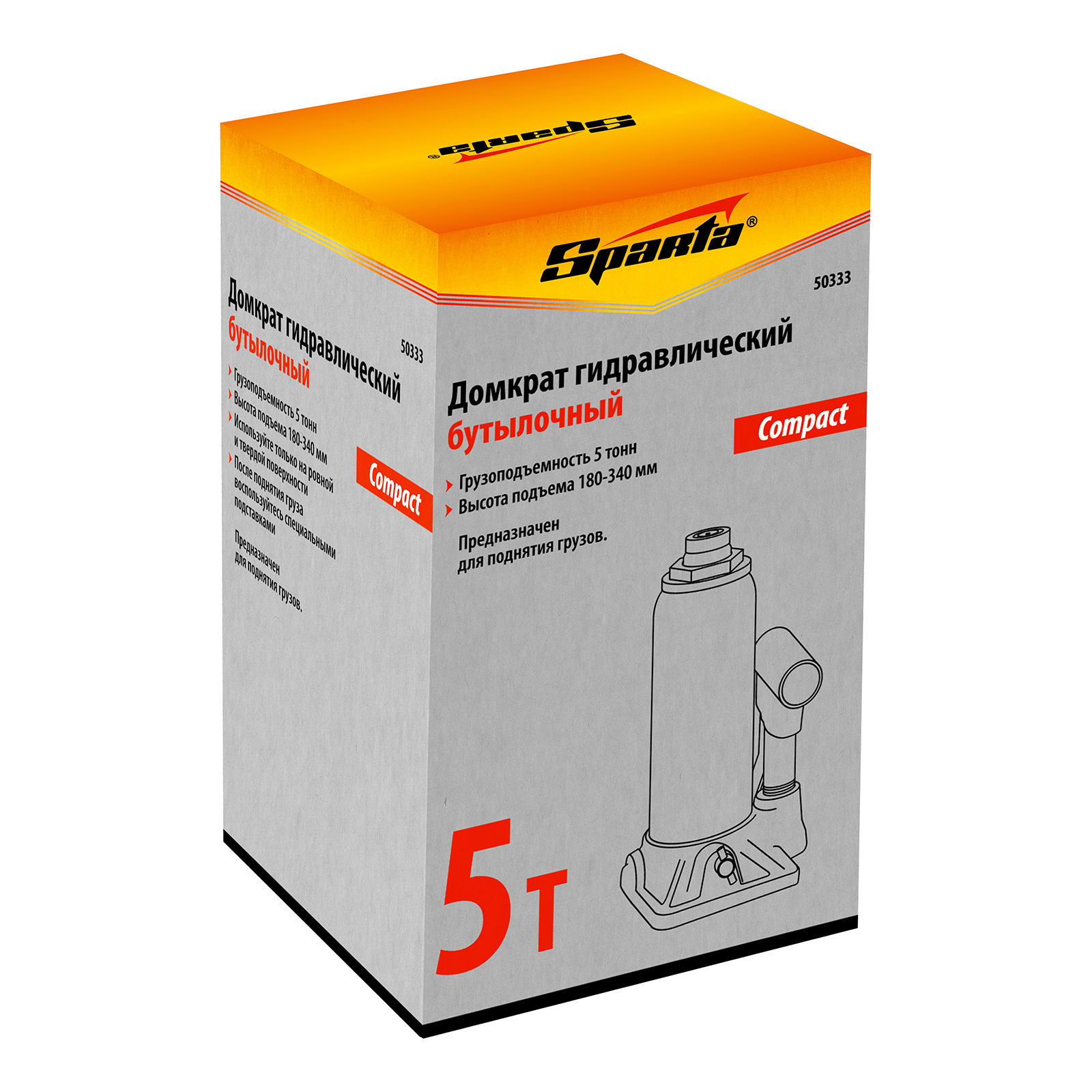 Домкрат гидравлический бутылочный 5 т, h подъема 180-340 мм Sparta Compact в Челябинске
