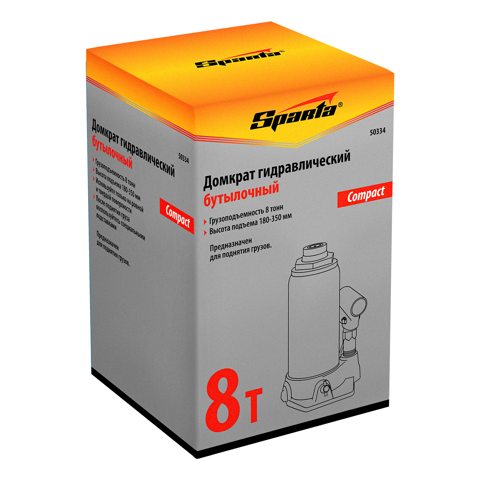 Домкрат гидравлический бутылочный 8 т, h подъема 180-350 мм Sparta Compact в Челябинске