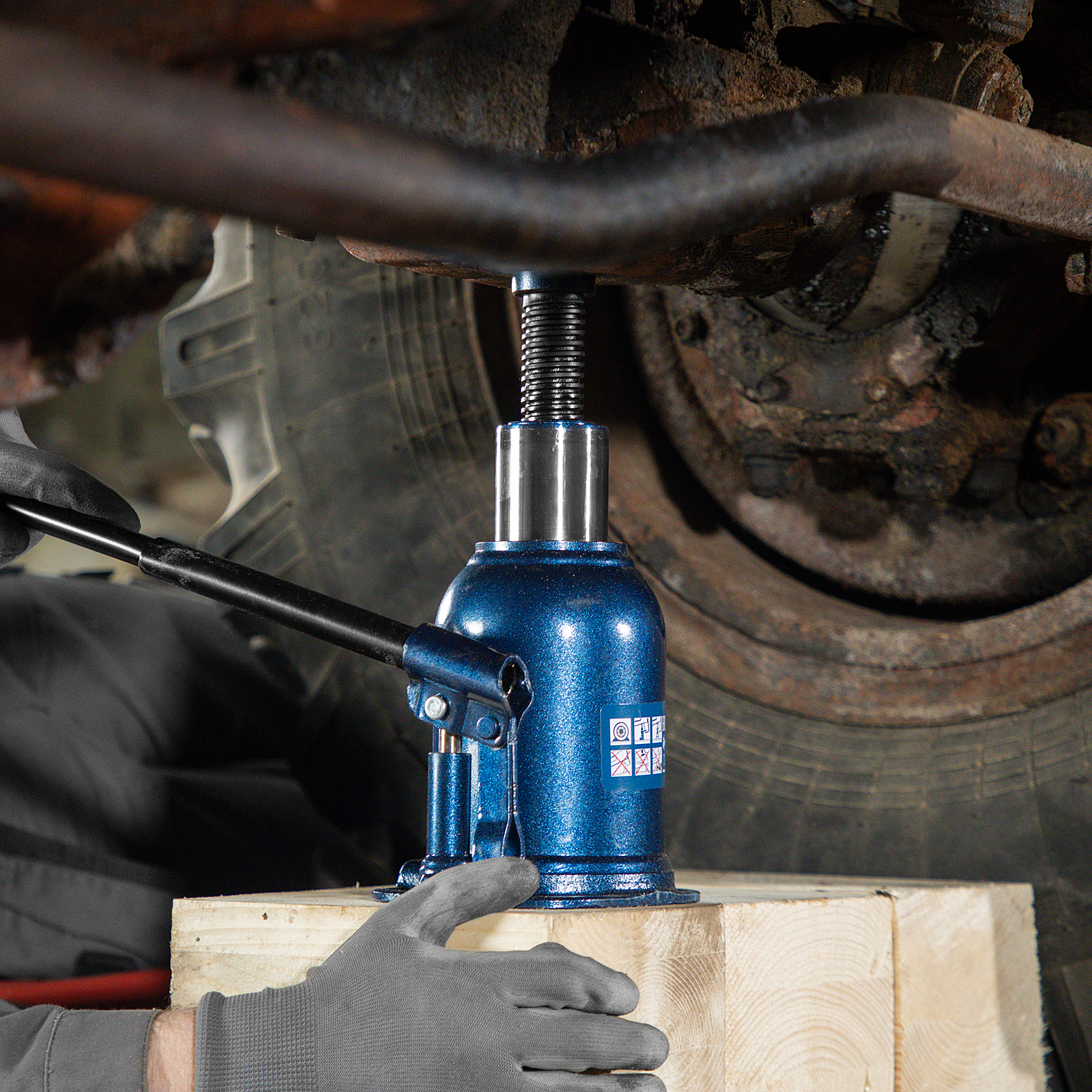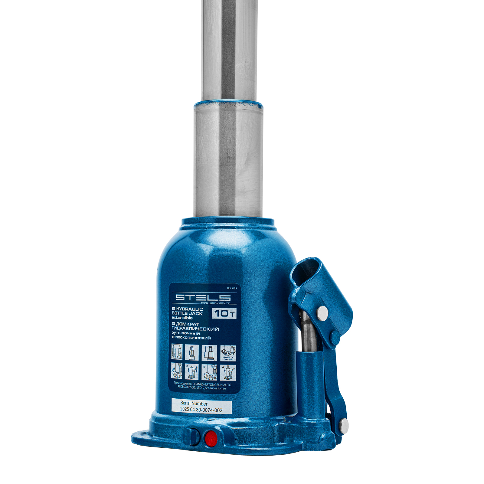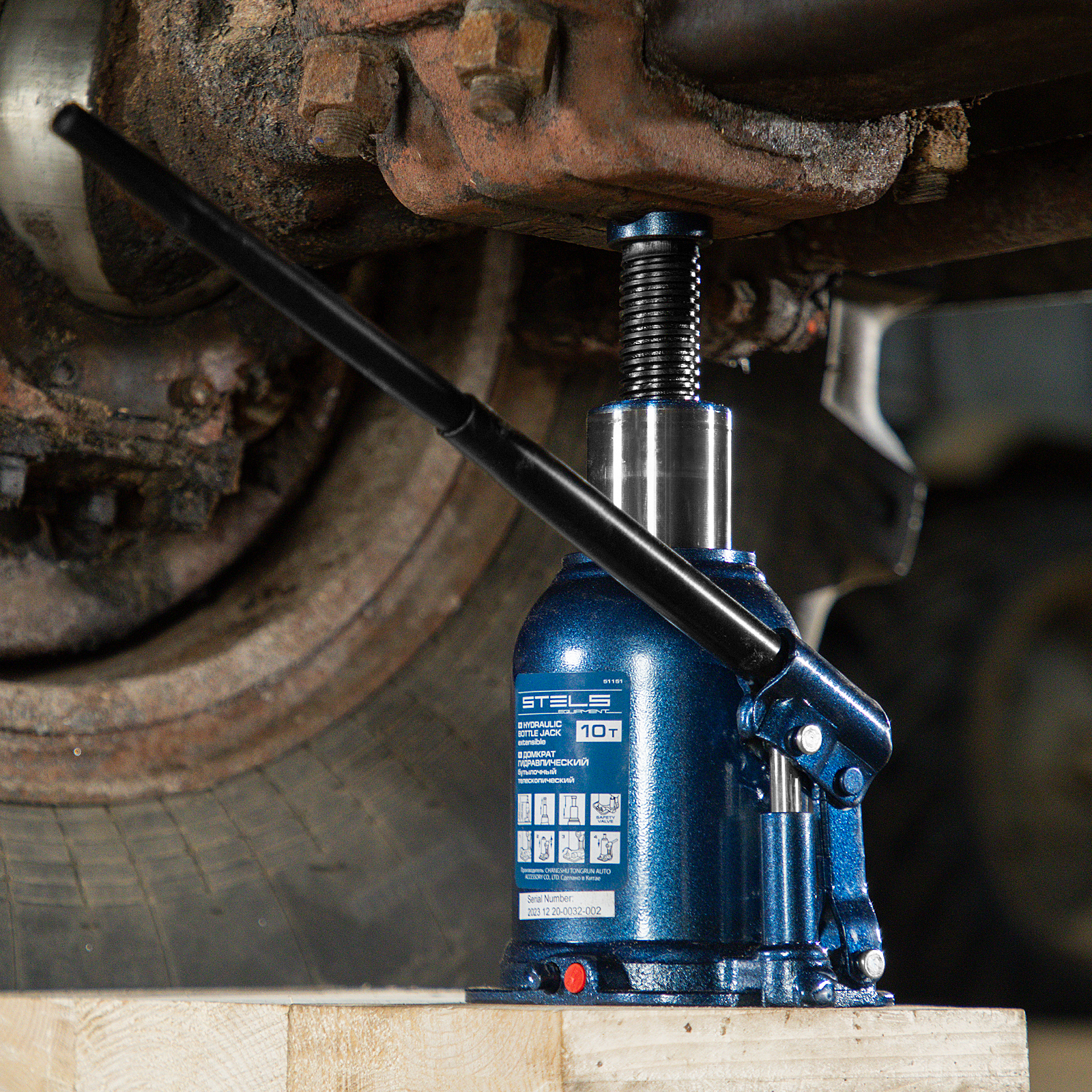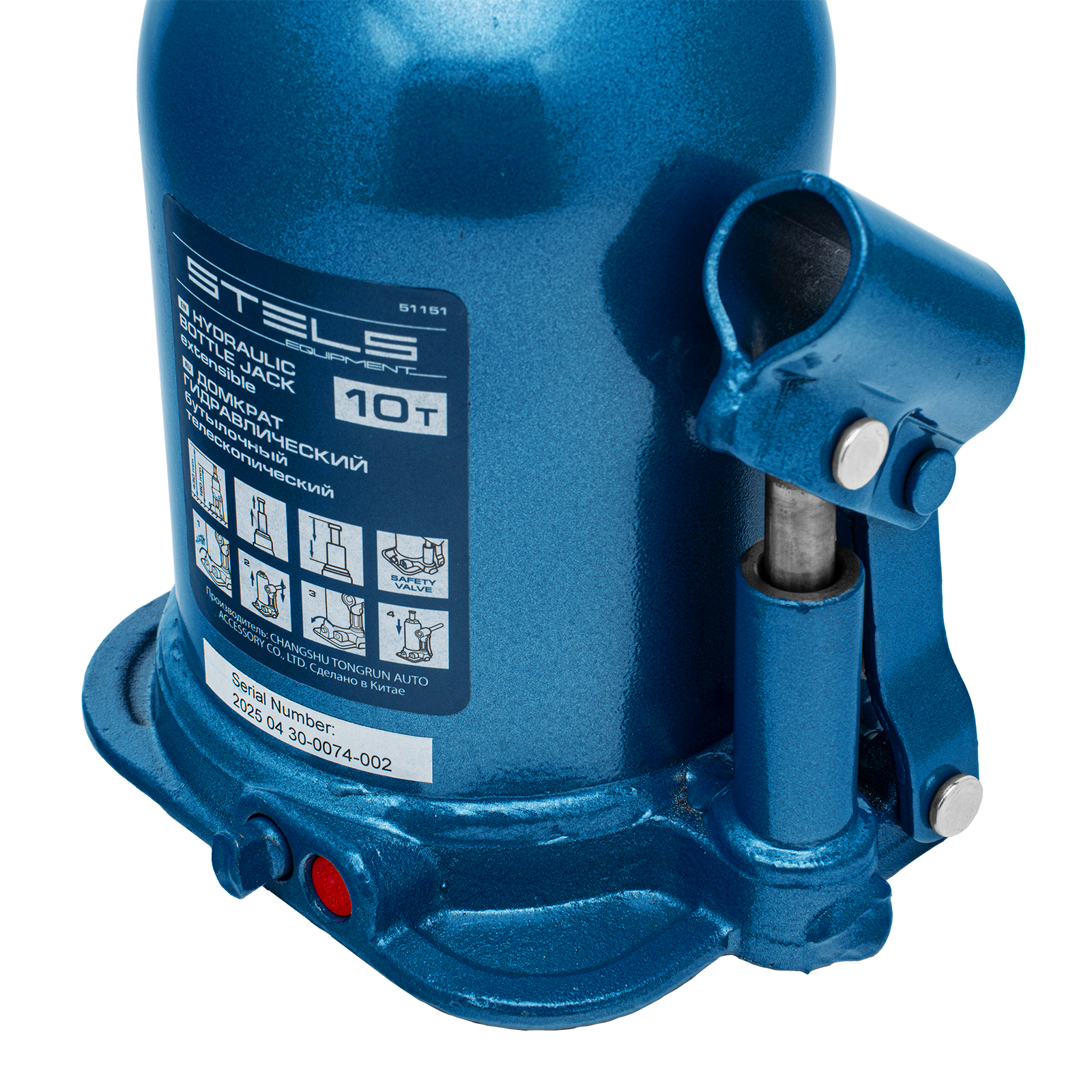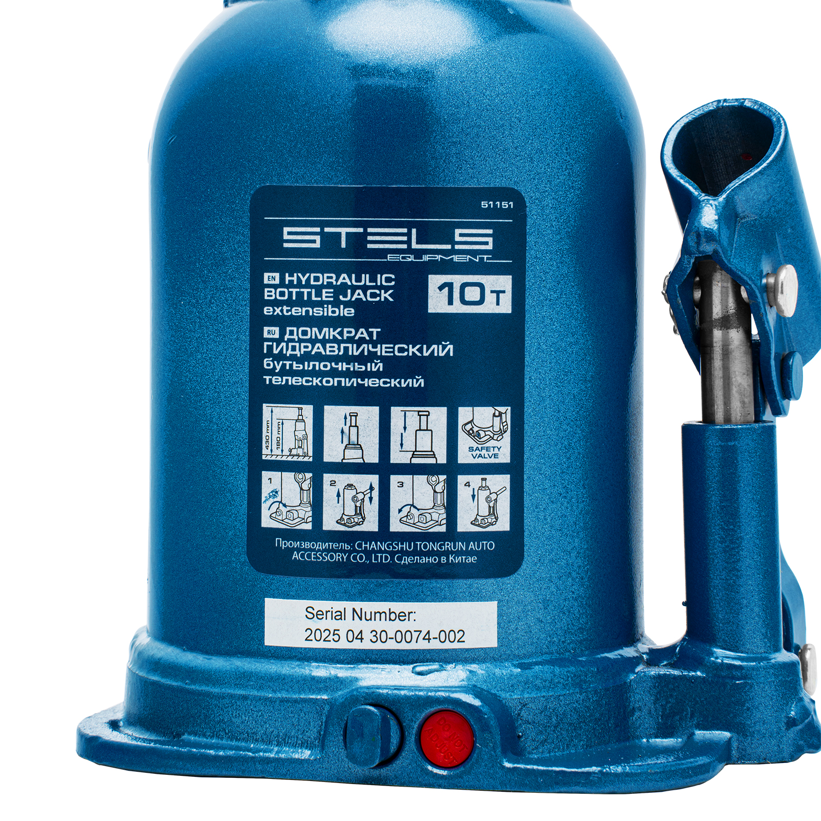 Домкрат гидравлический бутылочный Stels 51151, телескопический, используется для поднятия грузов весом до 10 т с на высоту 180-430 мм. Не требует больших усилий и оптимален для автомобилей с большим клиренсом. Домкрат можно использовать в гараже для самостоятельного ремонта машины или в автосервисе для решения профессиональных задач.
