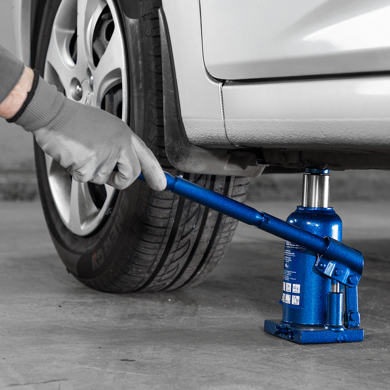 - Малый вес 4,85 кг — домкрат легко перемещать и перевозить в багажнике машины.