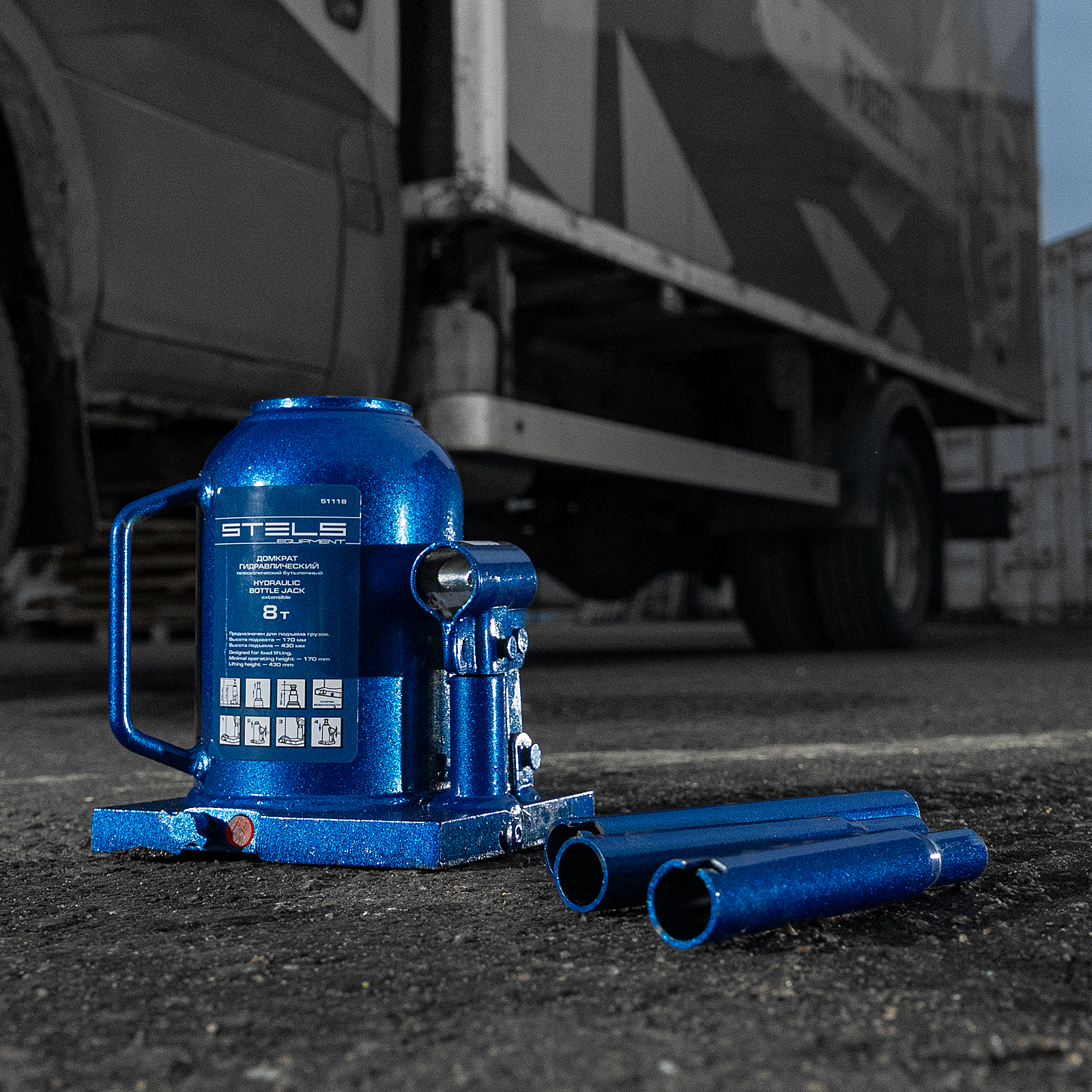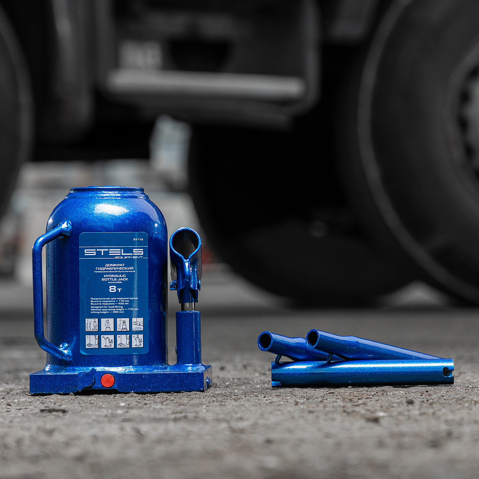 Гидравлический бутылочный телескопический домкрат Stels 51118 используется для поднятия грузов весом до 8 т с на высоту 170-430 мм. Не требует больших усилий и оптимален для автомобилей с большим клиренсом. Домкрат можно использовать в гараже для самостоятельного ремонта машины или в автосервисе для решения профессиональных задач.