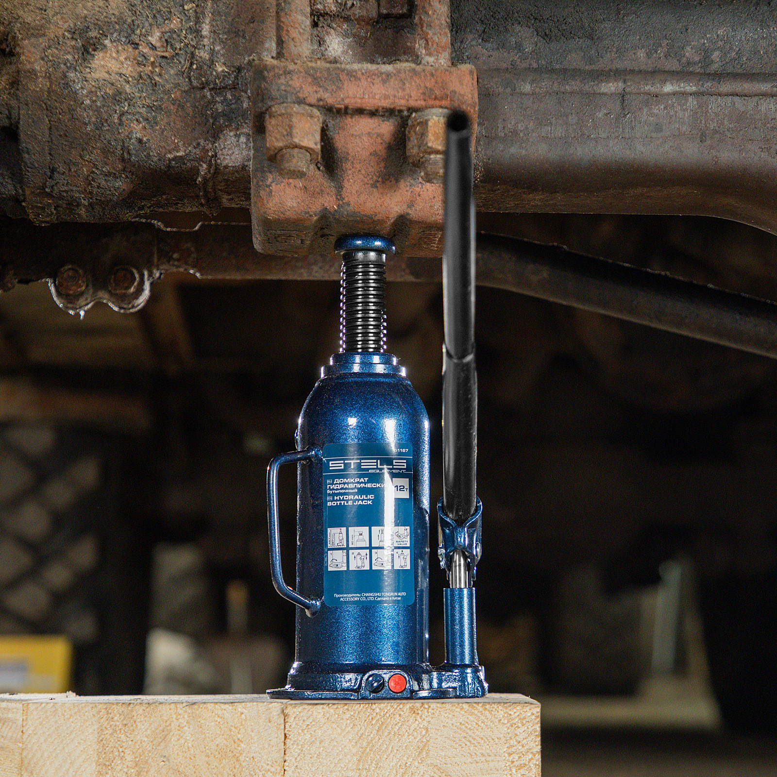 - Безопасная эксплуатация — благодаря предохранительному клапану домкрат не поднимает грузы тяжелее 12 т.