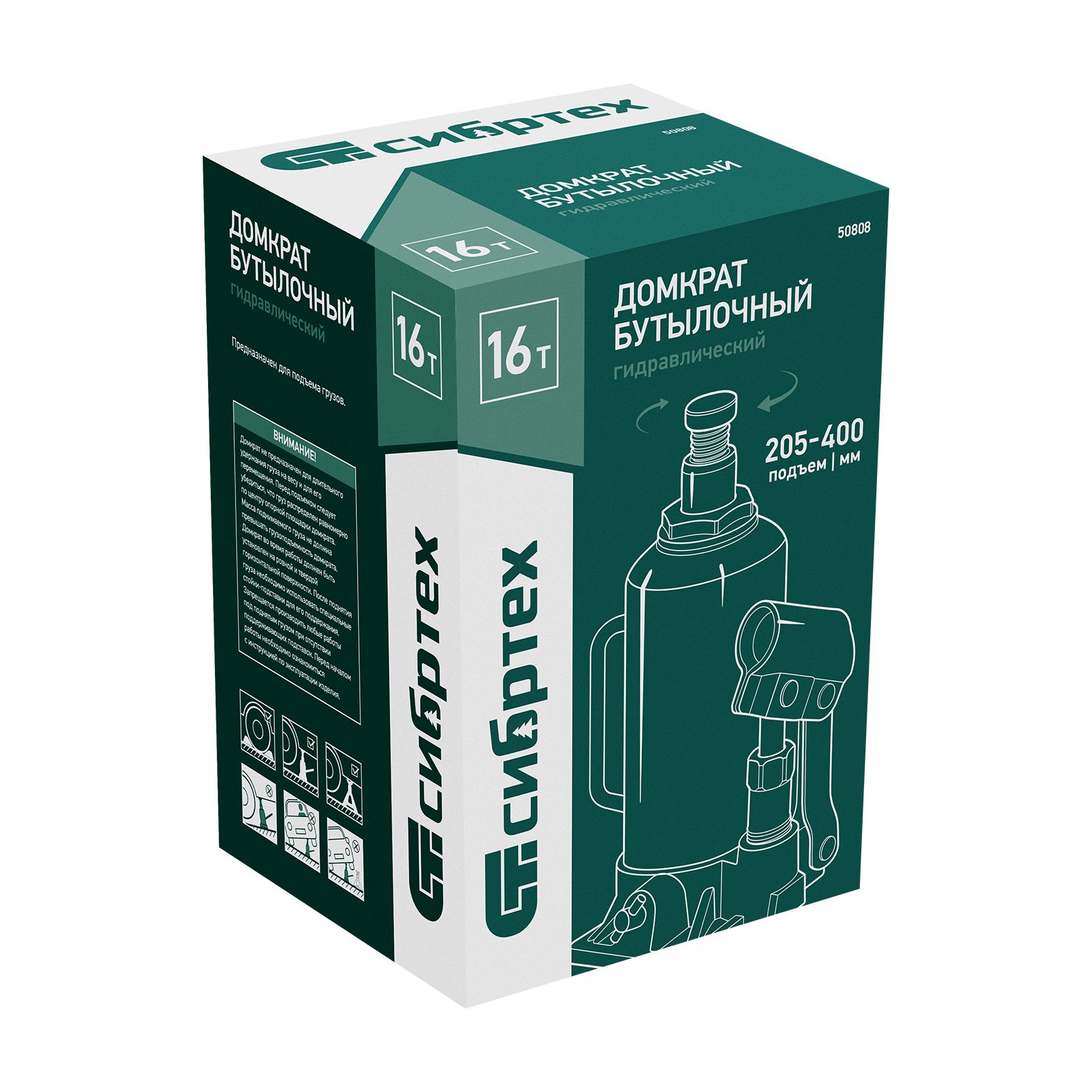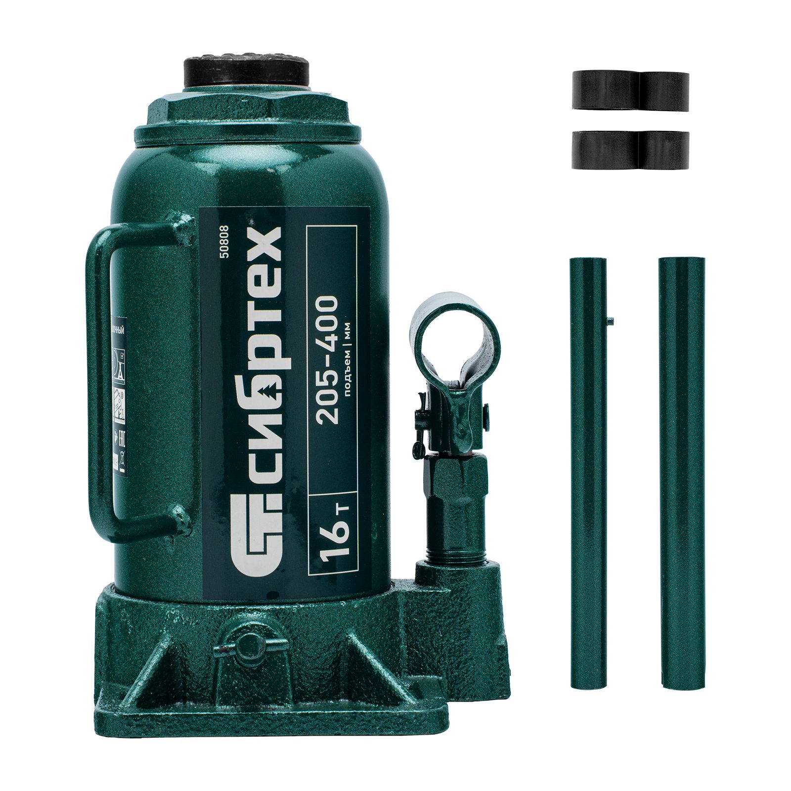 Домкрат гидравлический бутылочный Сибртех 50808 предназначен для подъема грузов массой до 16 т на высоту от 205 до 400 мм. Не требует больших усилий от пользователя и значительно облегчает рабочий процесс. Домкрат будет полезен при проведении техобслуживания машины в автосервисе или гараже.