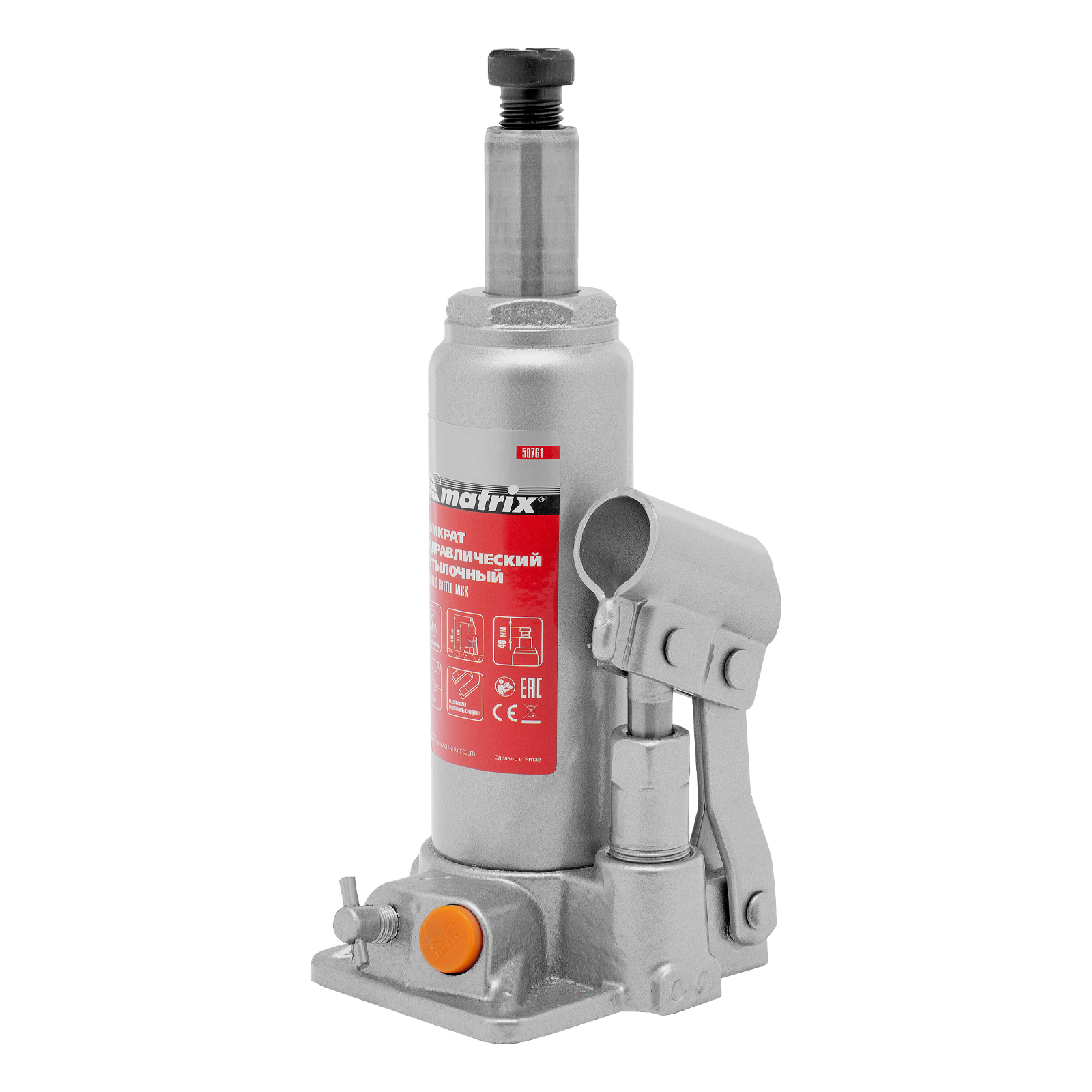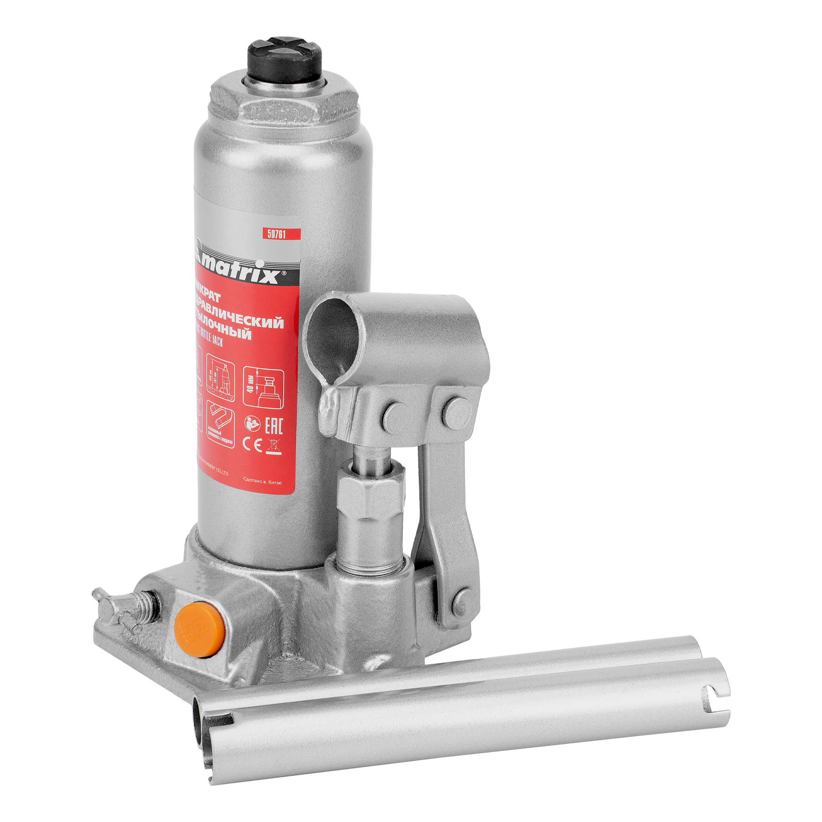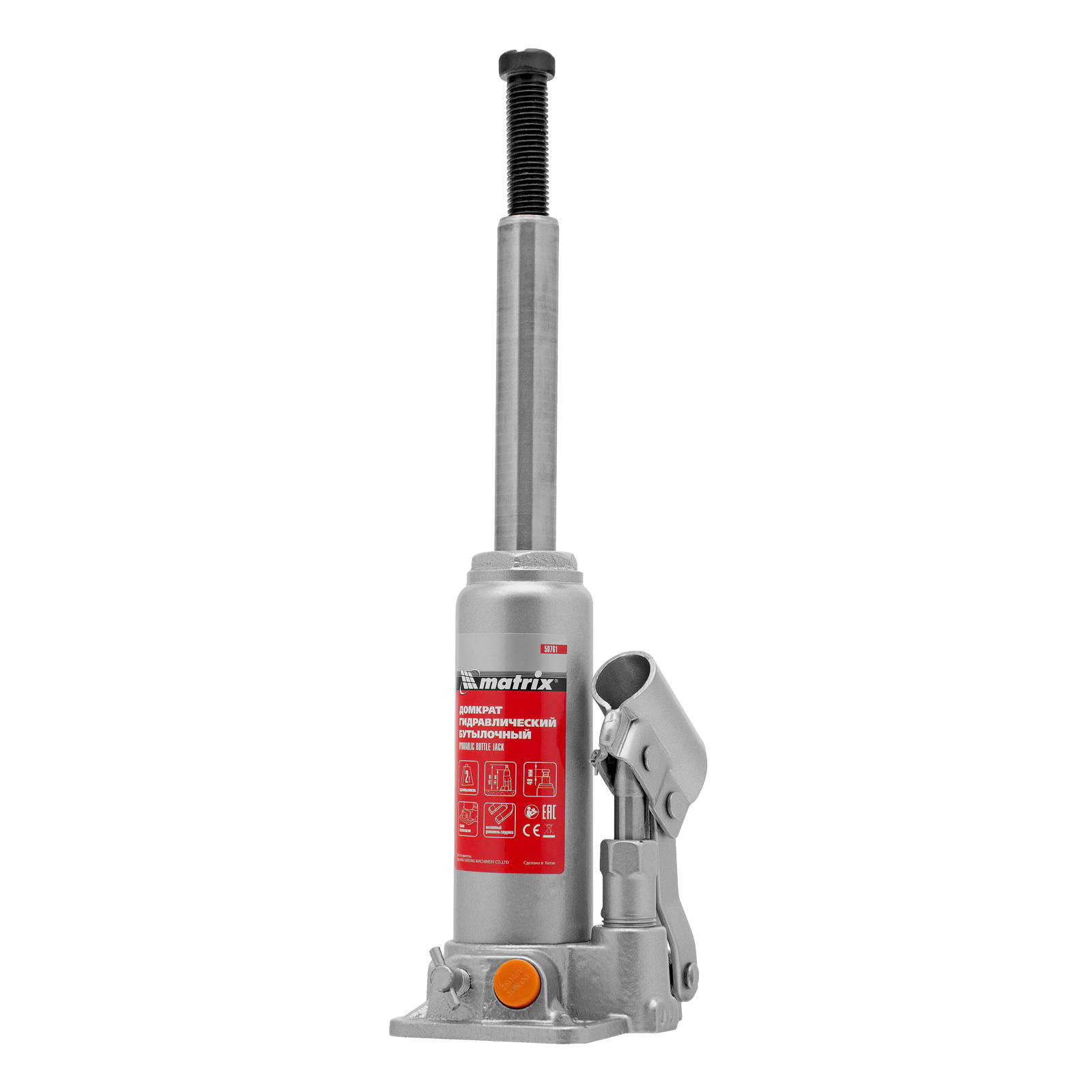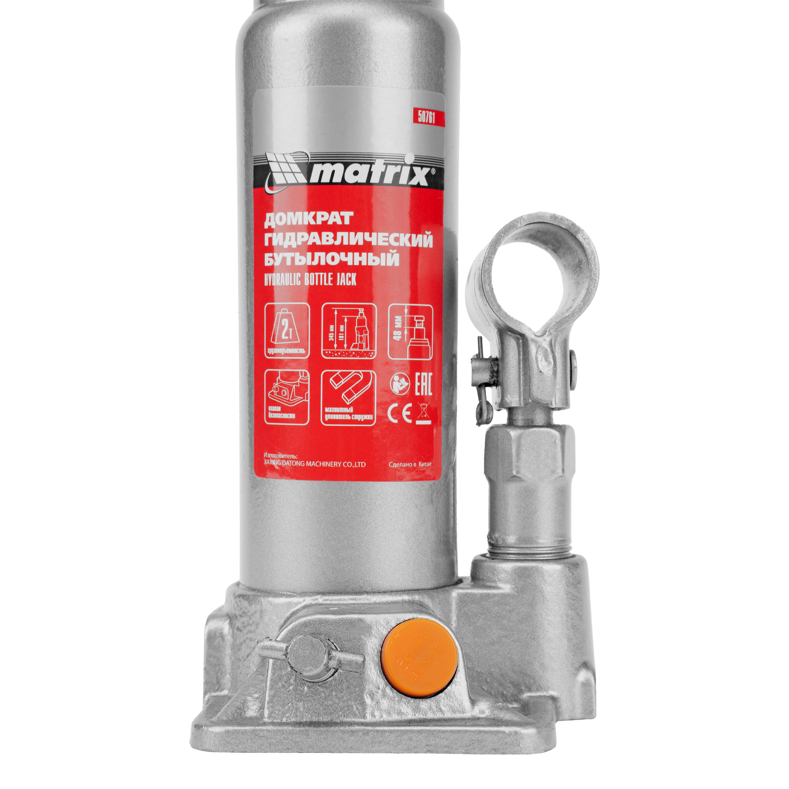 Домкрат гидравлический бутылочный, 2 т, h подъема 181-345 мм Matrix в Челябинске