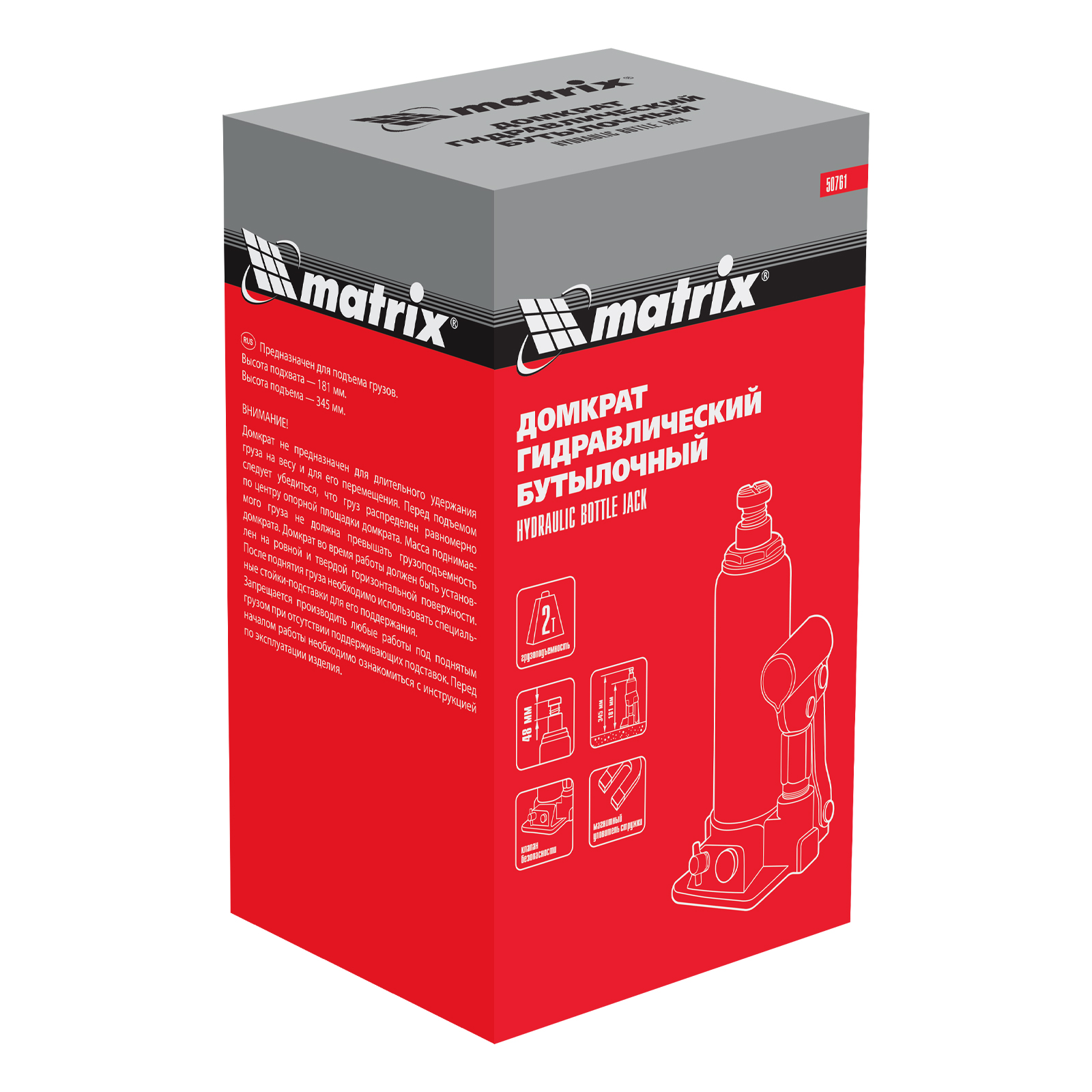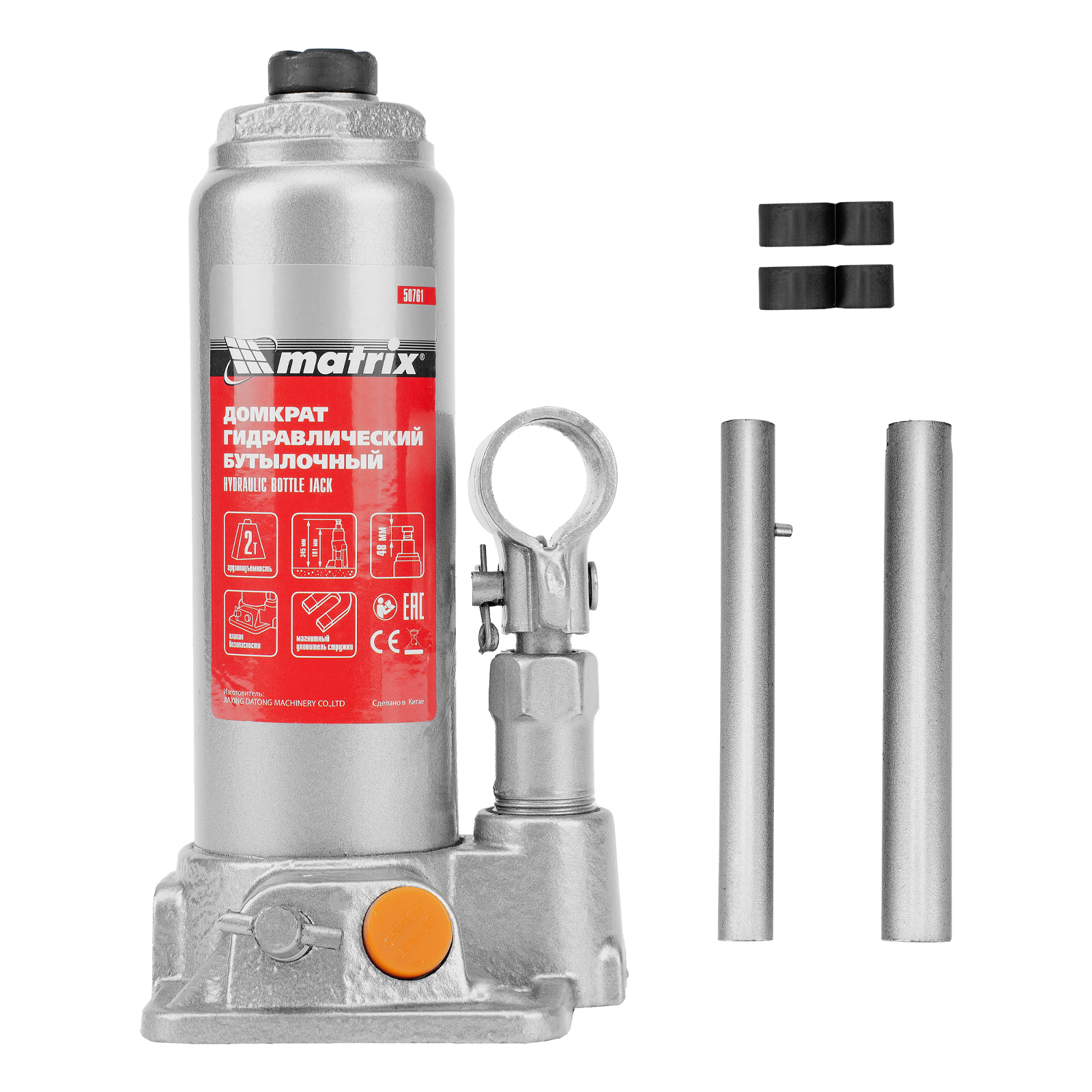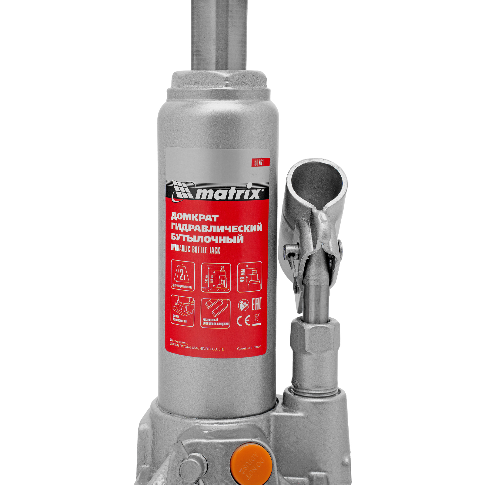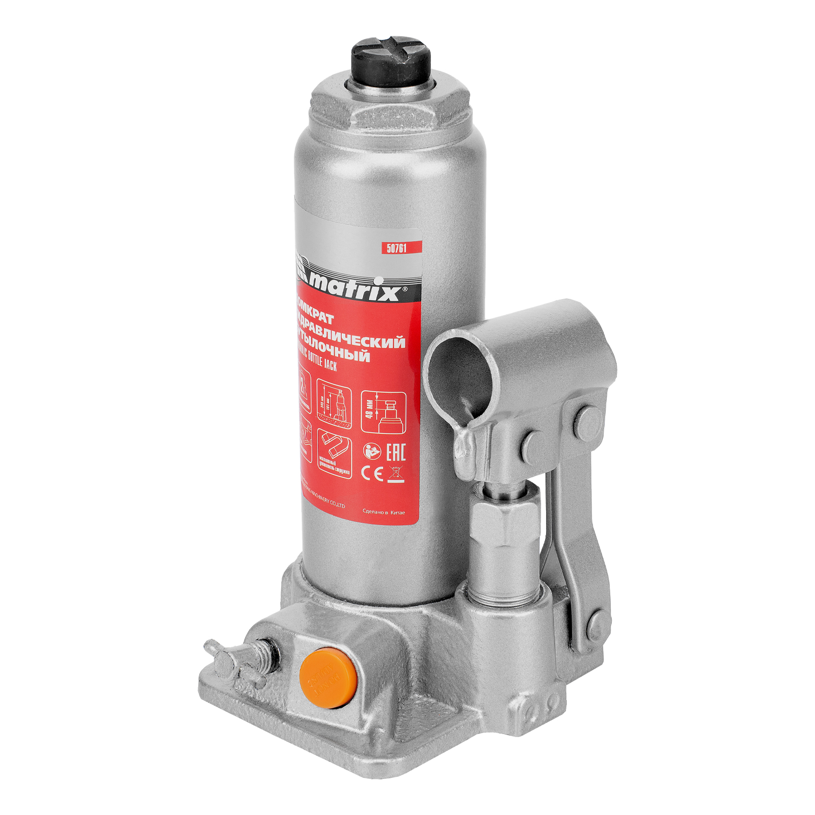 Домкрат гидравлический бутылочный, 2 т, h подъема 181-345 мм Matrix в Челябинске