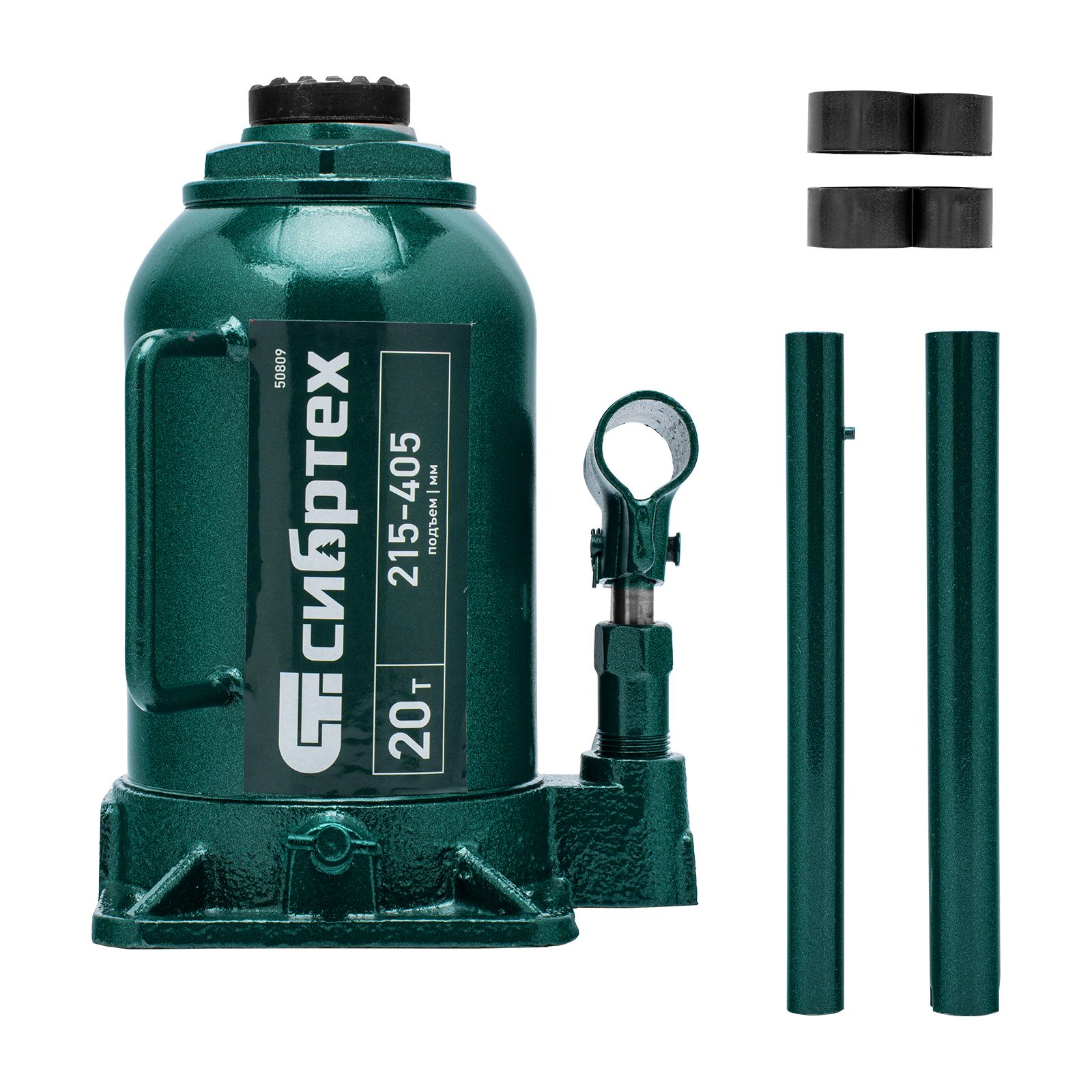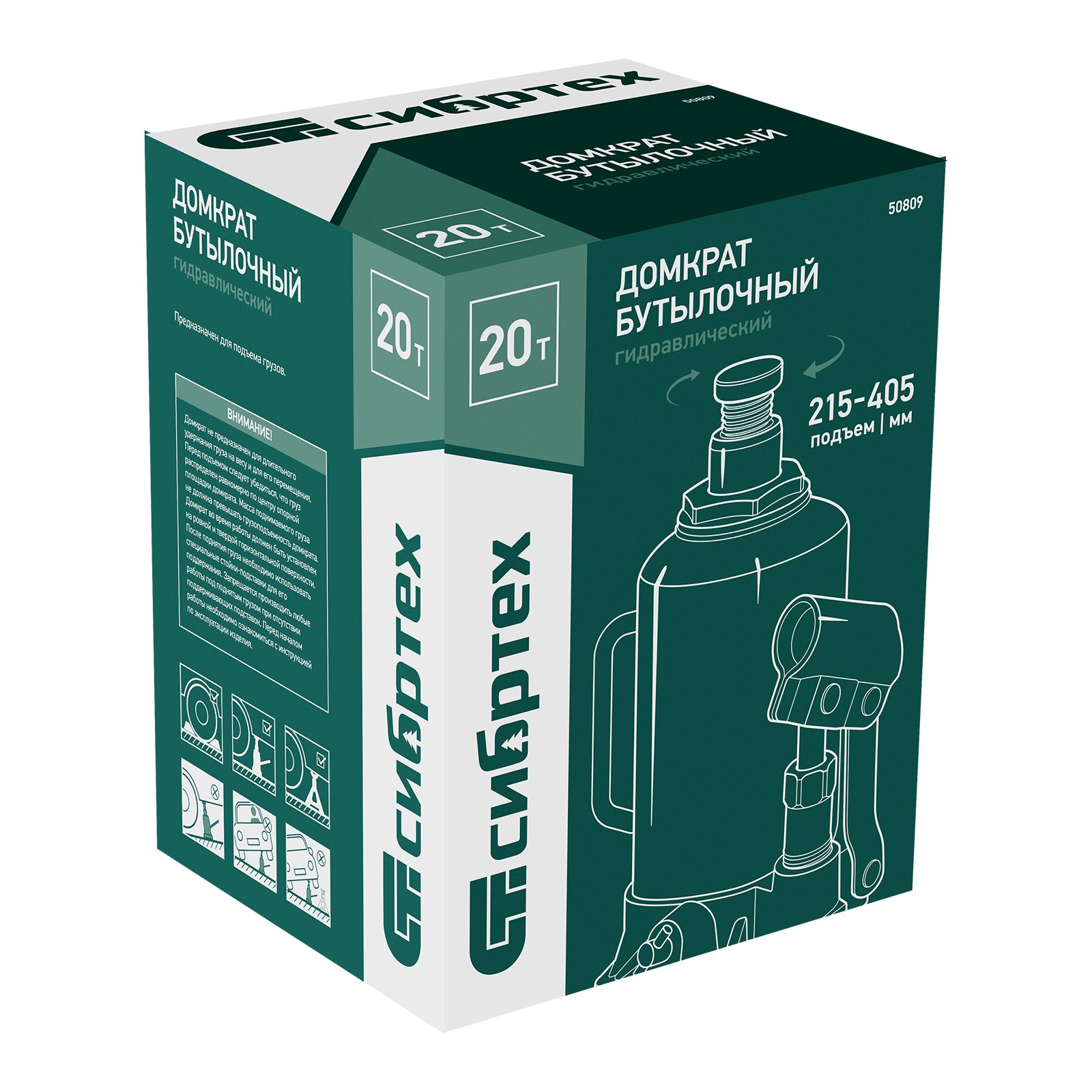 Домкрат гидравлический бутылочный Сибртех 50809 предназначен для подъема грузов массой до 20 т на высоту от 215 до 405 мм. Не требует больших усилий от пользователя и значительно облегчает рабочий процесс. Домкрат будет полезен при проведении техобслуживания машины в автосервисе или гараже.