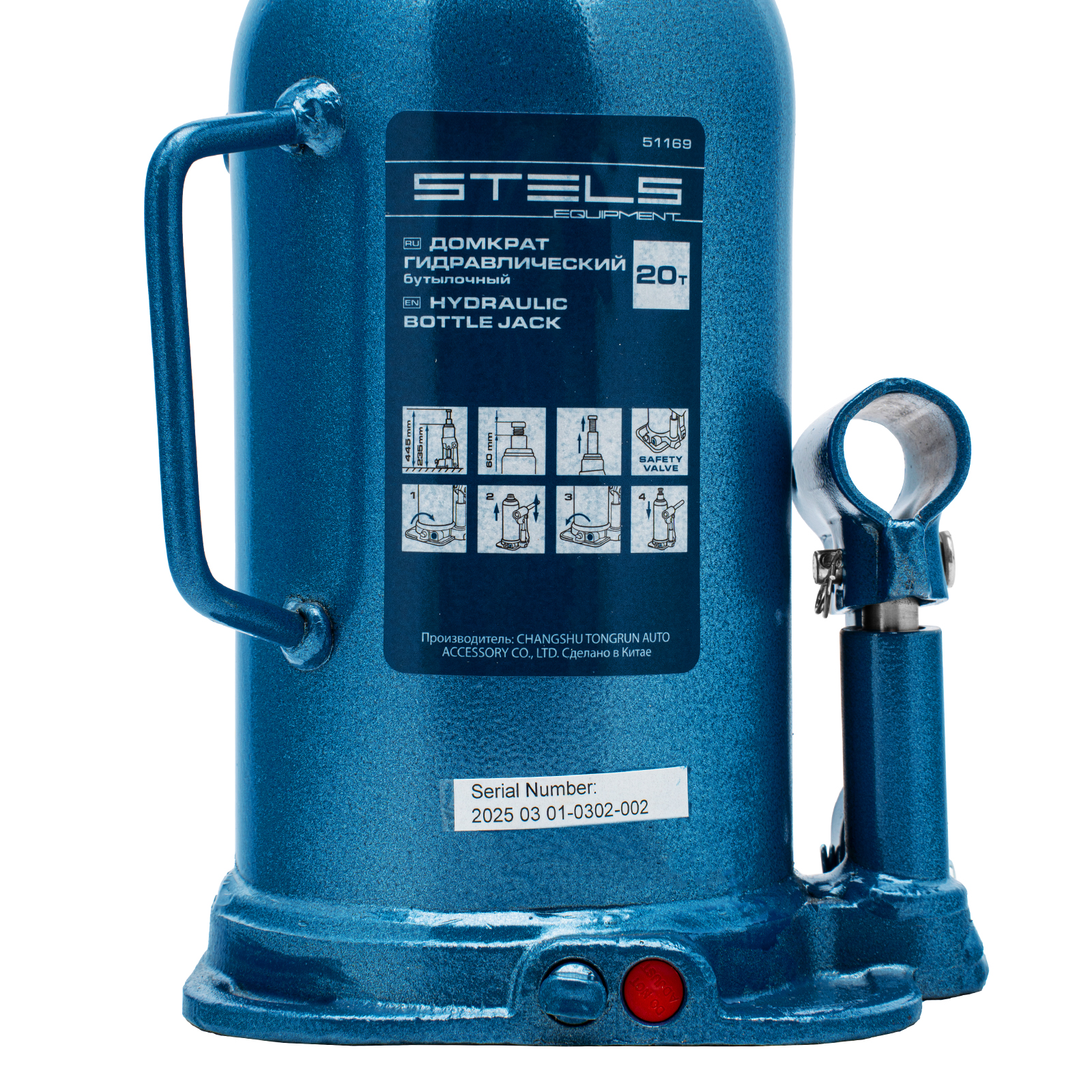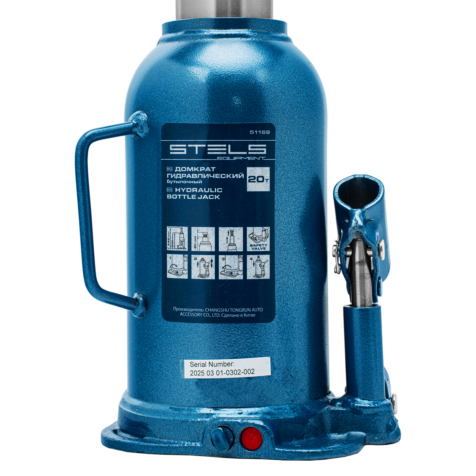 - Безопасная эксплуатация — благодаря предохранительному клапану домкрат не поднимает грузы тяжелее 20 т.