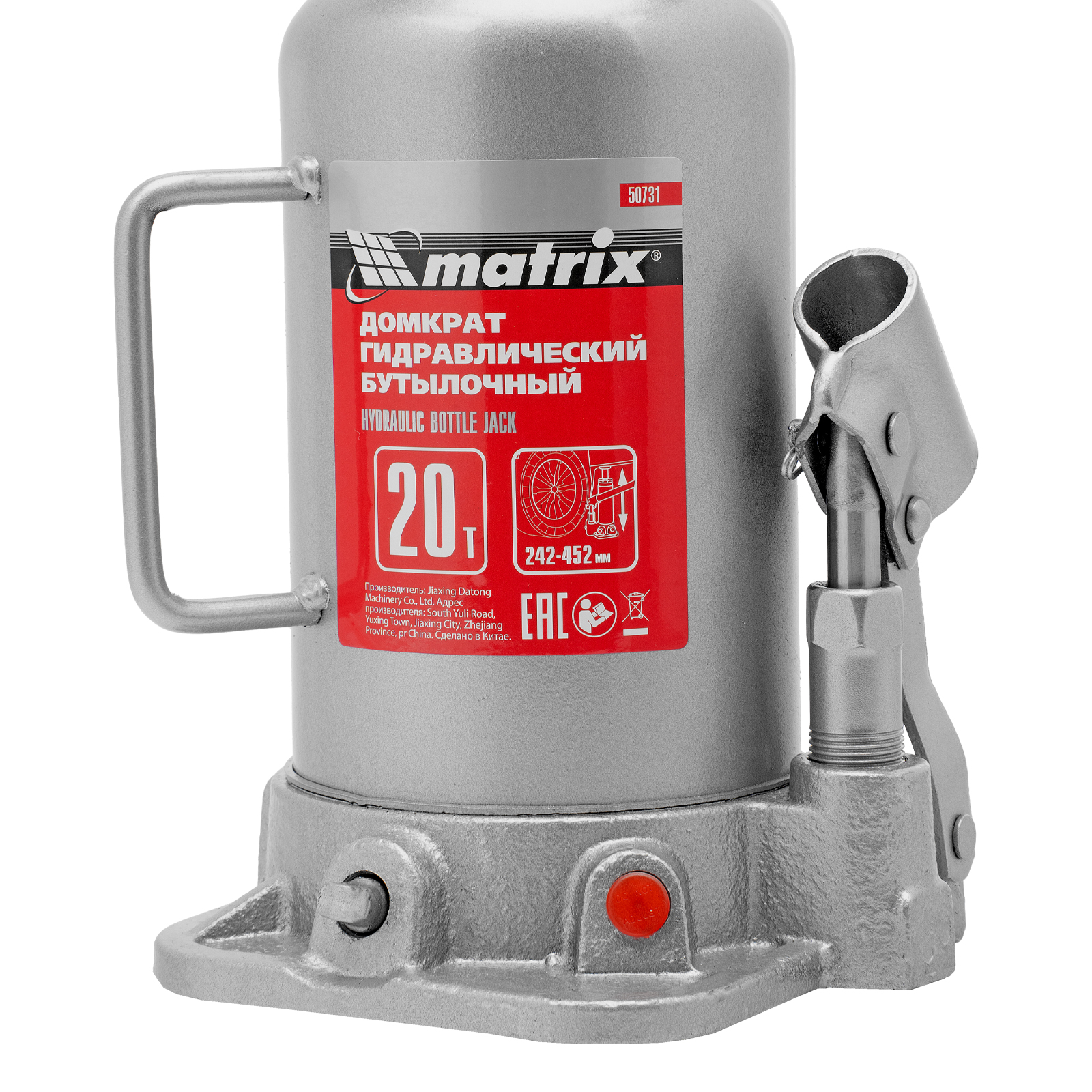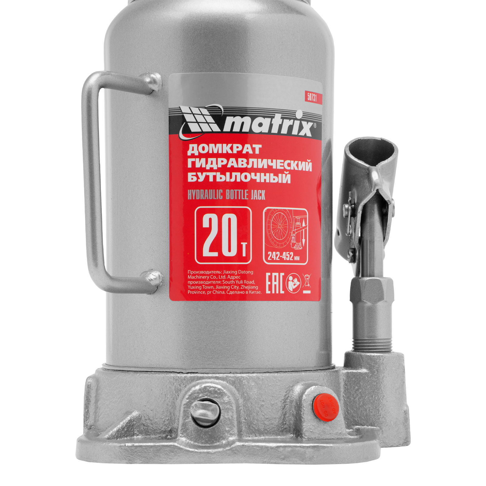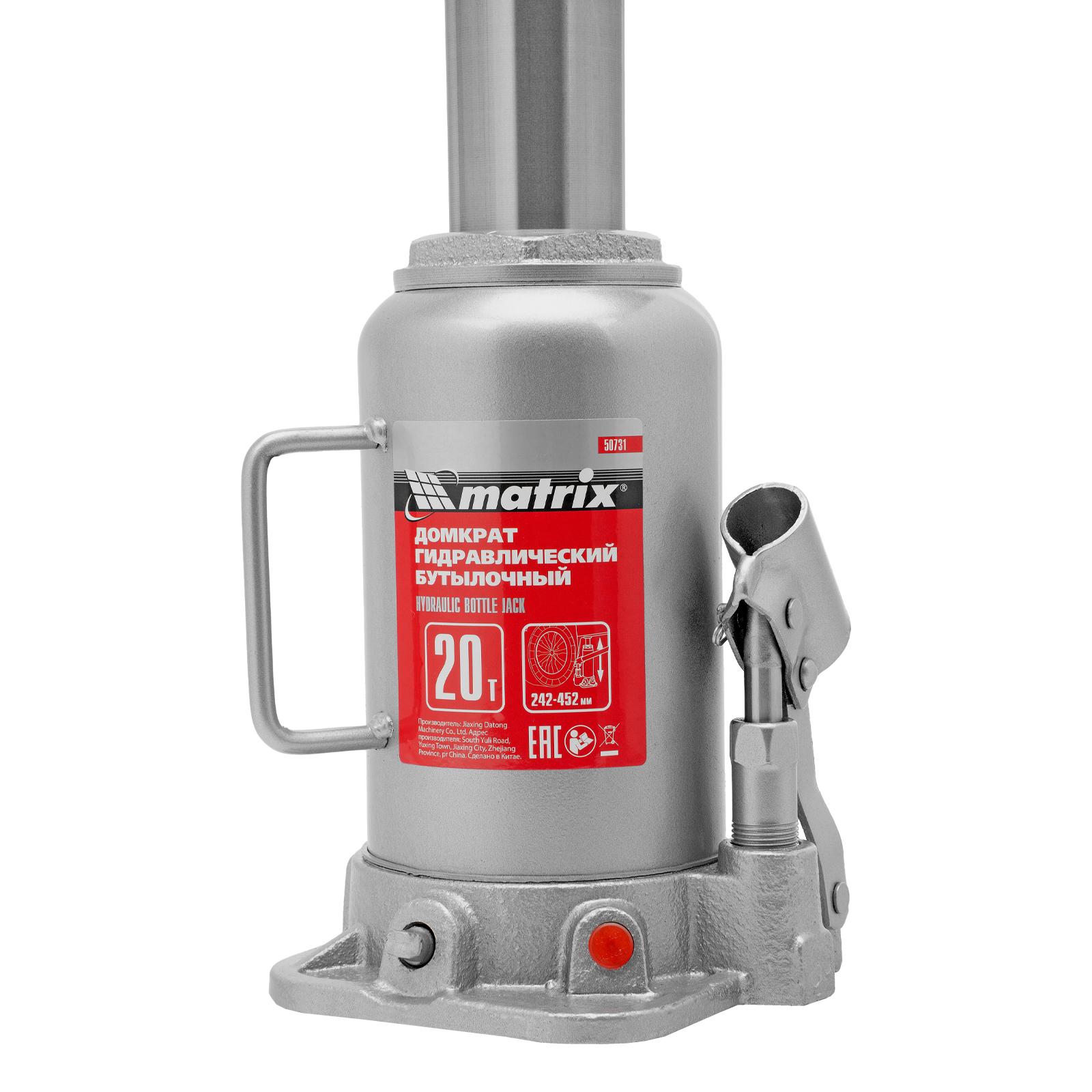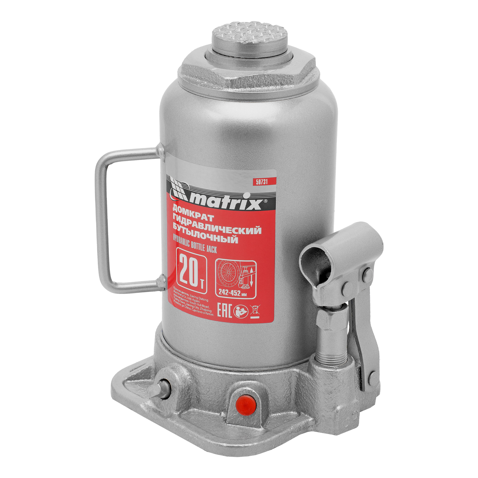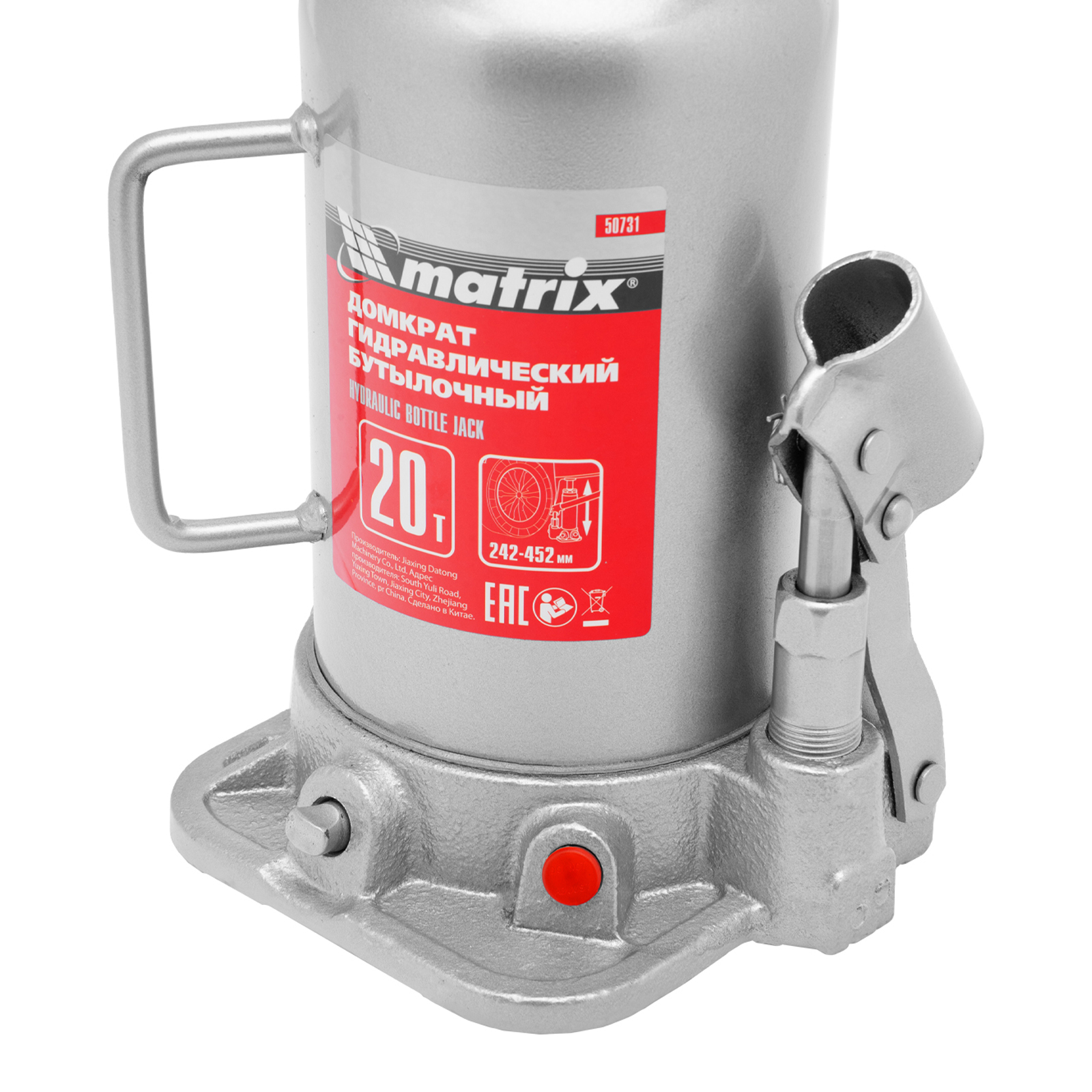 Домкрат гидравлический бутылочный, 20 т, высота подъема 242-452 мм Matrix в Челябинске