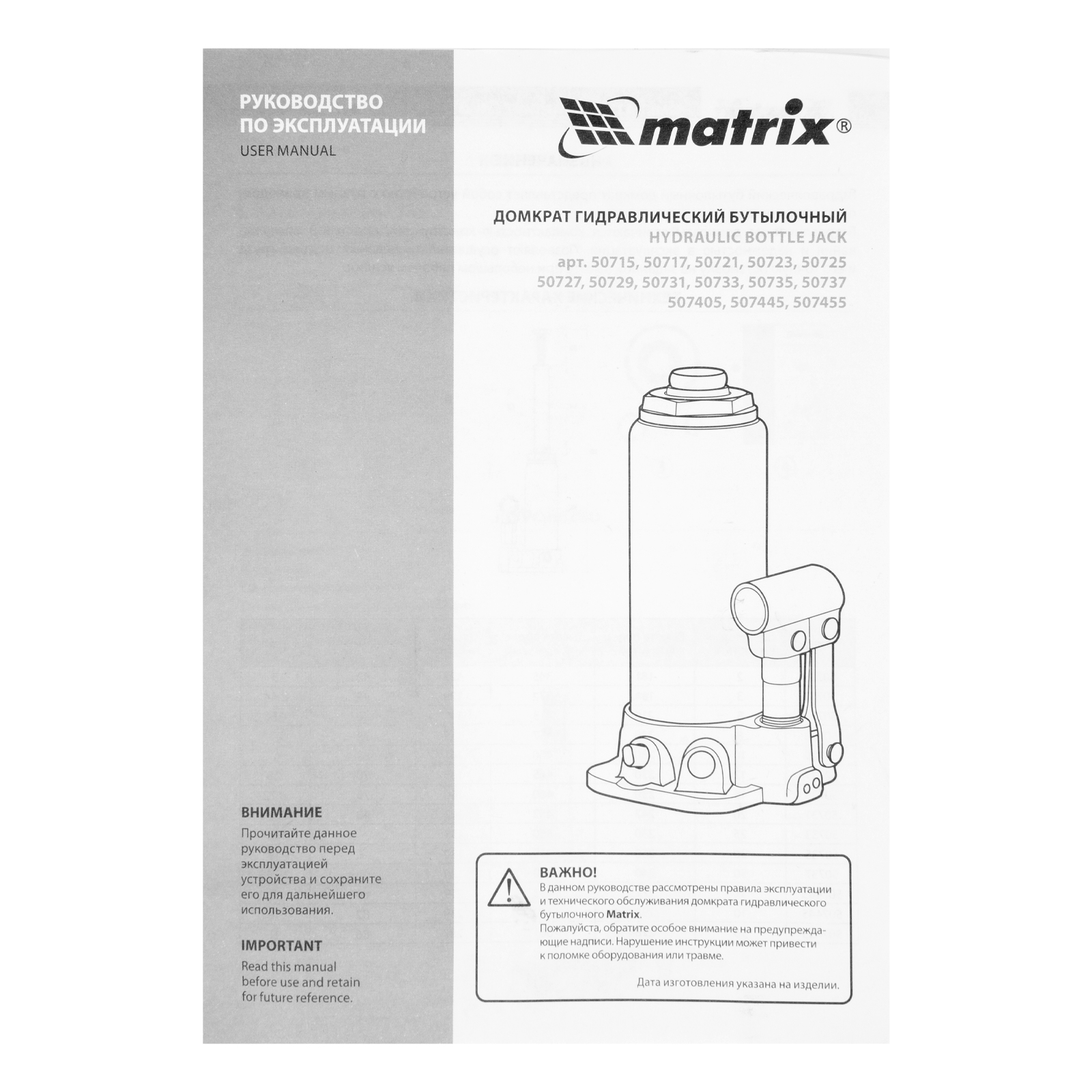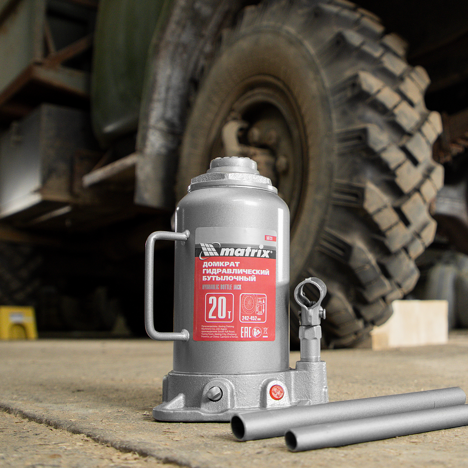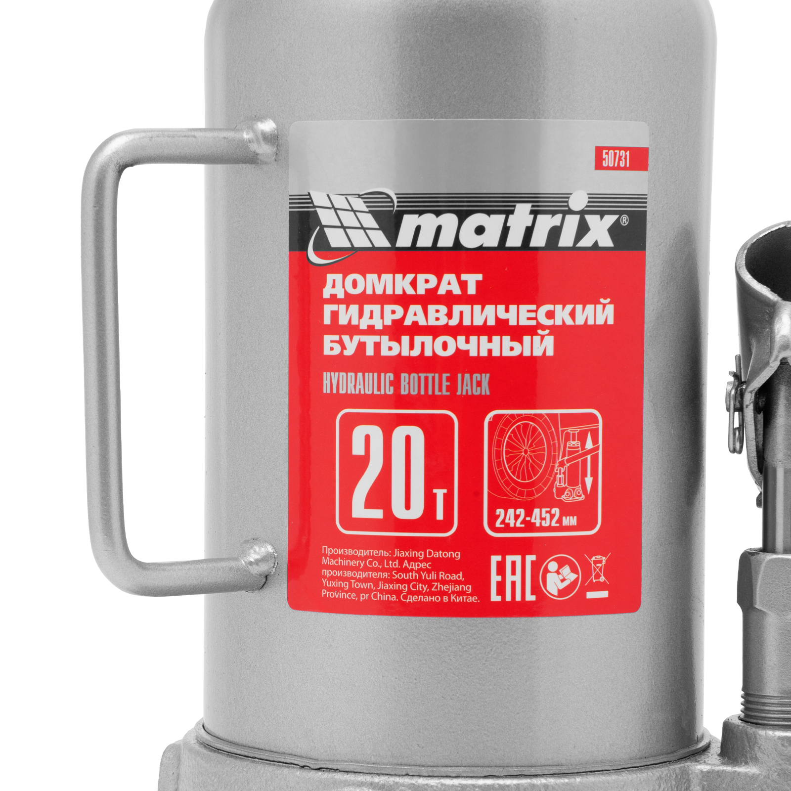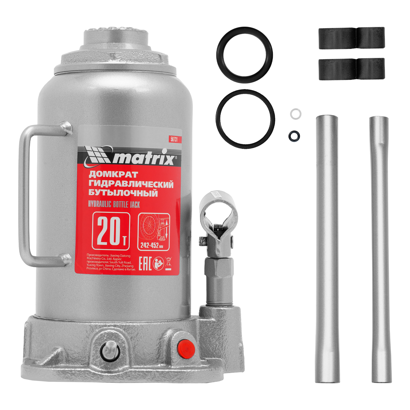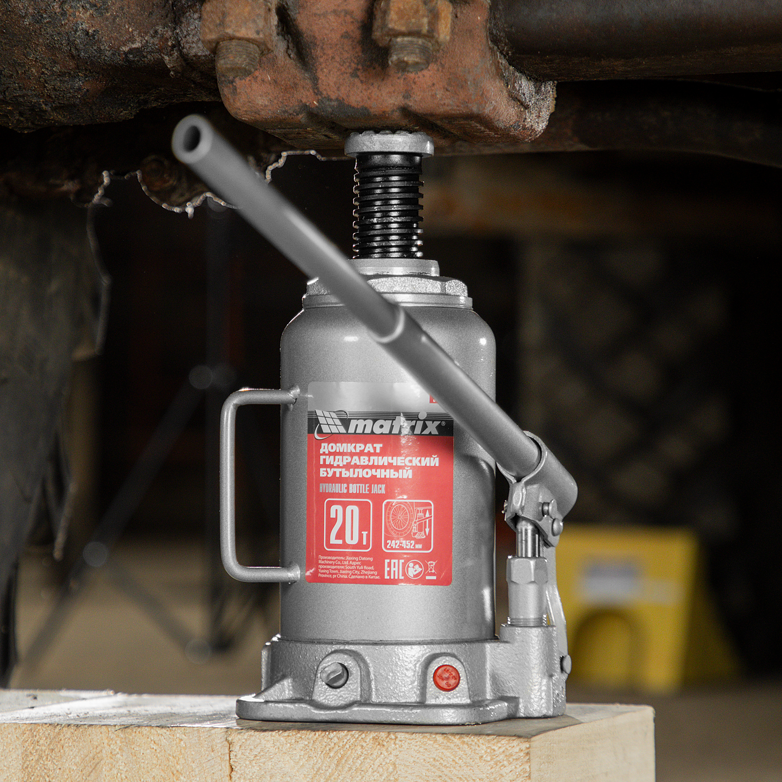 Домкрат гидравлический бутылочный, 20 т, высота подъема 242-452 мм Matrix в Челябинске