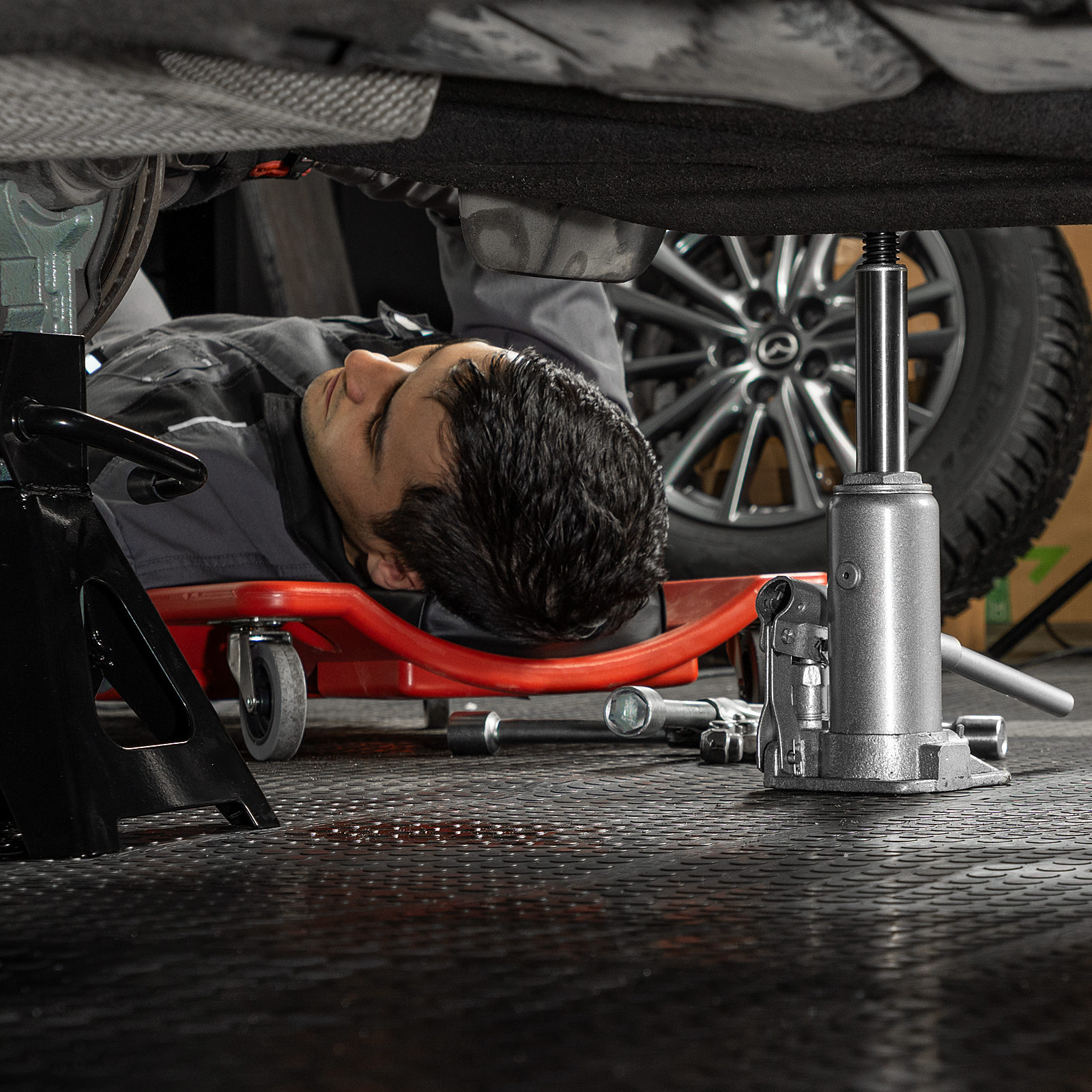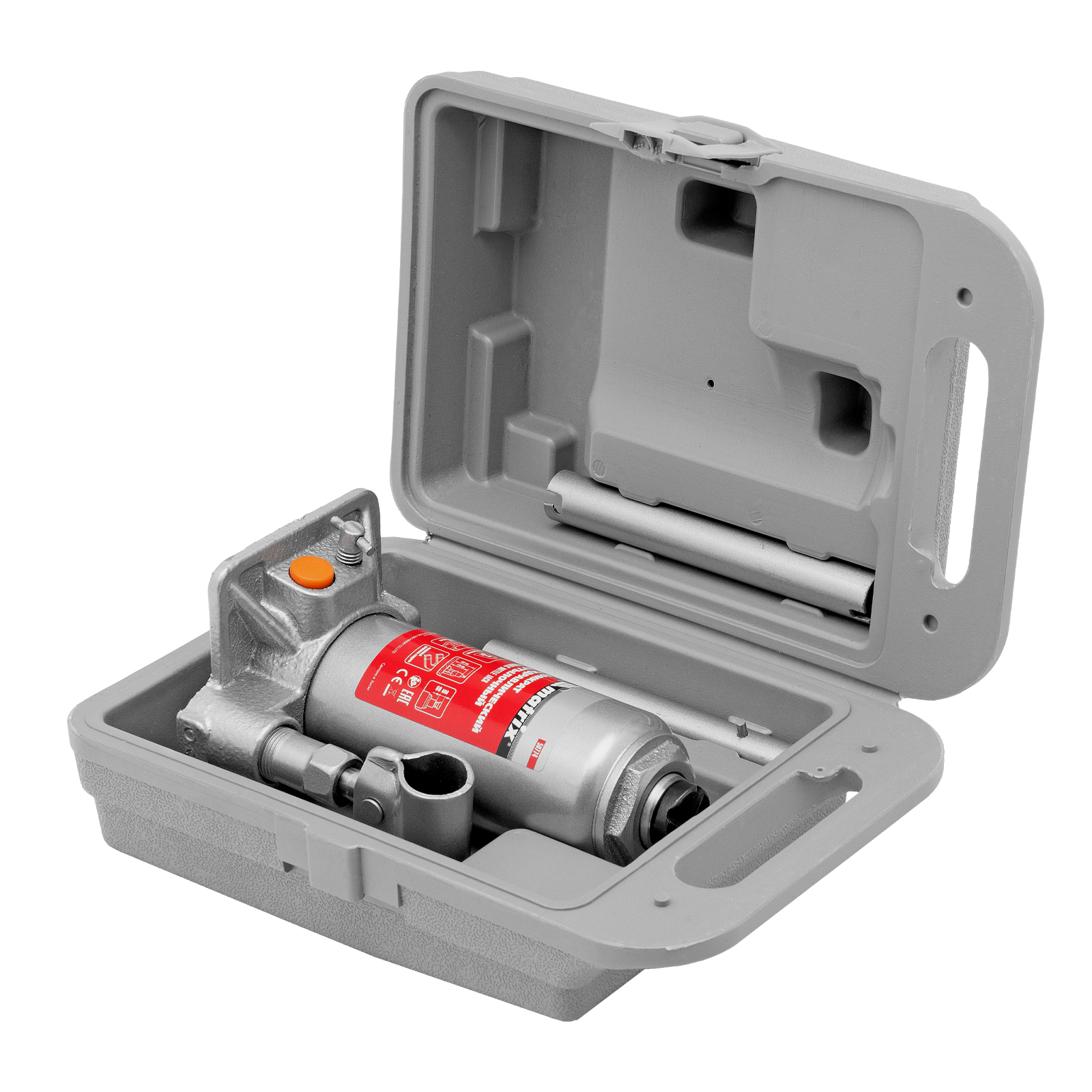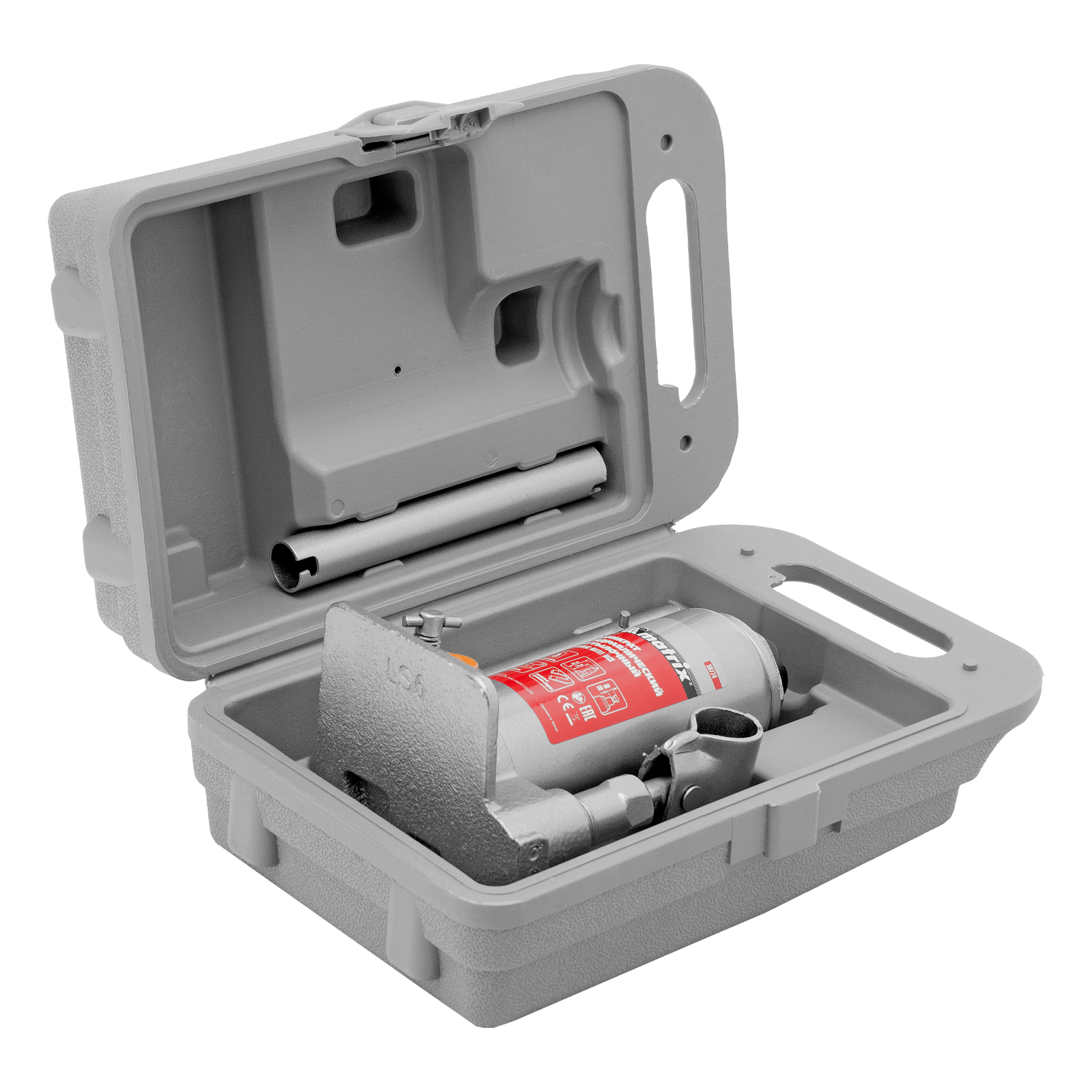 - Удобная транспортировка — домкрат комплектуется прочным пластиковым кейсом.