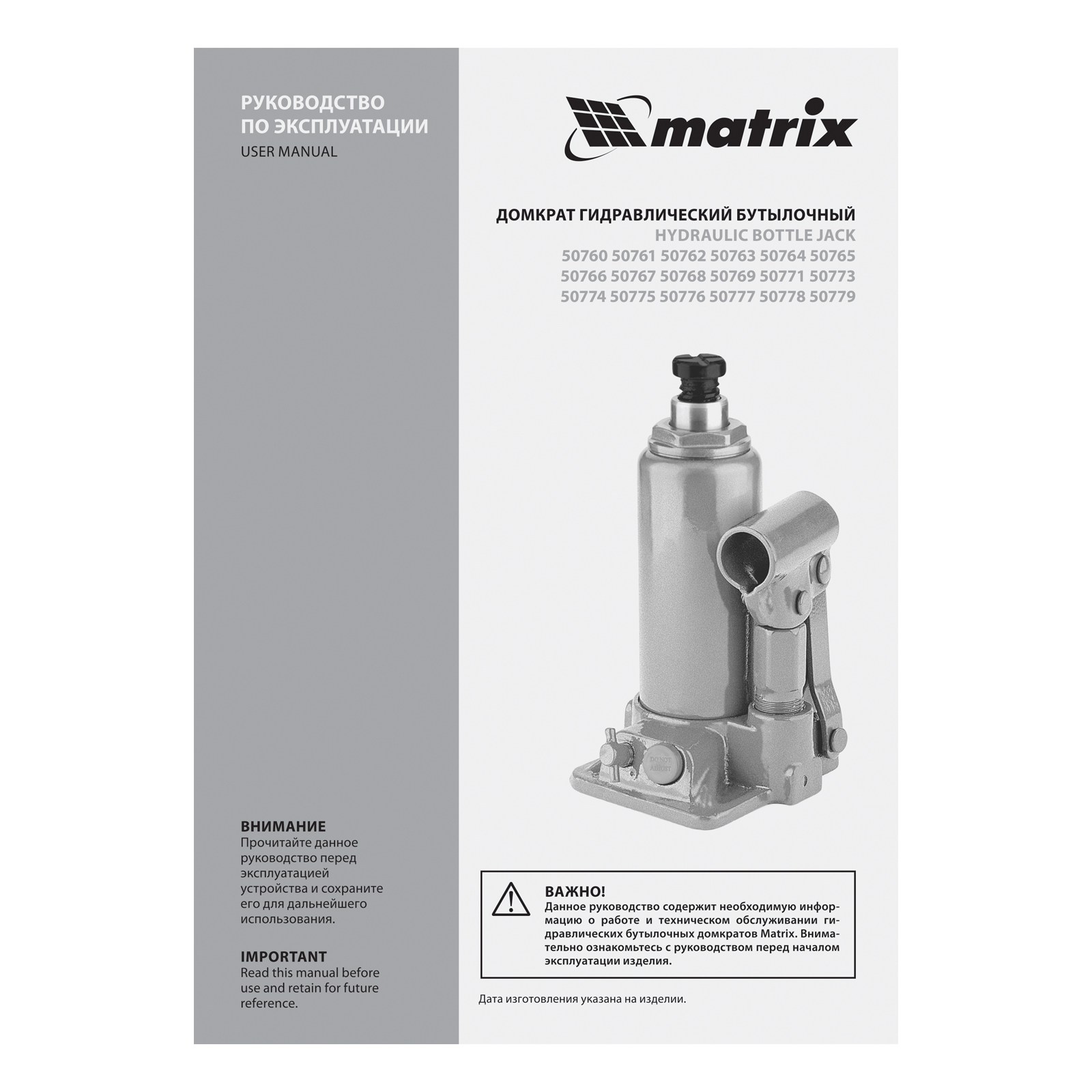 Гидравлический бутылочный домкрат Matrix 50774 позволяет быстро поднимать грузы массой до 3 т на высоту 178-343 мм. Встроенный магнитный уловитель собирает металлическую стружку, предотвращая преждевременный износ резиновых уплотнителей. Домкрат пригодится для полупрофессионального применения.