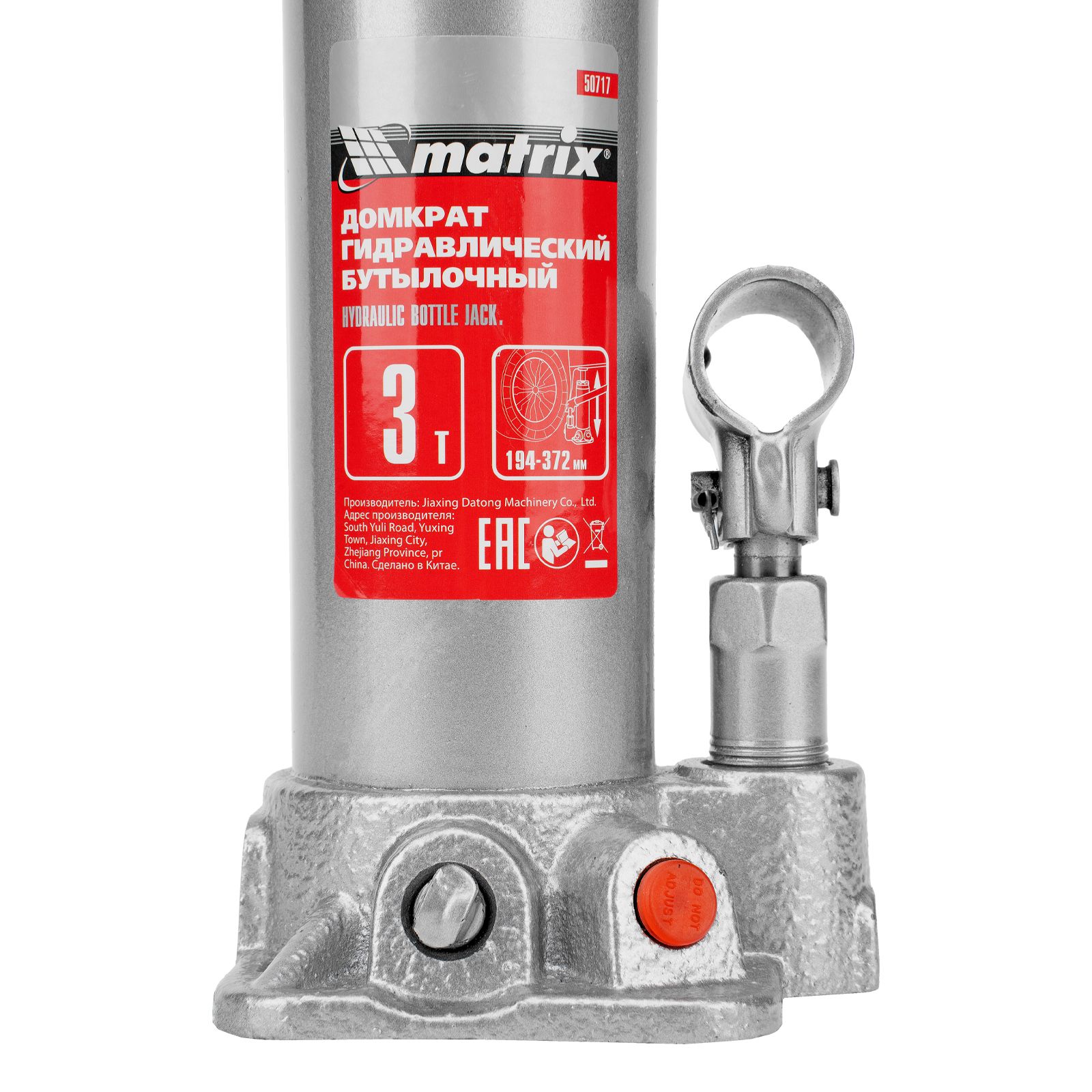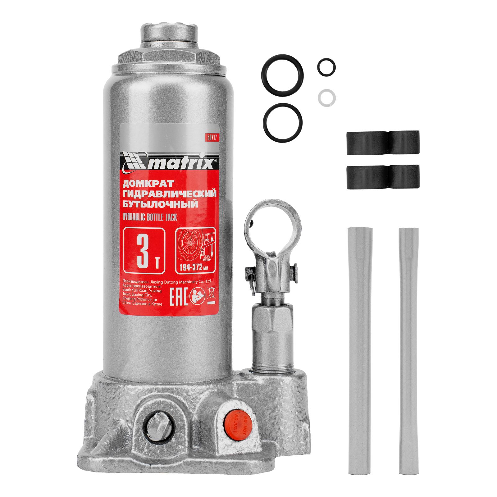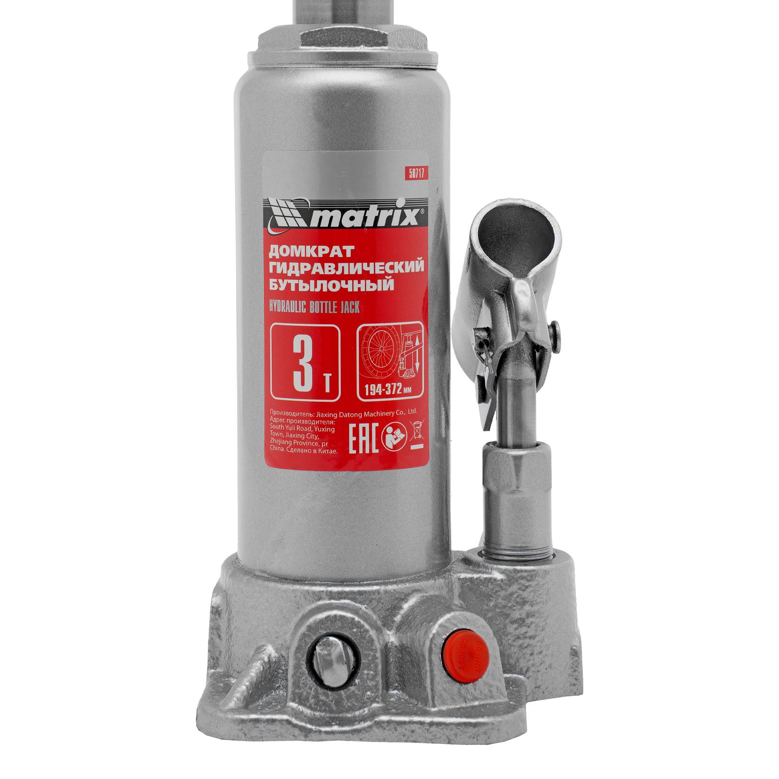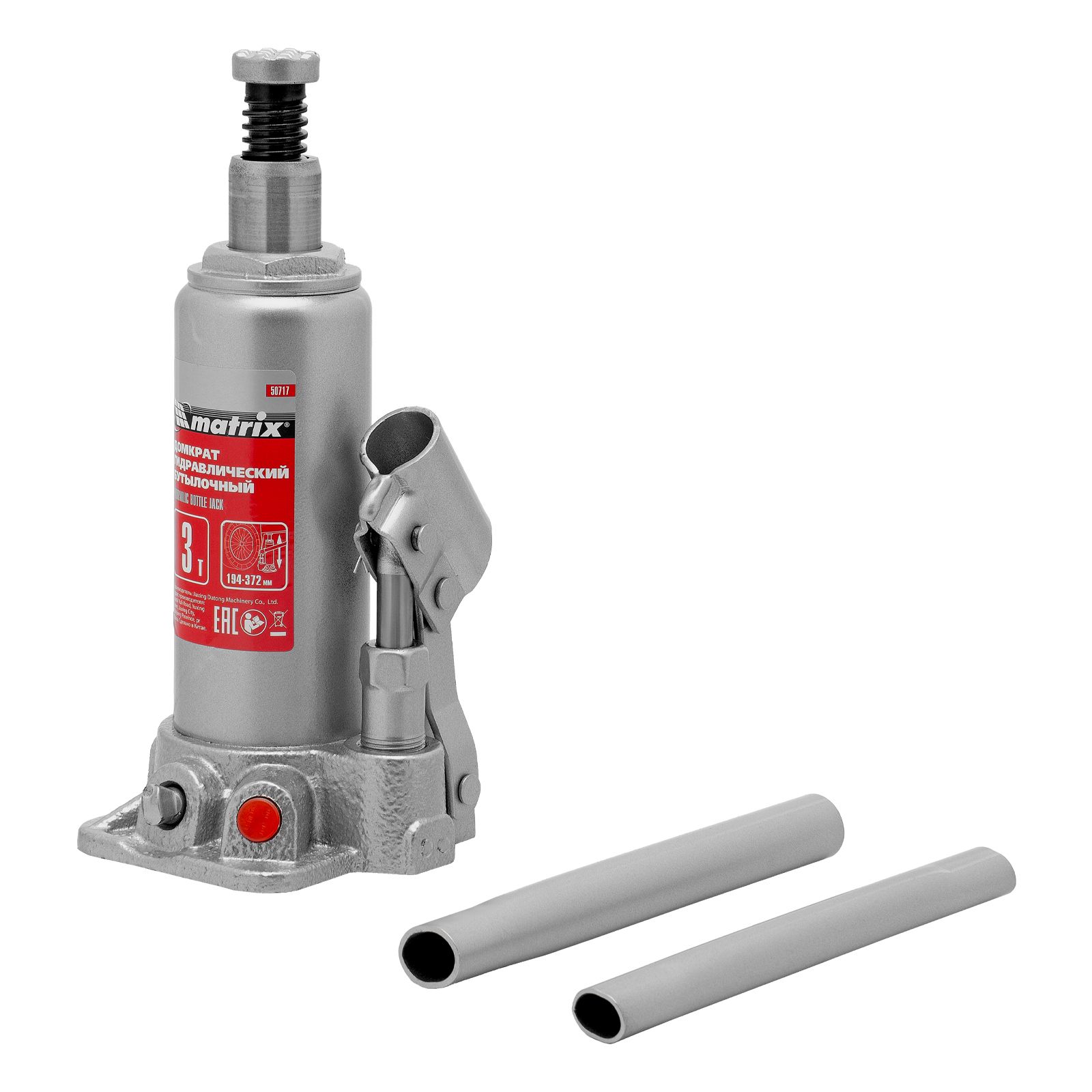 Домкрат гидравлический бутылочный, 3 т, высота подъема 194-372 мм Matrix в Челябинске