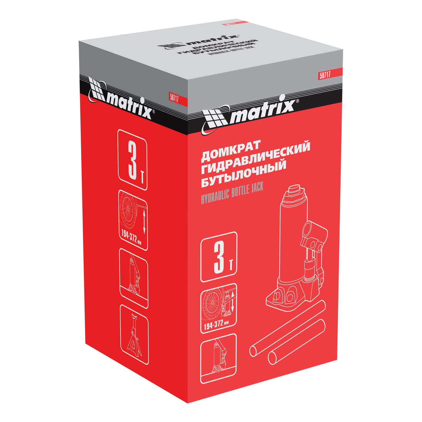 Домкрат гидравлический бутылочный Matrix 50717 используется для поднятия грузов массой до 3 т на высоту 194-372 мм. Подходит для автомобилей с высоким клиренсом. Домкрат будет полезен автолюбителям в гараже и дороге, а также сотрудникам СТО.